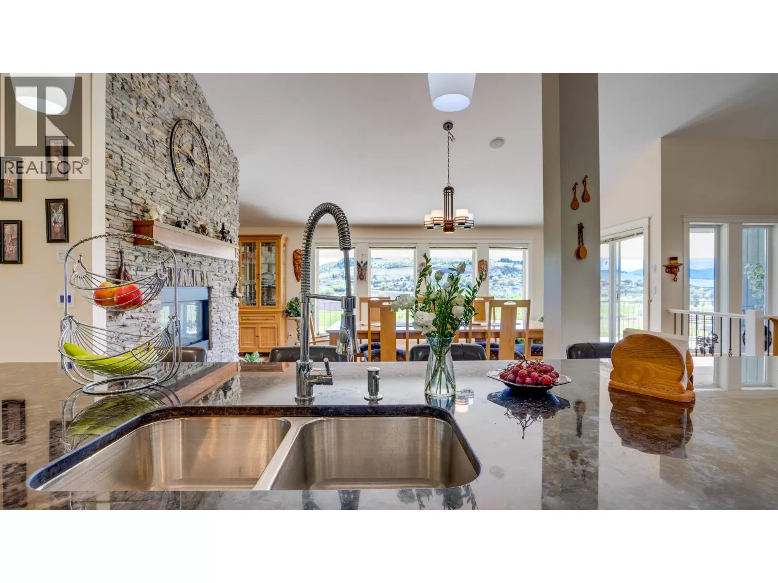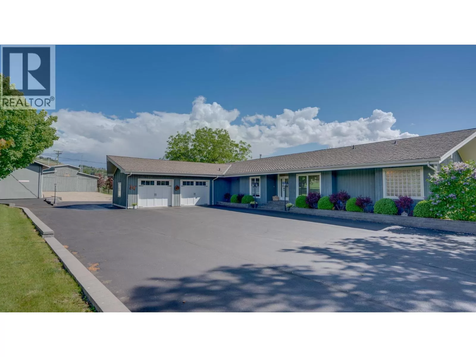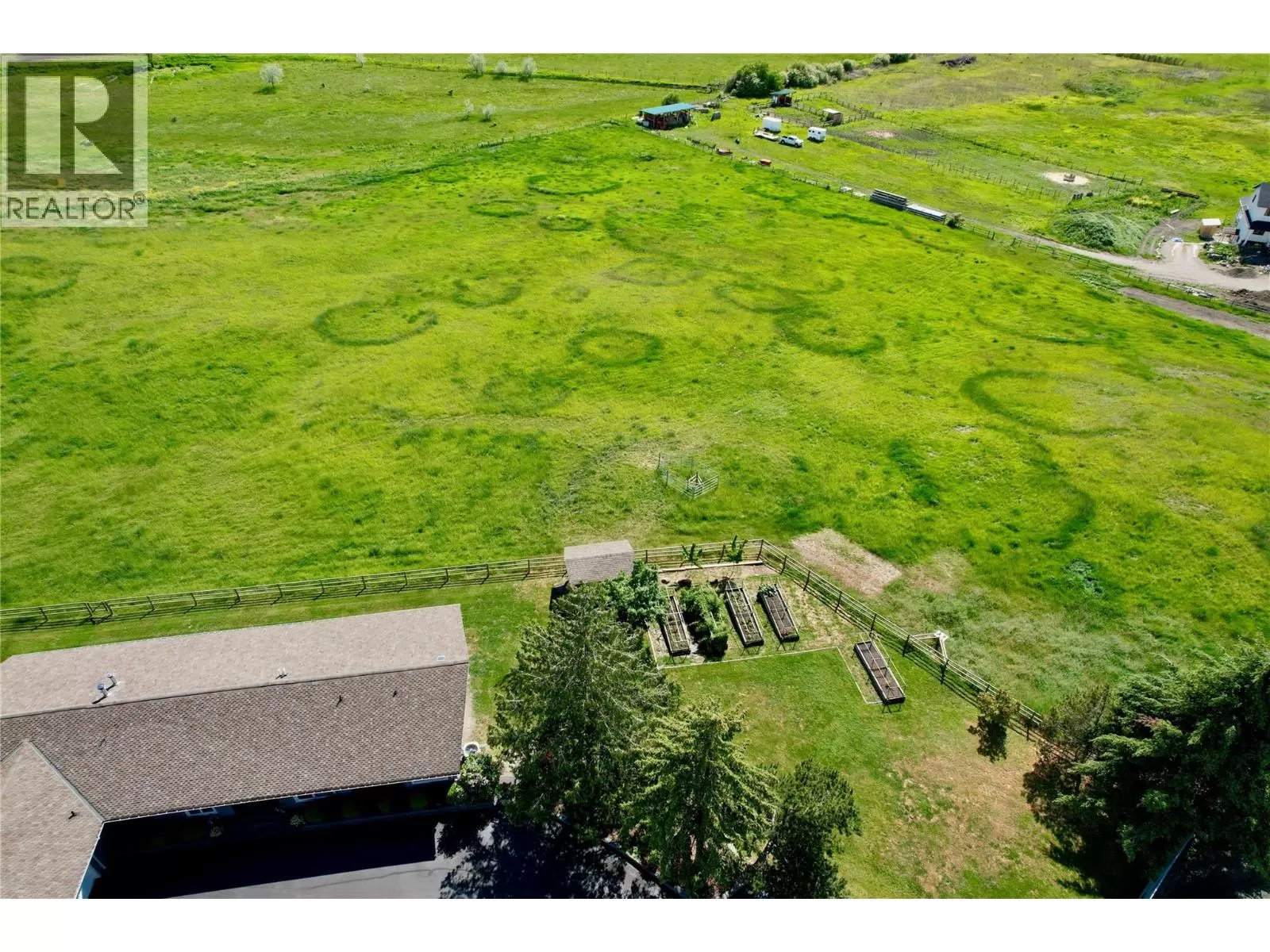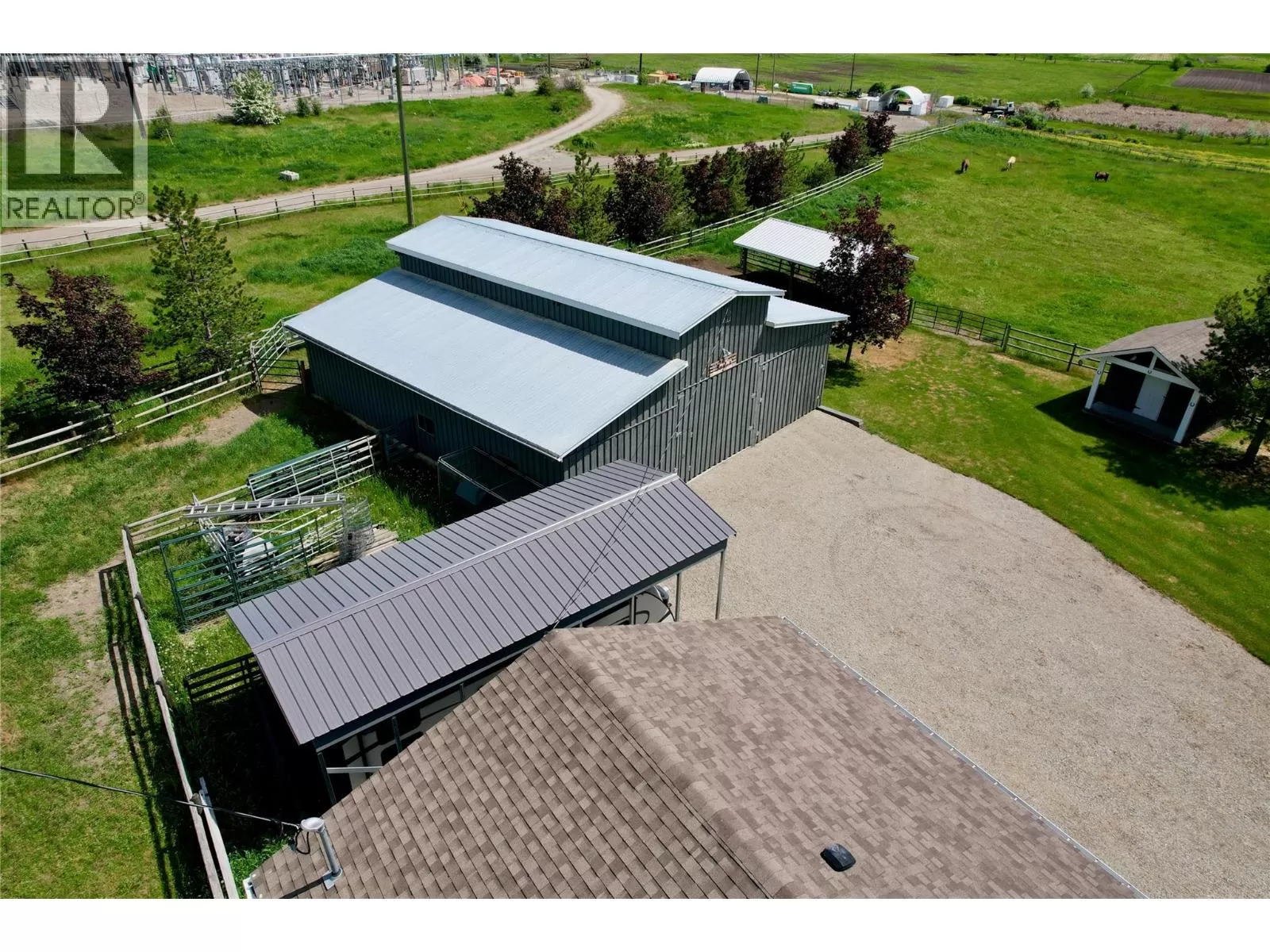 Exceptional 10Acre Estate Minutes from Downtown Vernon, Discover this spectacular property featuring a beautifully re-designed 5 bedroom, 4.5 bathroom home set on a private 10 acres of irrigated land with breathtaking panoramic views. Perfectly set up for horses, the entire property is fully rail-fenced and cross-fenced. Inside, the home boasts travertine tile, hardwood, and carpet flooring, an open concept layout with vaulted ceilings, and a dramatic wall of windows leading to a covered deck overlooking the valley. The stylish kitchen offers high-end stainless appliances, abundant cabinetry, an island, and a pantry. A gas fireplace anchors the living room and provides separation from the formal dining area. Upstairs and down, thoughtful upgrades include newer floors, paint, and lighting. Each level features its own laundry. The lower level is designed for flexibility with a spacious open layout, plumbing for a second kitchen, large living room, two full bathrooms, two bedrooms, cold storage, and separate entry.Outdoors, youâll find walnut, hazelnut, cherry, and apricot trees, raised irrigated garden beds, and extensive infrastructure:28x22 attached garage, 52x25 wired workshop, 42x42 barn with stalls & tack room, Private tennis & pickleball court, Metal RV storage building, 2 tool sheds. Irrigation water for pastures, a paved driveway, and peaceful private road access, the perfect blend of luxury living, equestrian facilities, and country charm all just minutes from Vernon. (id:27476)