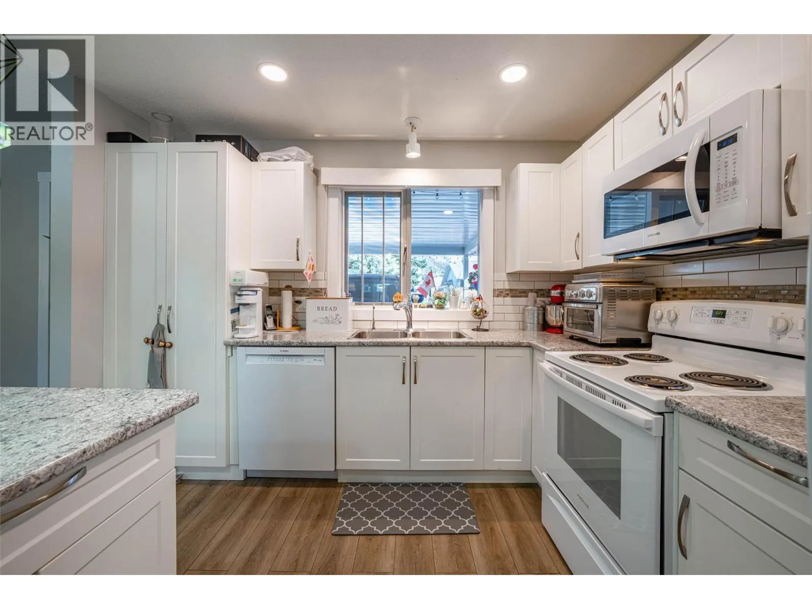 Nicely updated townhome in the highly desirable 55+, Spruce Landing. This 2-bedroom, 2-bathroom home features a bright, open-concept layout with a modern kitchen showcasing stylish cabinetry, center island and new appliances. The spacious living room opens directly to a private, fully fenced backyard and covered patioâperfect for relaxing or entertaining.The primary suite includes a 4-piece ensuite and a walk-in closet, while a second bedroom, full bathroom, and convenient main floor laundry complete the main level. Downstairs offers a large family room for added living space, and lots of room for storage. Recent updates include newer central A/C, washer and dryer, and upgraded Pex plumbing. A covered parking space and neatly landscaped yard complete this charming and move-in ready home. Be sure to check out the virtual tour and don't miss this great opportunity. Call your agent today to set up a private viewing. (id:27476)