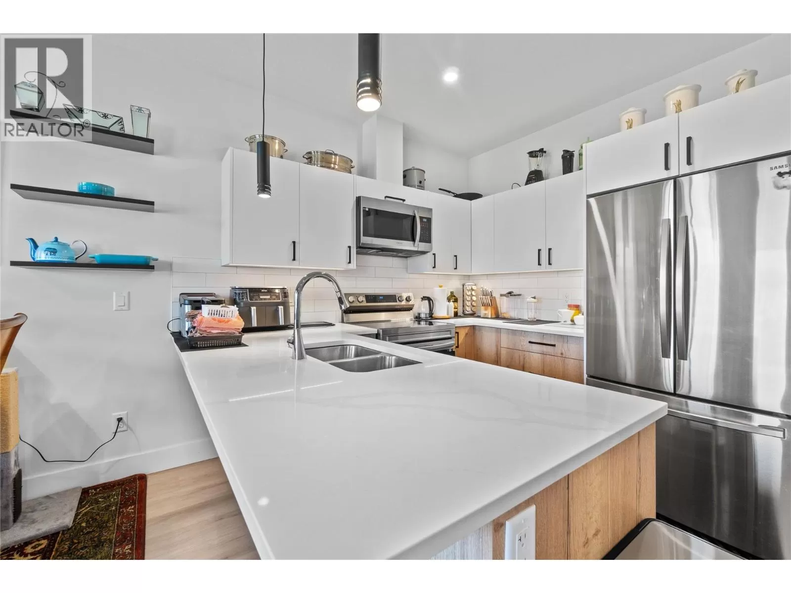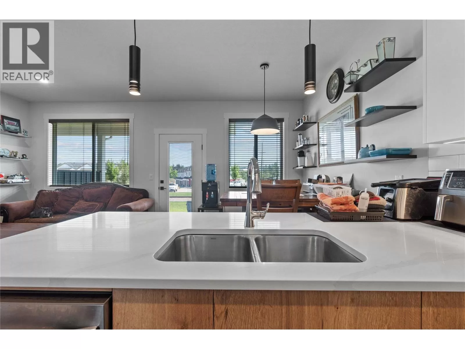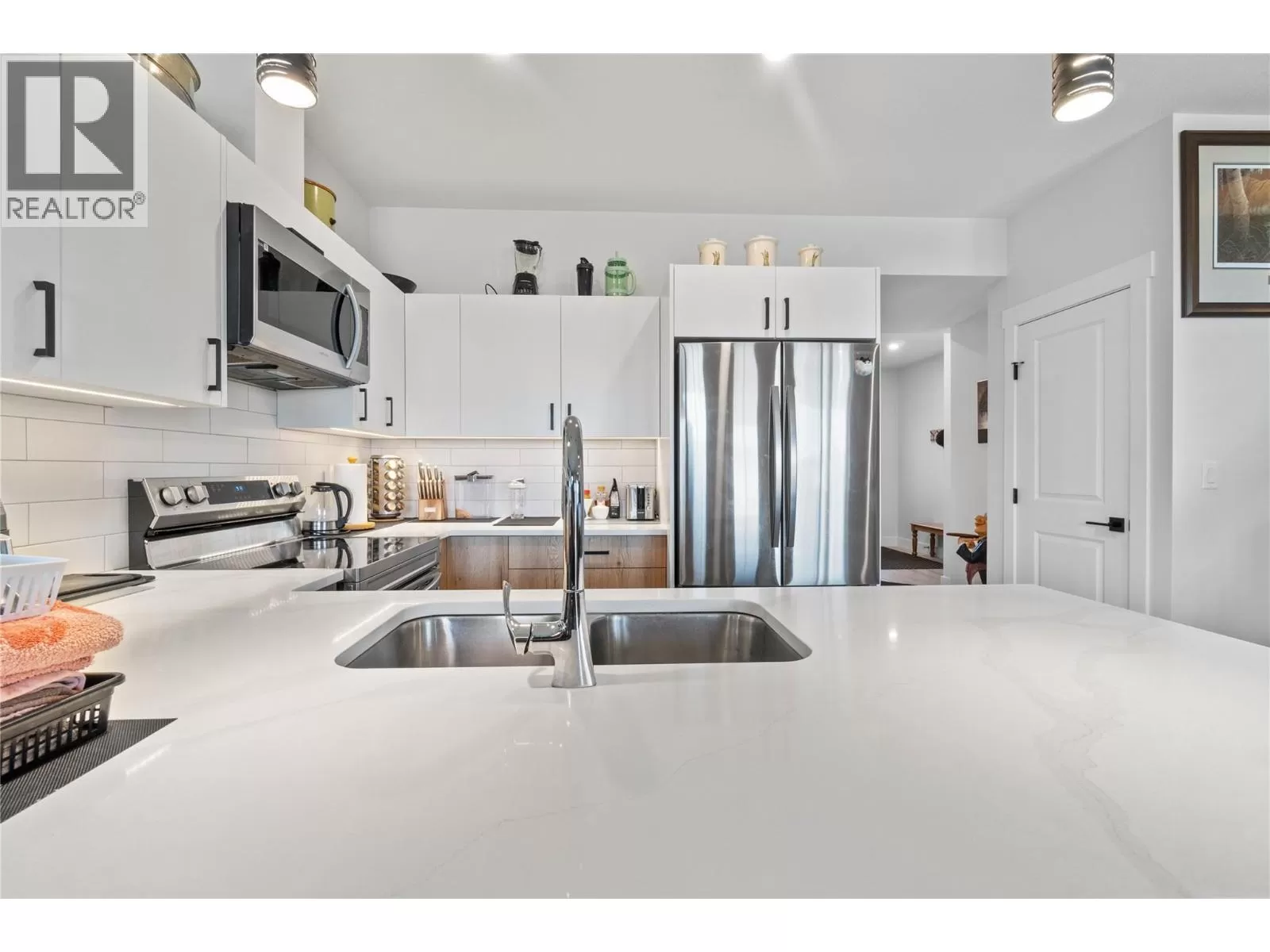 Welcome to #30 Hillview Heightsâan exceptional 2023-built townhouse in Vernonâs desirable East Hill community. Spanning three finished levels, this 3-bedroom, 4-bathroom home offers modern design and flexible living for todayâs lifestyle. The main floor showcases an open-concept layout with a designer kitchen featuring quartz countertops, custom cabinetry, and stainless steel appliancesâperfect for gatherings or quiet evenings at home. Light-filled living and dining areas extend to a private outdoor space ideal for relaxing or entertaining. Upstairs, youâll find a serene primary suite with walk-in closet and a beautifully appointed ensuite, along with a spacious second bedroom and full bathâideal for families or guests. The fully finished basement offers a private third bedroom, fourth bathroom. One could also turn this versatile space into a rec roomâideal for a home gym, media space, or teen retreat. This home also includes a single garage, extra driveway parking, and easy-care landscaping. Located just minutes from schools, parks, and downtown Vernon, #30 Hillview Heights delivers the East Hill lifestyleâstylish, community-centered, and convenient. If you're seeking a home that balances comfort and sophistication, this one checks every box. (id:27476)