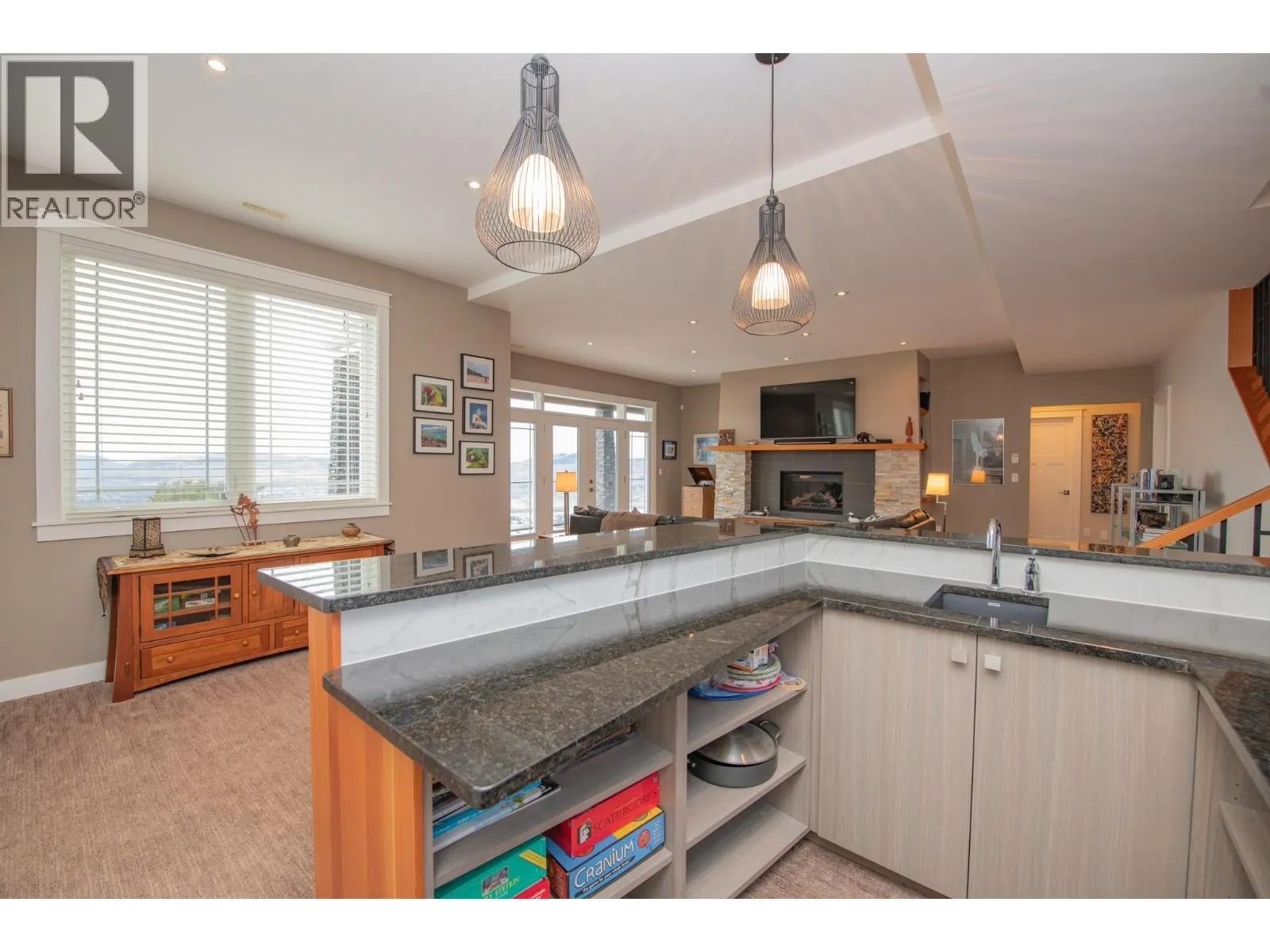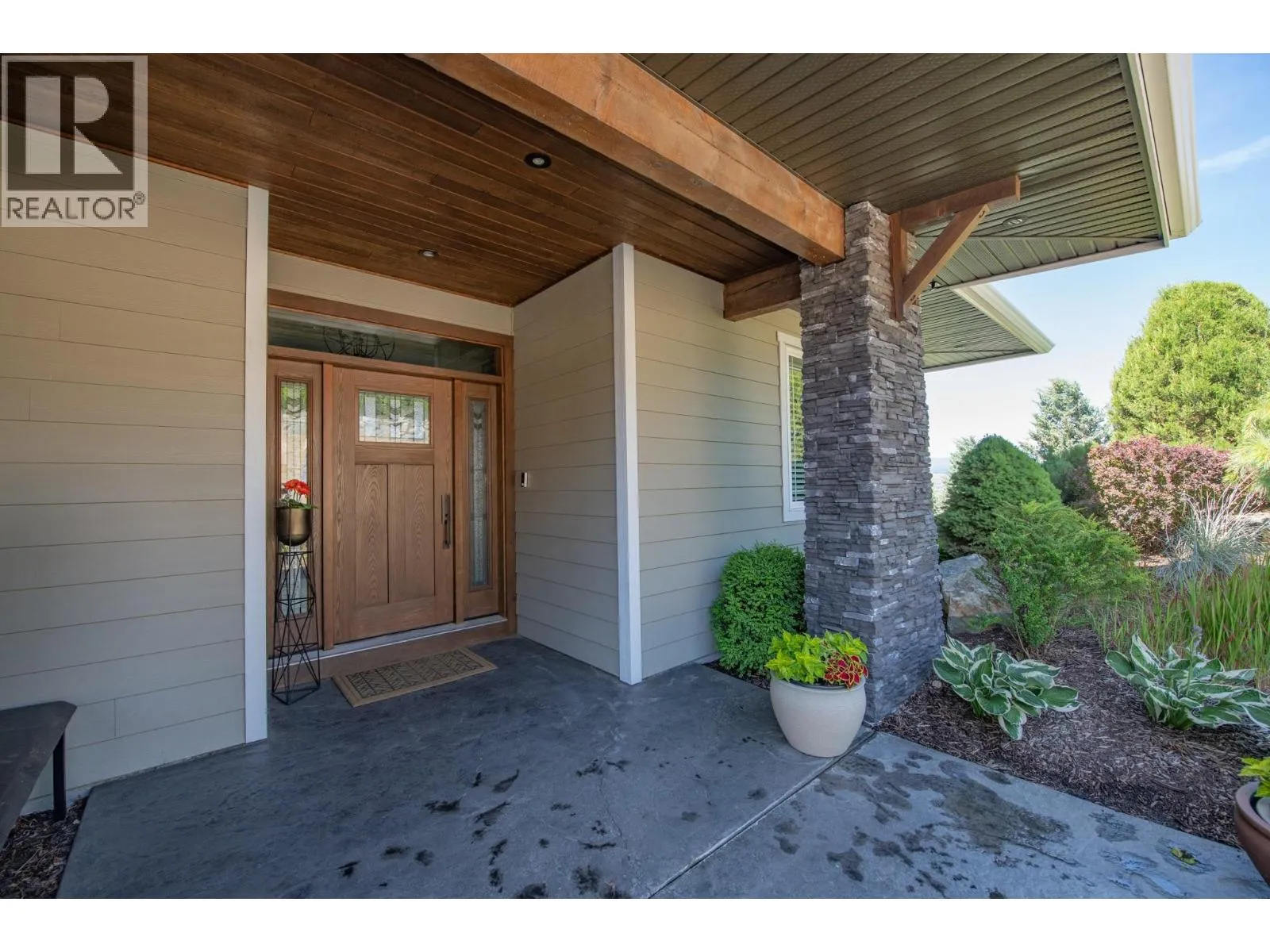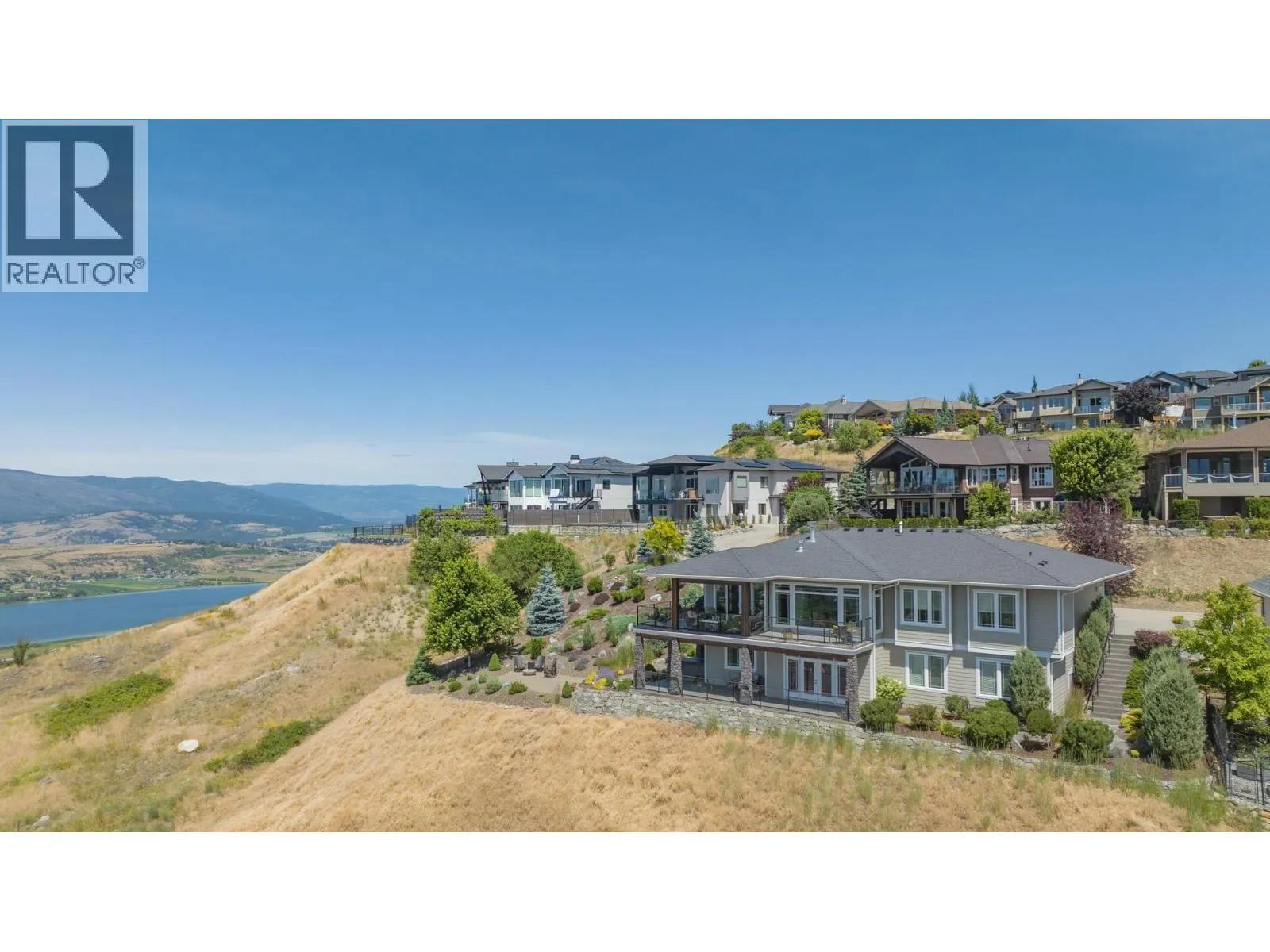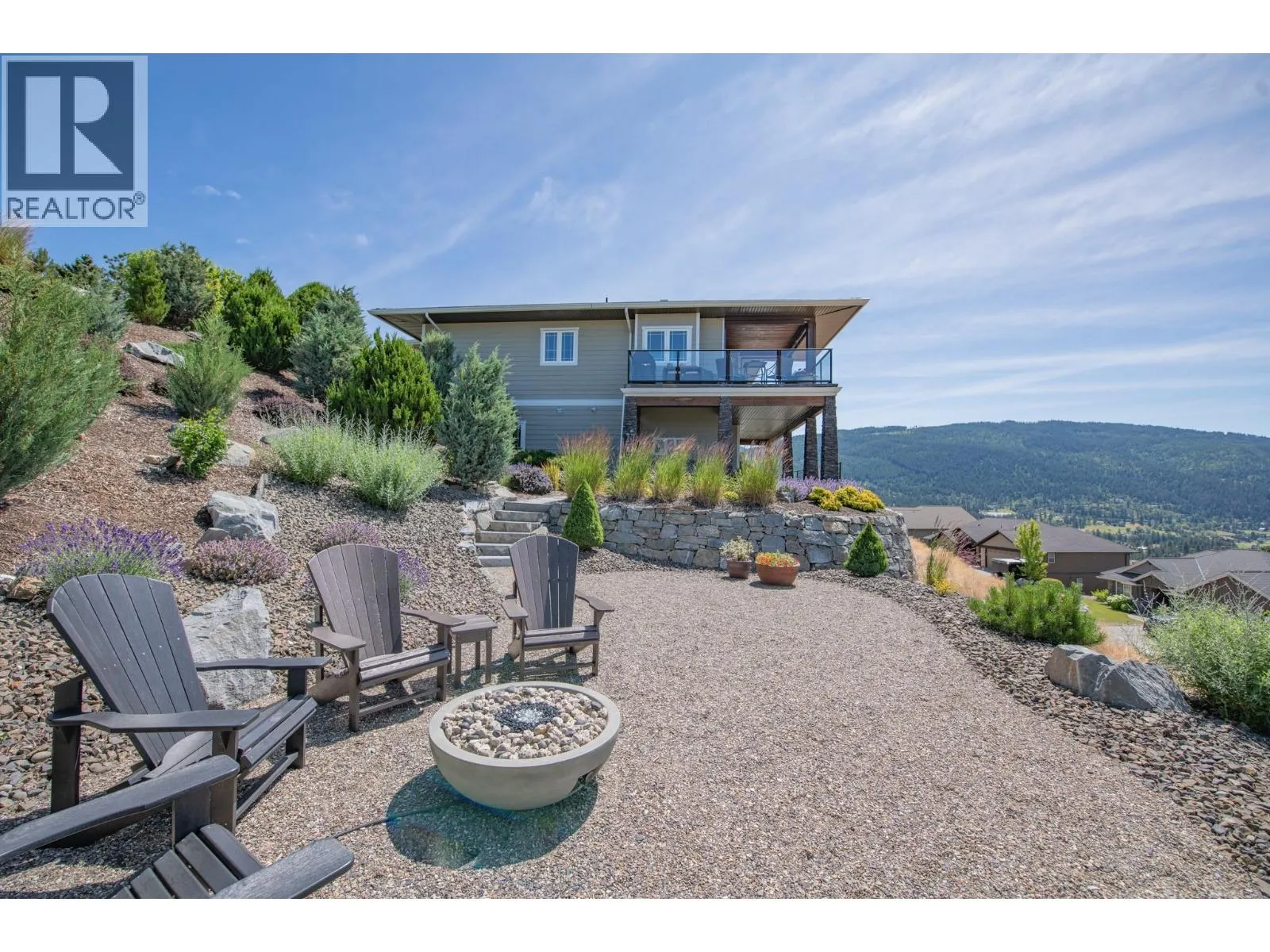 A custom-built rancher by Oakes Custom Homes, perfectly positioned to capture south-facing views of Vernonâs three lakes and Valley. Set on a private double lot of over half an acre, this home combines luxury living with custom details throughout.Inside, the open-concept design seamlessly connects the kitchen, dining, and living areasâideal for entertaining or everyday comfort. The chefâs kitchen features two-tone cabinetry, a granite island, quartz countertops, and stainless steel appliances. From both the dining and living areas there is a two way fire place and sliding doors lead to a screened-in patio with automated screens, to enjoy the stunning views. The primary suite offers a walk-in closet and spa-inspired ensuite with in-floor heating, a standalone soaker tub, double vanity, and a glass walk-in shower. Additionally youâll find a versatile office/den and a two-piece powder room.A custom steel staircase brings you to the lower level, where a cozy living room and sleek wet bar await. Two bedrooms, a full guest bath, and a flexible bonus roomâperfect as a bedroom, exercise space, or craft room. The fully landscaped grounds feature low-maintenance plants with drip irrigation, a hot tub, fire pit area, and space for a pool. RV parking, security system with flood sensors. Immaculately maintained home that showcases custom craftsmanship at every turn. Donât miss the opportunity to enjoy luxury living and unmatched views in one of Vernonâs most desirable settings. (id:27476)