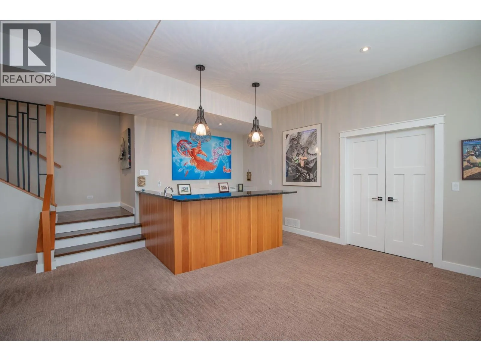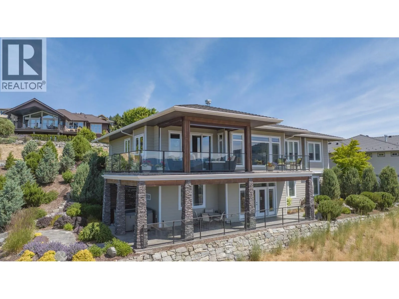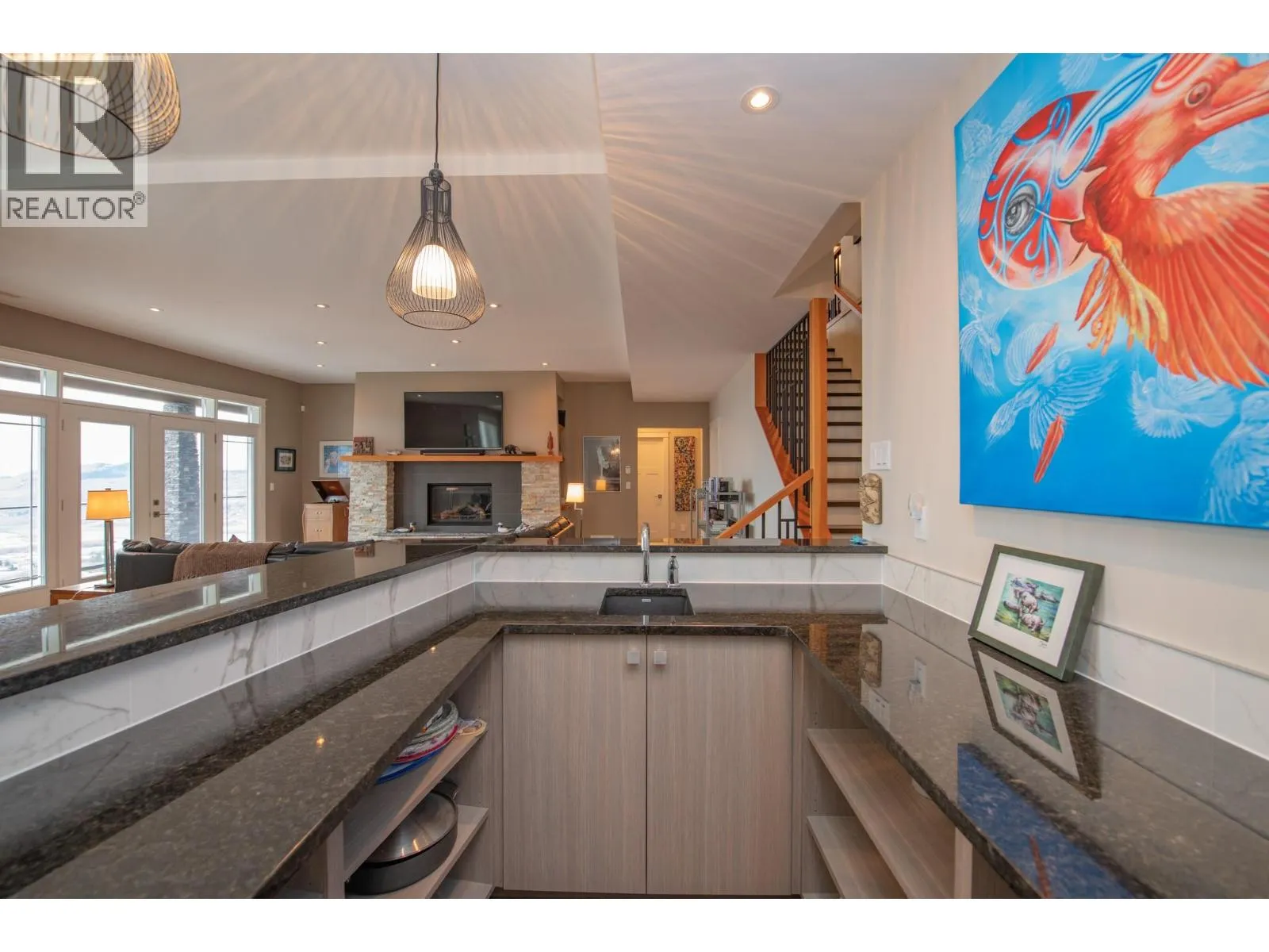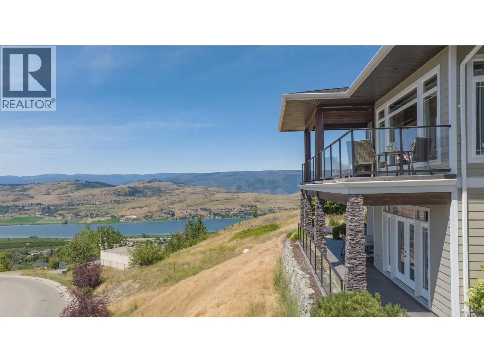 A custom-built rancher by Oakes Custom Homes, perfectly positioned to capture south-facing views of Vernonâs three lakes and Valley. Set on a private double lot of over half an acre, this home combines luxury living with custom details throughout.Inside, the open-concept design seamlessly connects the kitchen, dining, and living areasâideal for entertaining or everyday comfort. The chefâs kitchen features two-tone cabinetry, a granite island, quartz countertops, and stainless steel appliances. From both the dining and living areas there is a two way fire place and sliding doors lead to a screened-in patio with automated screens, to enjoy the stunning views. The primary suite offers a walk-in closet and spa-inspired ensuite with in-floor heating, a standalone soaker tub, double vanity, and a glass walk-in shower. Additionally youâll find a versatile office/den and a two-piece powder room.A custom steel staircase brings you to the lower level, where a cozy living room and sleek wet bar await. Two bedrooms, a full guest bath, and a flexible bonus roomâperfect as a bedroom, exercise space, or craft room. The fully landscaped grounds feature low-maintenance plants with drip irrigation, a hot tub, fire pit area, and space for a pool. RV parking, security system with flood sensors. Immaculately maintained home that showcases custom craftsmanship at every turn. Donât miss the opportunity to enjoy luxury living and unmatched views in one of Vernonâs most desirable settings. (id:27476)