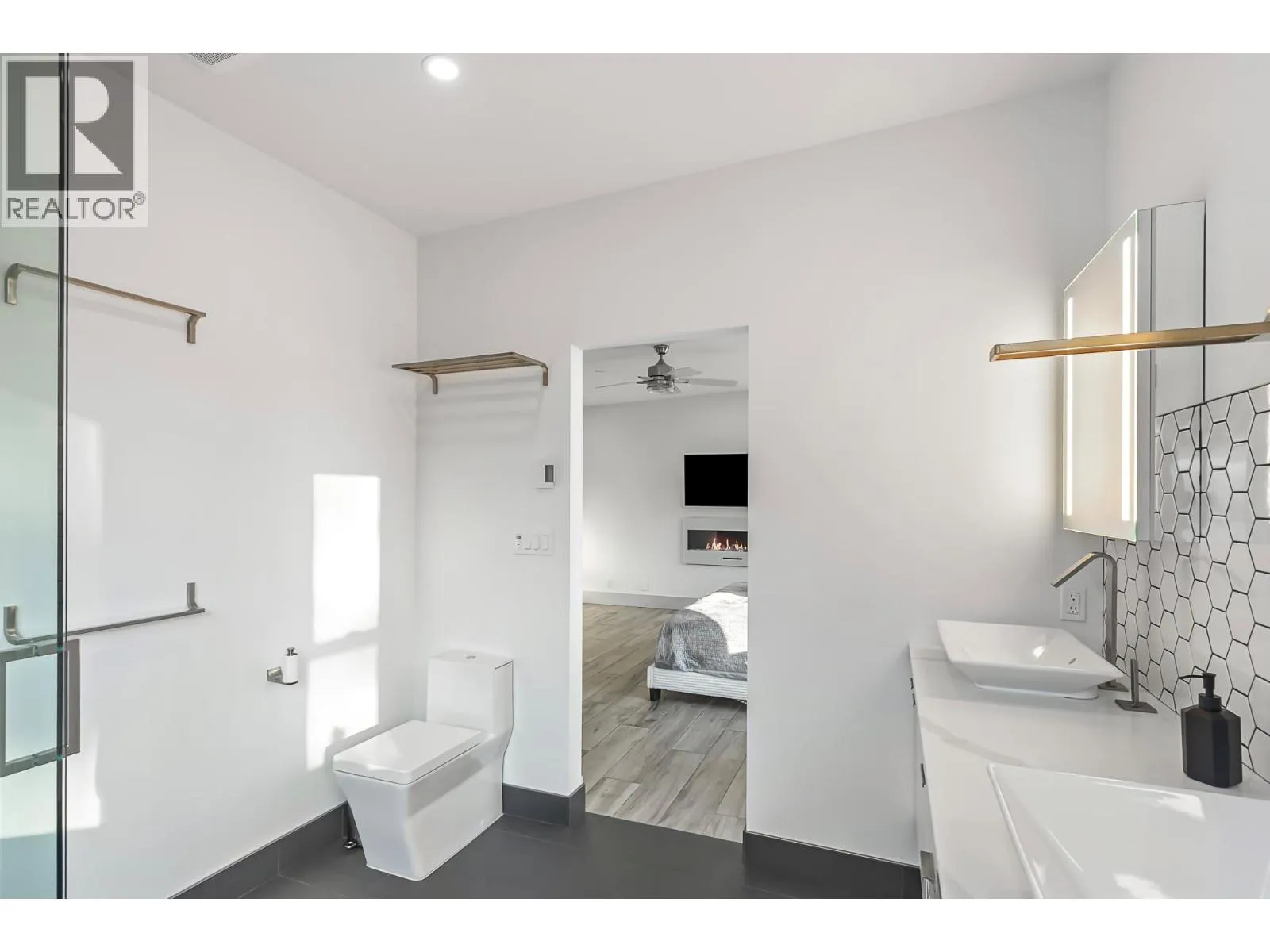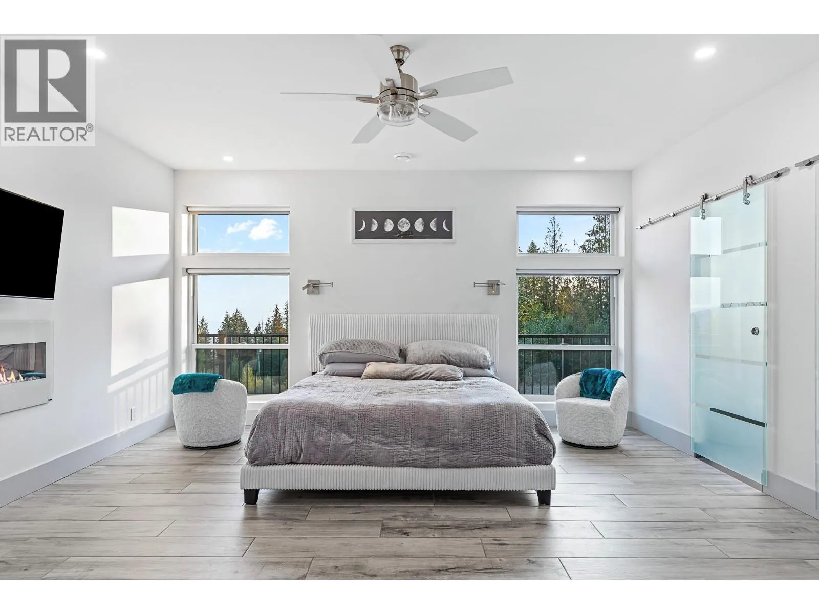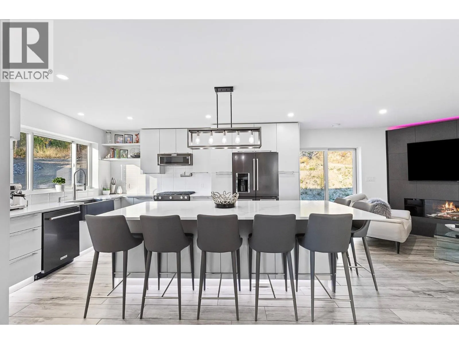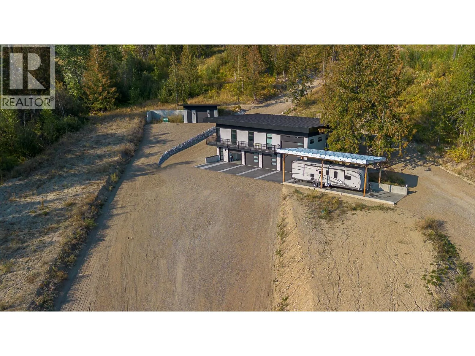 Discover modern design and country living in this beautifully crafted 3-bedroom, 2.5-bath custom home, built in 2021 on 4.9 serene acres. Thoughtfully designed with high-efficiency windows and in-floor heating, this home offers an open-concept layout perfect for both family living and entertaining. The spacious, modern kitchen features high-end wood cabinetry, a breakfast bar, and built-in desk, flowing seamlessly into the living area with a cozy natural gas fireplace. The primary suite is a private retreat with a luxurious ensuite, walk-in closet, and convenient laundry access. Interior walls are insulated for sound dampening. Two additional bedrooms share a stylish Jack & Jill bathroom, ideal for family or guests. Car enthusiasts and hobbyists will love the dream garageâa triple bay with epoxy-coated floors, in-floor heating, a wash/boat/RV bay, half bathroom, wash sink, and wiring for an EV charger. Separate 200-amp services for the main living level, garage provide exceptional functionality and flexibility. Zoning allows for another structure to be built at the top of the property, with all the prep work and services in place. The current home could become an income producer. Located just minutes from Silver Star Mountain Resort, Vernon, Okanagan and Kalamalka Lakes, this property is nestled in the peaceful foothills, offering privacy and connection to nature while keeping the best of the Okanagan within easy reach. (id:27476)
