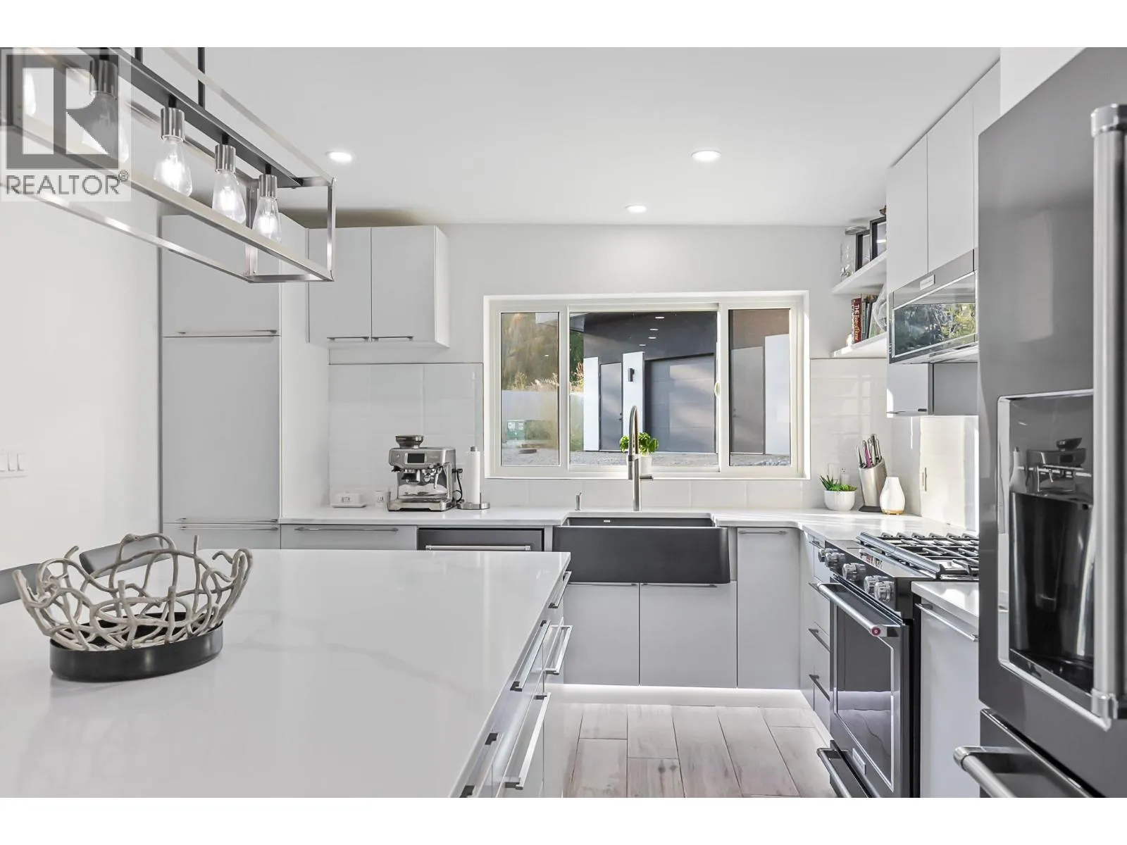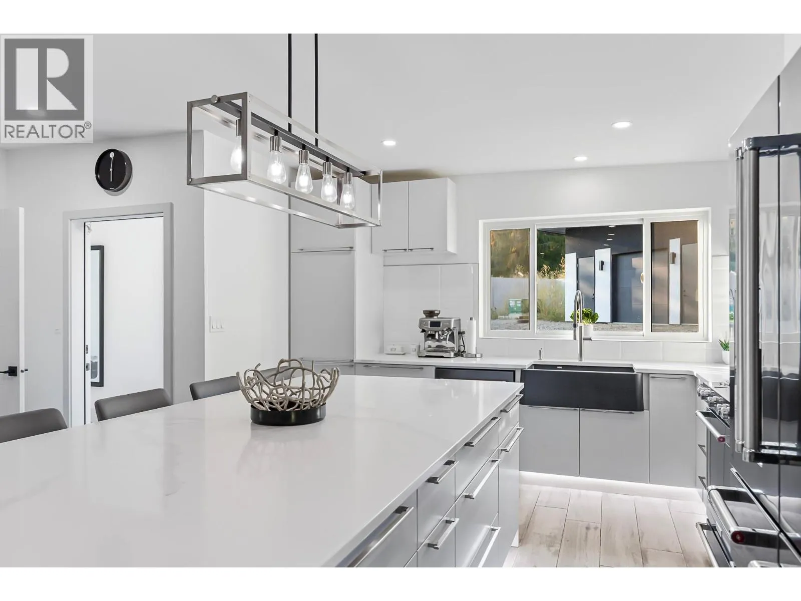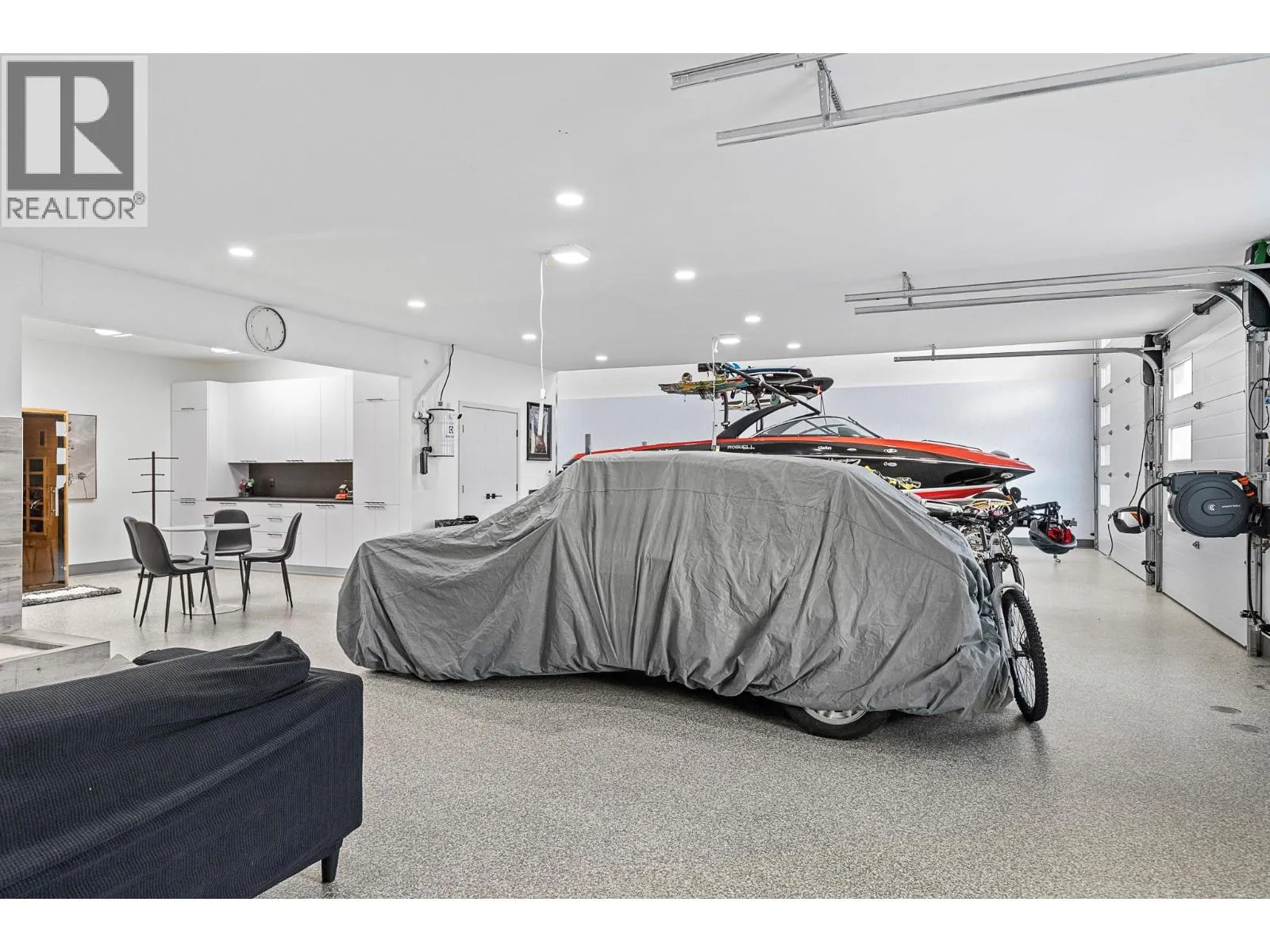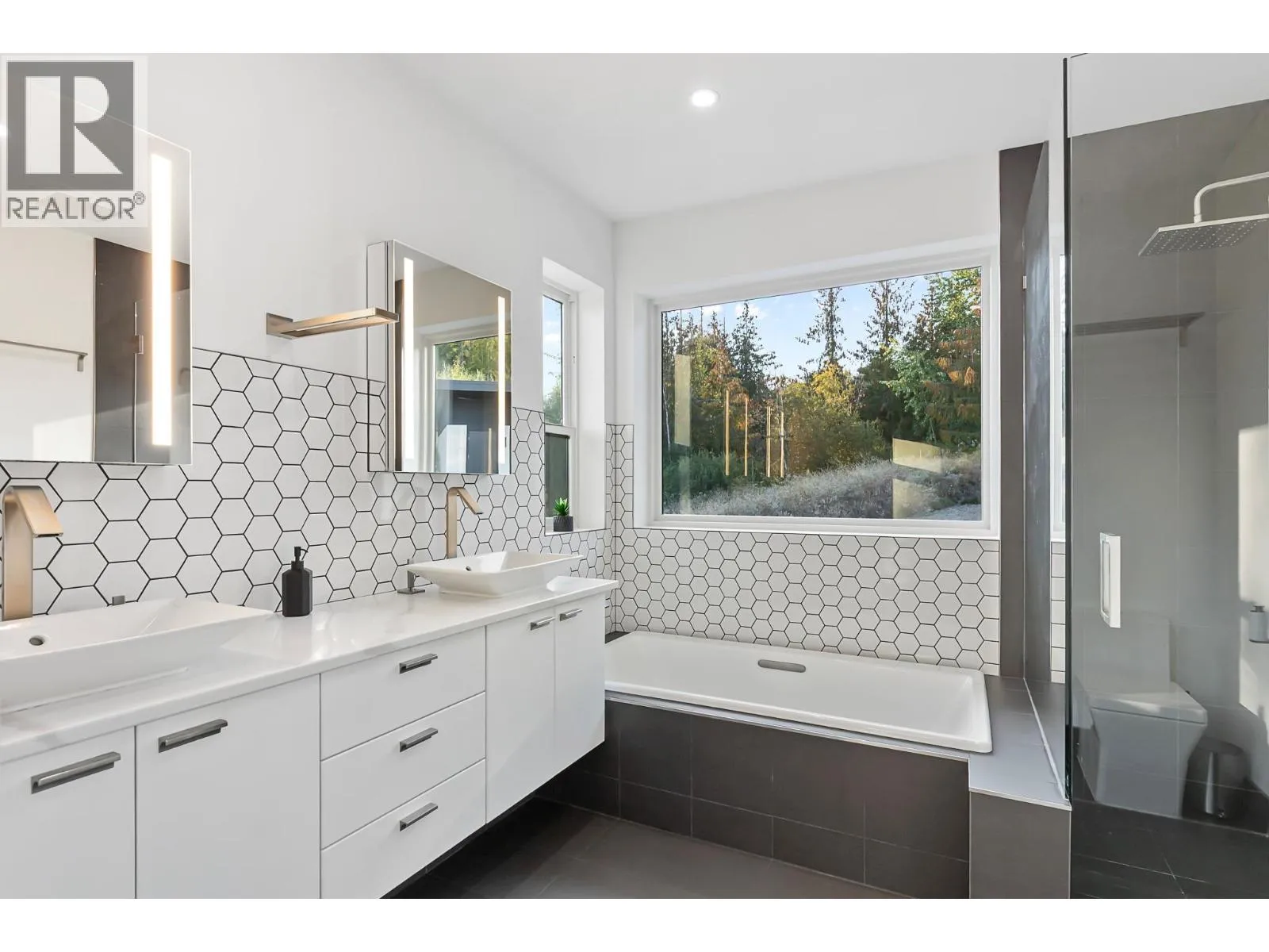 Discover modern design and country living in this beautifully crafted 3-bedroom, 2.5-bath custom home, built in 2021 on 4.9 serene acres. Thoughtfully designed with high-efficiency windows and in-floor heating, this home offers an open-concept layout perfect for both family living and entertaining. The spacious, modern kitchen features high-end wood cabinetry, a breakfast bar, and built-in desk, flowing seamlessly into the living area with a cozy natural gas fireplace. The primary suite is a private retreat with a luxurious ensuite, walk-in closet, and convenient laundry access. Interior walls are insulated for sound dampening. Two additional bedrooms share a stylish Jack & Jill bathroom, ideal for family or guests. Car enthusiasts and hobbyists will love the dream garageâa triple bay with epoxy-coated floors, in-floor heating, a wash/boat/RV bay, half bathroom, wash sink, and wiring for an EV charger. Separate 200-amp services for the main living level, garage provide exceptional functionality and flexibility. Zoning allows for another structure to be built at the top of the property, with all the prep work and services in place. The current home could become an income producer. Located just minutes from Silver Star Mountain Resort, Vernon, Okanagan and Kalamalka Lakes, this property is nestled in the peaceful foothills, offering privacy and connection to nature while keeping the best of the Okanagan within easy reach. (id:27476)