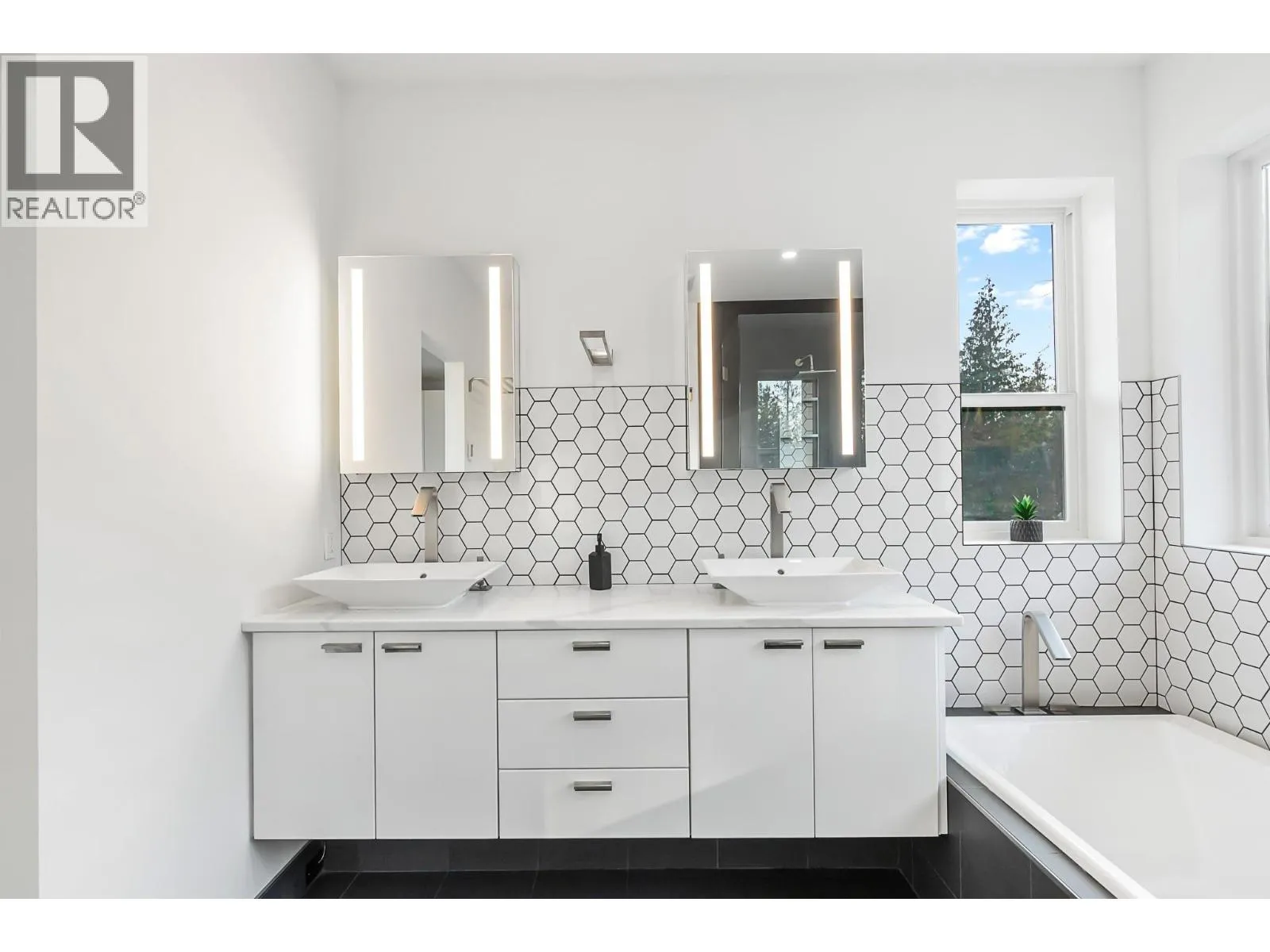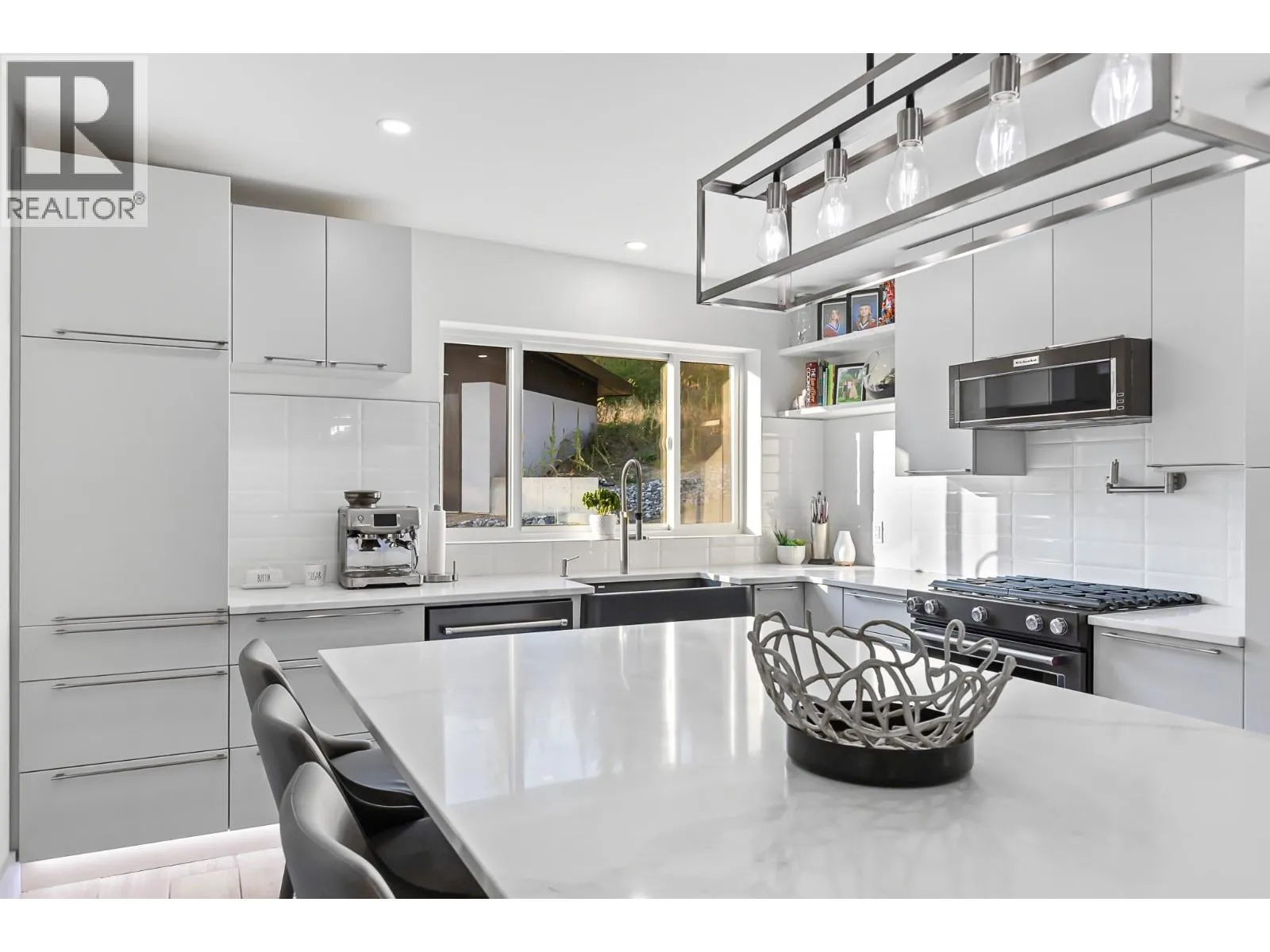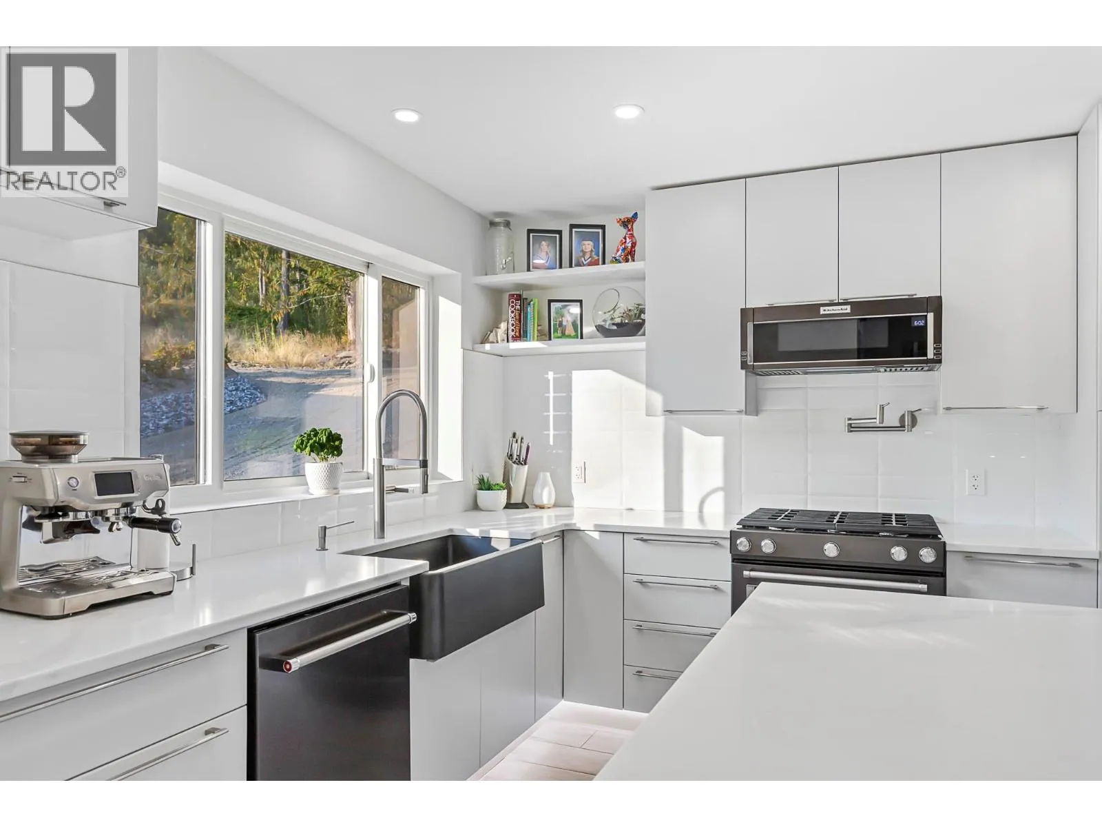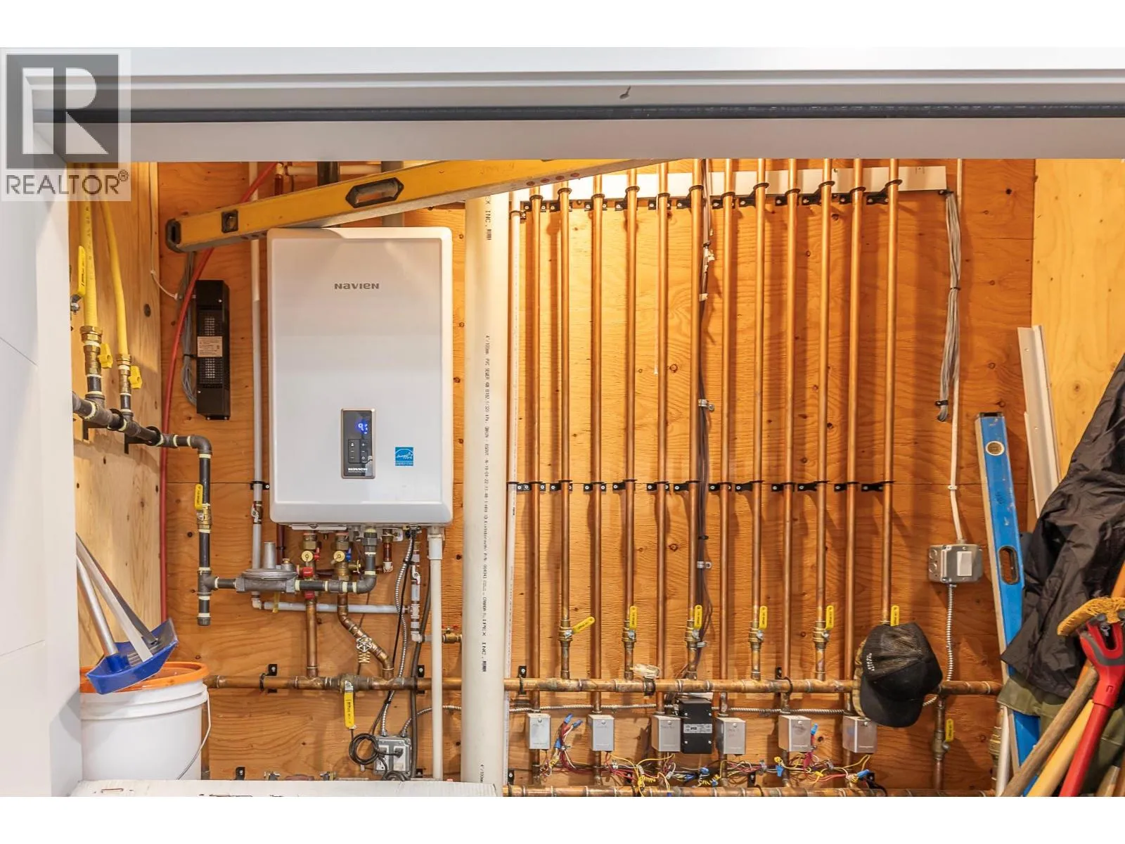 Discover modern design and country living in this beautifully crafted 3-bedroom, 2.5-bath custom home, built in 2021 on 4.9 serene acres. Thoughtfully designed with high-efficiency windows and in-floor heating, this home offers an open-concept layout perfect for both family living and entertaining. The spacious, modern kitchen features high-end wood cabinetry, a breakfast bar, and built-in desk, flowing seamlessly into the living area with a cozy natural gas fireplace. The primary suite is a private retreat with a luxurious ensuite, walk-in closet, and convenient laundry access. Interior walls are insulated for sound dampening. Two additional bedrooms share a stylish Jack & Jill bathroom, ideal for family or guests. Car enthusiasts and hobbyists will love the dream garageâa triple bay with epoxy-coated floors, in-floor heating, a wash/boat/RV bay, half bathroom, wash sink, and wiring for an EV charger. Separate 200-amp services for the main living level, garage provide exceptional functionality and flexibility. Zoning allows for another structure to be built at the top of the property, with all the prep work and services in place. The current home could become an income producer. Located just minutes from Silver Star Mountain Resort, Vernon, Okanagan and Kalamalka Lakes, this property is nestled in the peaceful foothills, offering privacy and connection to nature while keeping the best of the Okanagan within easy reach. (id:27476)