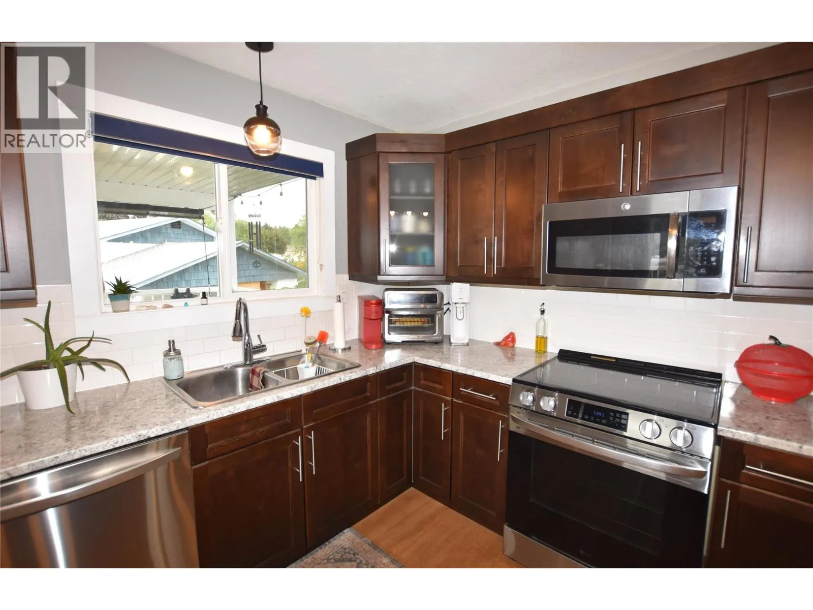 Welcome to 2105 14th Street, nestled on a quiet cul-du-sac in the well-established East Hill neighborhood of Vernon. This 4-bedroom plus den, 2-bath family home offers a highly convenient location close to schools, shopping, restaurants, and public transit. The main level features an open-concept living area with newer, low-maintenance vinyl plank flooring. The kitchen provides ample counter space and storage, complete with stainless steel appliances, while the cozy living room includes an electric fireplaceâperfect for taking the chill off on cooler mornings. Also on this level are three bedrooms and a full bathroom with double sinks. The lower level adds versatility with another bedroom, a family room, a den (or potential 5th bedroom), storage space, and laundry. Additional highlights include a fully fenced yard, double carport, hot tub, excellent parking, a 10' x 12' storage shed, and a furnace and heat pump that are just six months old. Quick possession is available. (id:27476)