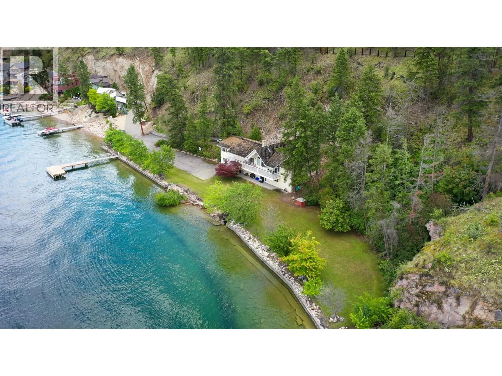 Presenting this amazing end-of-the-road 5 bed, 4 bath Lakefront Estate home located in the prestigious, gated Eastside Estates community. If privacy and location are what you are looking for, the property boasts 399 feet of pristine Okanagan lake frontage on 10.625 acres. Surrounded by Ponderosa Pines, beaches leading to crystal clear water, and stunning views of Terrace Mountain this property is your perfect oasis. Enjoy summer days on the newly constructed private pier and end the day watching the sunset from the covered balcony. The upper floor consists of three bedrooms and three baths while the large basement is fully finished including two bedrooms, a full bath, recreation room, laundry, flex room off of the garage, and a mechanical room. The kitchen features teak cabinetry and mainly marble flooring throughout. Located along picturesque Eastside Rd about 20 mins from downtown Vernon but very close to Ellison Park, Wineries, Predator Ridge and Sparkling Hill Resort. NO Speculation Tax. (id:27476)