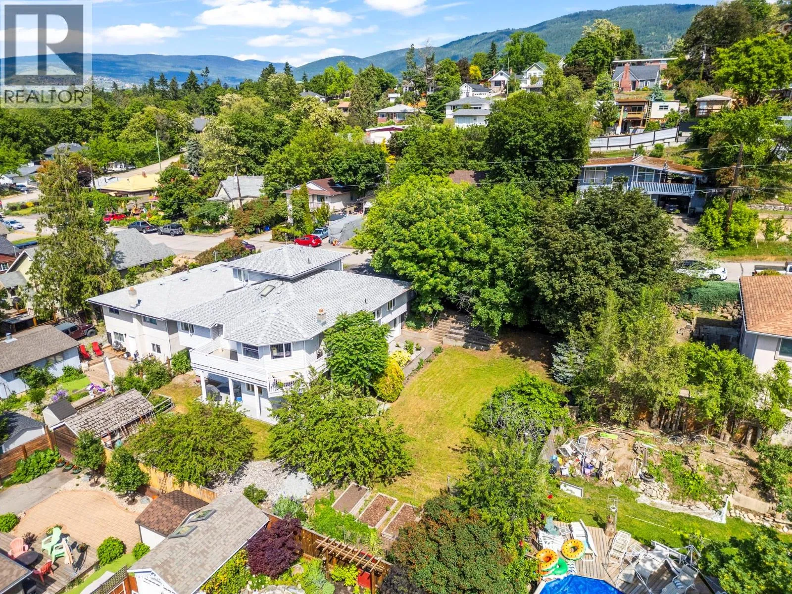 Rare Opportunity: 2 Properties with Home & Buildable Lot â Multi-Unit Zoning (2 Titles, 2 PIDs). Historically the Lot has been used as a large Yard for play, garden, outdoor living space. First time on the market! This exceptional in-town offering includes a spacious home plus a separately titled, buildable lotâa rare find just a short walk from downtown Vernon. The main home features level entry and full main-floor living with vaulted ceilings and a bright, open layout. There are 4 bedrooms (including 2 recently added), 4 bathrooms, and a roughed-in 5th bathroom, offering plenty of flexibility for families or shared living. Enjoy city views from the main floor and step outside to a balcony, deck, and private garden patioâperfect for relaxing or entertaining. Downstairs, youâll find a large family room, a workshop with separate entrance, and a self-contained suite with its own private entry and patio. Ideal for multi-generational living or rental income, this suite is newly built and has never been rented. Additional features include a flat driveway, private yard, and mature fruit treesâadding both charm and convenience. Zoned MUS (Multi-Unit Small Residential) and with 2 separate titles and PIDs, the development potential here is significant. Whether you're an investor, developer, or someone looking to secure space and privacy near the heart of the city, this is a rare opportunity to own a versatile property in one of Vernonâs most walkable neighborhoods. (id:27476)