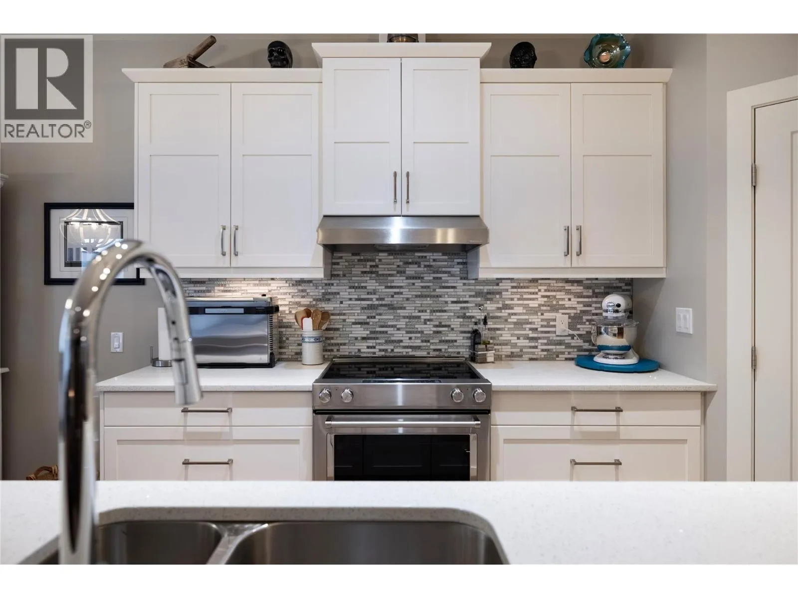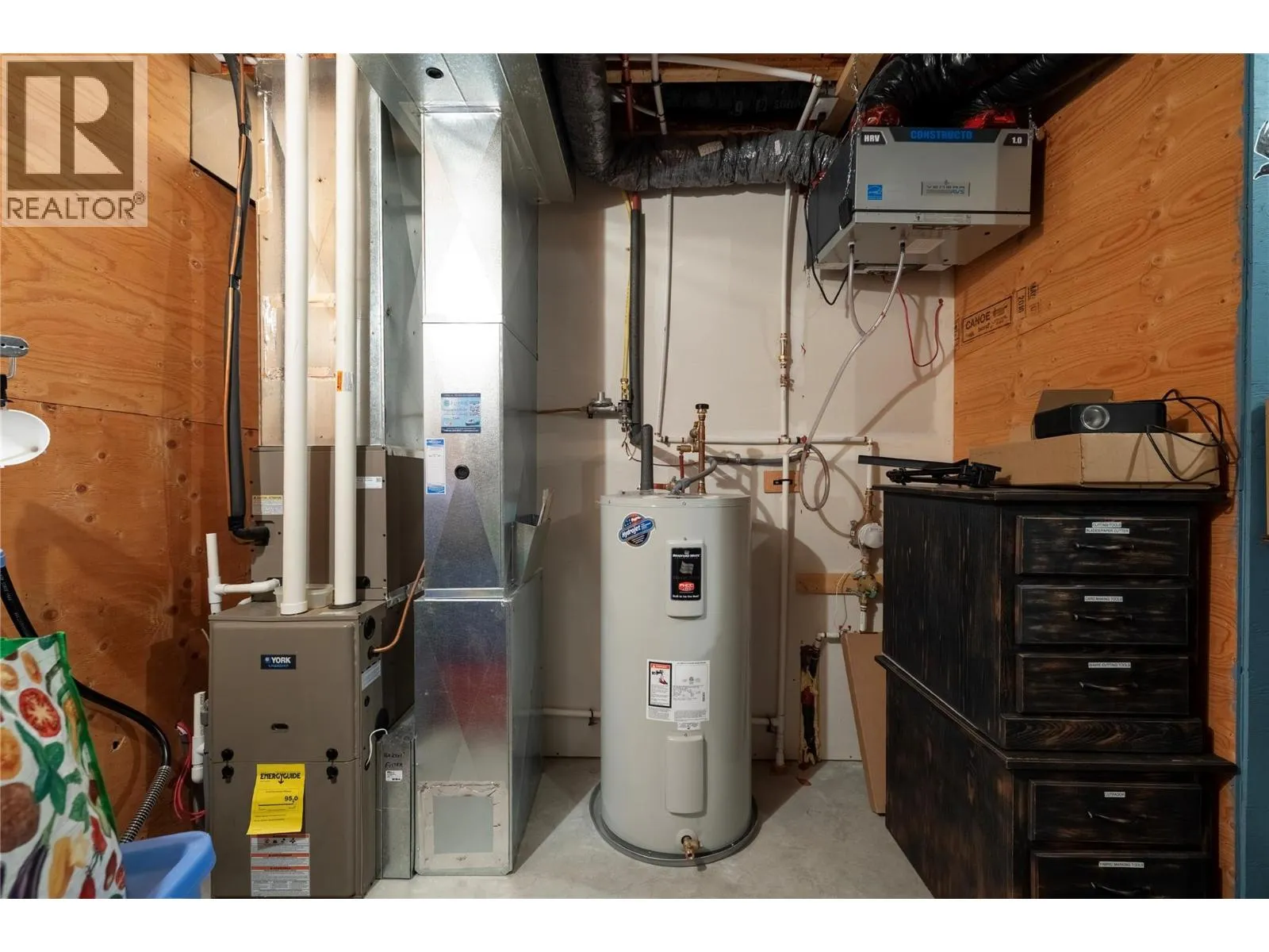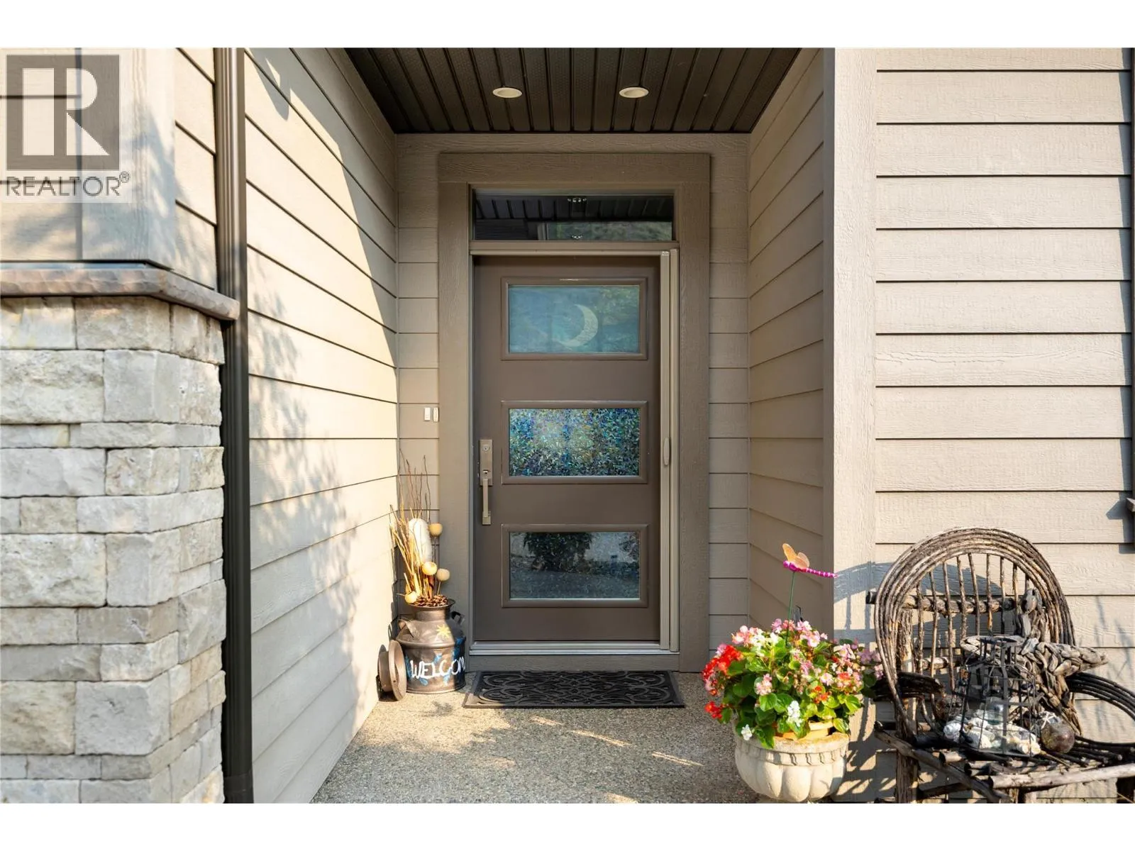 This Classic and gracious home built masterfully in 2015 by âA Legacy of Designs Ltd.â Still feels new. This finely finished 3 bedroom, 3 bath half duplex is located in the gated Bare Land Strata of Copper Mountain Villas. Open the front door to elegant main floor living including open concept living area, your primary bedroom, beautiful ensuite and walk-in closet, laundry room, powder room for your guests and a den/bedroom. Take a walk out onto the covered deck, sit by the cozy gas fireplace or prepare a meal in the gourmet kitchen and enjoy the lush mountain, lake and valley views. On the lower floor, which is easily access through the sweeping staircase or built in elevator, finds a large warm family room with access to your back patio and yard. A third bedroom with cheater ensuite is perfect for overnight guests. This home also includes air conditioning, central vacuum, security system, double car garage and gas outlet for BBQ. Located only 15 minutes from Silver Star Mountain, 10 minutes from Downtown Vernon and steps from the Grey Canal trail this home has it all. Truly a must see!! (id:27476)