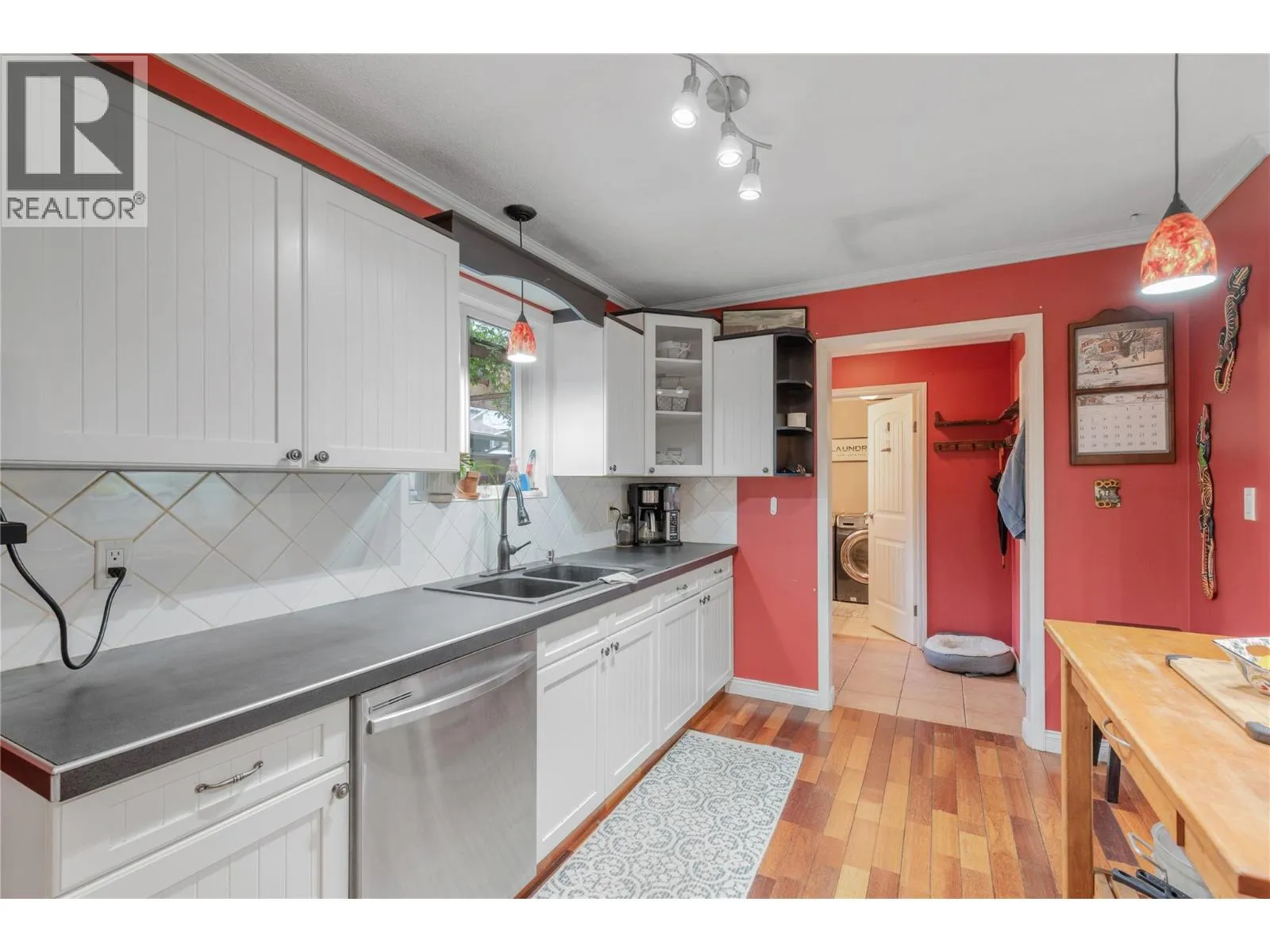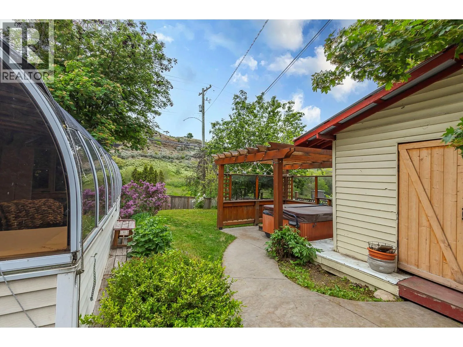 Don't miss your chance to own this beautifully maintained 2-Bedroom & Den, single-level home. Nestled on a spacious, fully-fenced lot, the lush yard is a gardenerâs paradise, featuring a wide thriving grape arbor, raspberries, and blackberries. Enjoy quiet evenings in the hot tub or put your feet up to relax in your tranquil yard all within the privacy of your own backyard retreat. Inside, the home offers two bedrooms plus an office/den and a sunroom, highlighted by hardwood floors. The inviting living room features a cozy fireplace, perfect for relaxing on cooler evenings. Enjoy a spacious kitchen and dining area that opens directly onto the patio, making outdoor entertaining and summer BBQs a breeze. A large cheater ensuite bathroom adds both function and elegance, while the attached double (21x19) garage and RV/boat parking provide ample storage for all your lifestyle needs. Located within walking distance to schools, parks, shopping, and recreation, this home offers the perfect blend of comfort, charm, and convenienceâideal for families and anyone looking to enjoy a peaceful yet connected lifestyle. (id:27476)