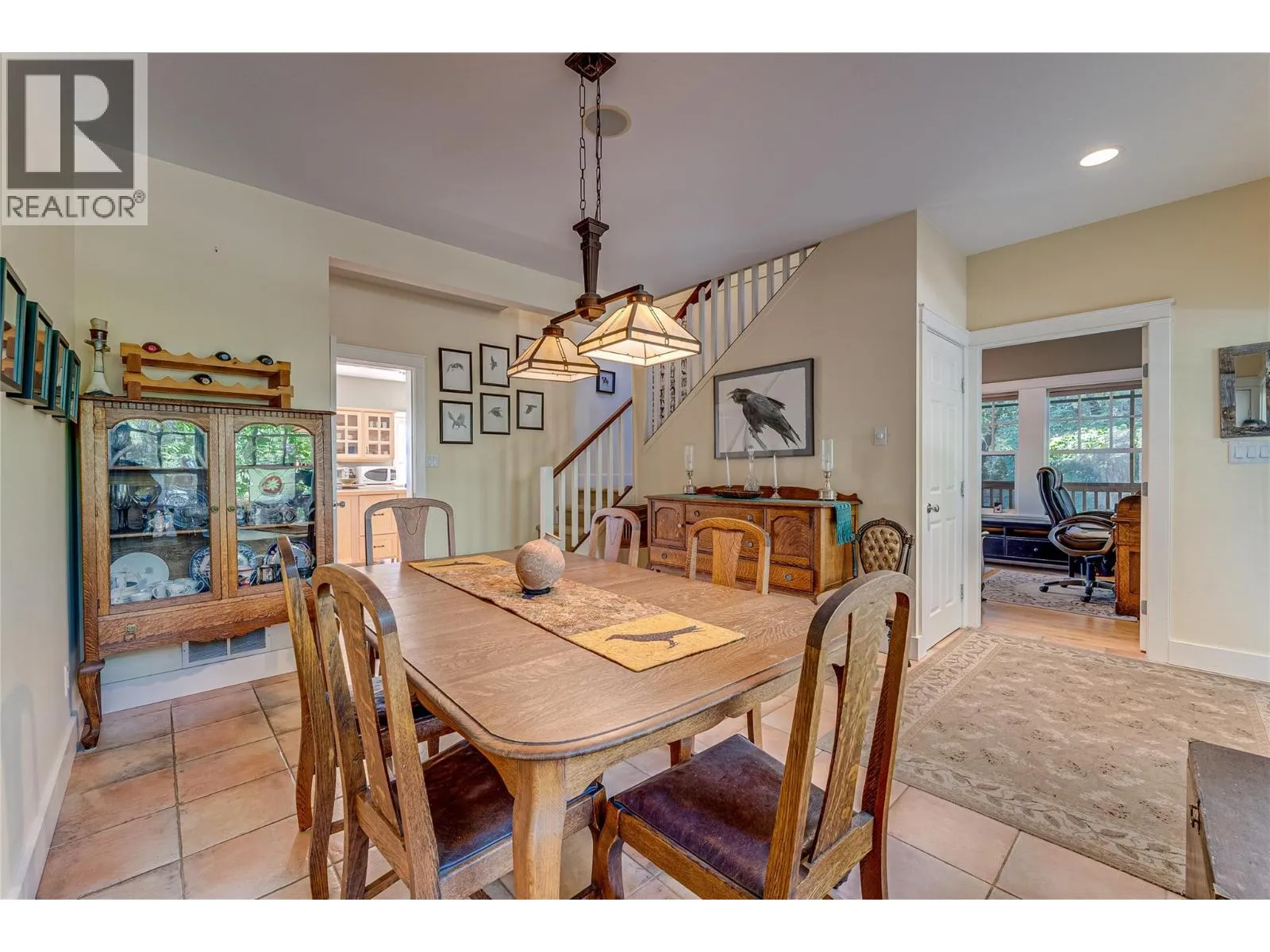 Nature Loverâs Dream Tucked away in the heart of downtown Vernon, this incredibly rare and never-before-listed 5-bedroom, 4-bathroom home offers a stunning blend of natural beauty, privacy, and convenience. Set against the tranquil backdrop of the bubbling Vernon Creek, this property is a true oasis. Step onto the expansive wraparound deck or relax at one of several peaceful outdoor sitting areas, thoughtfully positioned to take full advantage of the serene, nature-filled setting. Whether you're enjoying your morning coffee or winding down in the evening, this outdoor haven invites best of all. Inside, youâll be welcomed by a spacious open-concept dining area, flowing effortlessly into the kitchen and living room, complete with a cozy gas fireplace. A private office with glass doors provides a quiet workspace with direct access to the wraparound deck. Just steps from the kitchen lies the primary bedroom with ensuite, offering access to a charming pebble-stone patio for even more outdoor enjoyment. Upstairs opens to a generous landing/family room, leading to two oversized bedrooms. One features its own private deck overlooking the creek, while the other boasts a full ensuite. A second full bathroom completes this upper level. A private entrance leads to a beautifully appointed 2-bedroom suite, complete with its own deck, open-concept kitchen, dining and living areas, a full bathroom, and in-suite laundry. With an abundance of natural light, itâs perfect as a mortgage helper, in-law suite, or potential income-generating rental. The fully fenced backyard features a private gate and steps leading directly to the creek, providing a peaceful escape just moments from your back door. Located within walking distance to shops, restauraurants. Whether you're dreaming of a charming bed & breakfast, a multi-generational home, or a smart investment property... this is it. (id:27476)