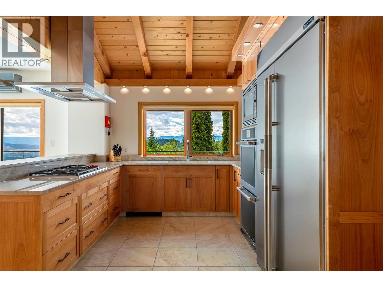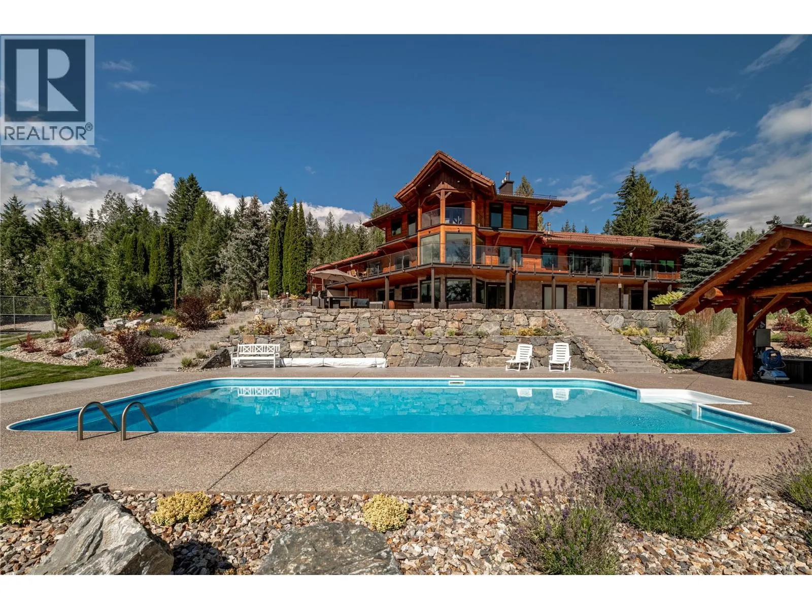 Welcome to this ultra-private, pristine 40-acre Okanagan luxurious estate featuring two homes and exceptional amenities! The fully renovated 5,995 sq ft main residence (4 bed/5 bath) by Bercum Builders offers unrivaled timeless craftsmanship with incredible views of both the pool and lakes below. Perched nearby yet secluded in itself the equally stunning yet smaller 1,431 sq ft legal carriage house (2 bed/2 bath) also has been renovated with perfection mirroring the same modern elegance throughout much like the primary home. Soak in the panoramic views and secluded heated swimming pool with 3,000 sq ft of concrete patio or drift away in the hot tub under the stars. Added amenities include an oversized heated shop , equipment storage, and a fully equipped equestrian barn with hay storage and cross-fenced paddocks. Revel in 180° lake and city views, relax in the home theatre, or entertain in styleâthis property balances sophistication with smart functionality. Interior features include heated floors, smart home tech, fire mitigation system, exquisite wood finishes, upgraded electrical, and more. Outside, find a private well, cistern, diesel generator, stunning water feature, low-maintenance landscaping, and mature cedar forest. Non-ALR zoning offers potential for future development. Perfectly located between Vernon and Silver Star Resort for quick access to recreation and amenities. A rare opportunity to own an unparalleled mountain retreatâschedule your viewing today! (id:27476)