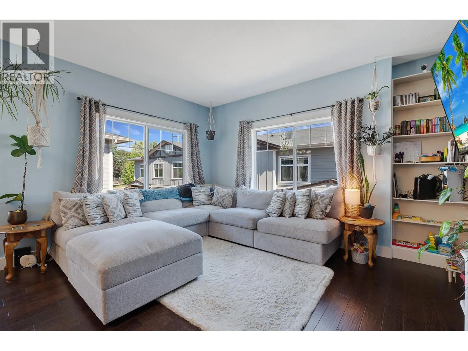 Welcome to Cornerstone Townhomes â Quiet, Quality Living! Tucked at the back of this well-maintained 10-unit complex, this immaculate 3-bedroom + den townhome offers rare privacy and serenity â all just minutes from Vernonâs best amenities. With garage parking and an additional assigned stall right next to the unit, convenience is built right in. Thoughtfully designed with timeless craftsmanship and an open-concept layout, the home welcomes you with a spacious kitchen featuring a large island and quality appliances. The seamless flow to the living and dining areas makes it perfect for hosting or relaxing. The main level features a generously sized primary suite with a spa-inspired ensuite, a second bright bedroom, and a full guest bath. On the entry level, a cozy den, third bedroom with sliding doors to a private patio, an extra bath, and laundry area round out the functional layout. Storage is abundant throughout, and the unit backs onto the quiet side of the development, adding to the peaceful atmosphere. This pet-friendly complex embraces a warm, community feel with very LOW strata fees and pride of ownership throughout. Conveniently located close to the hospital, schools, downtown shops, Natureâs Fare, Kin Beach, and extensive recreation â including pickleball, sports fields, walking trails, and more. Donât miss your chance to own in this tightly held community where quality, quiet, and comfort come together. (id:27476)