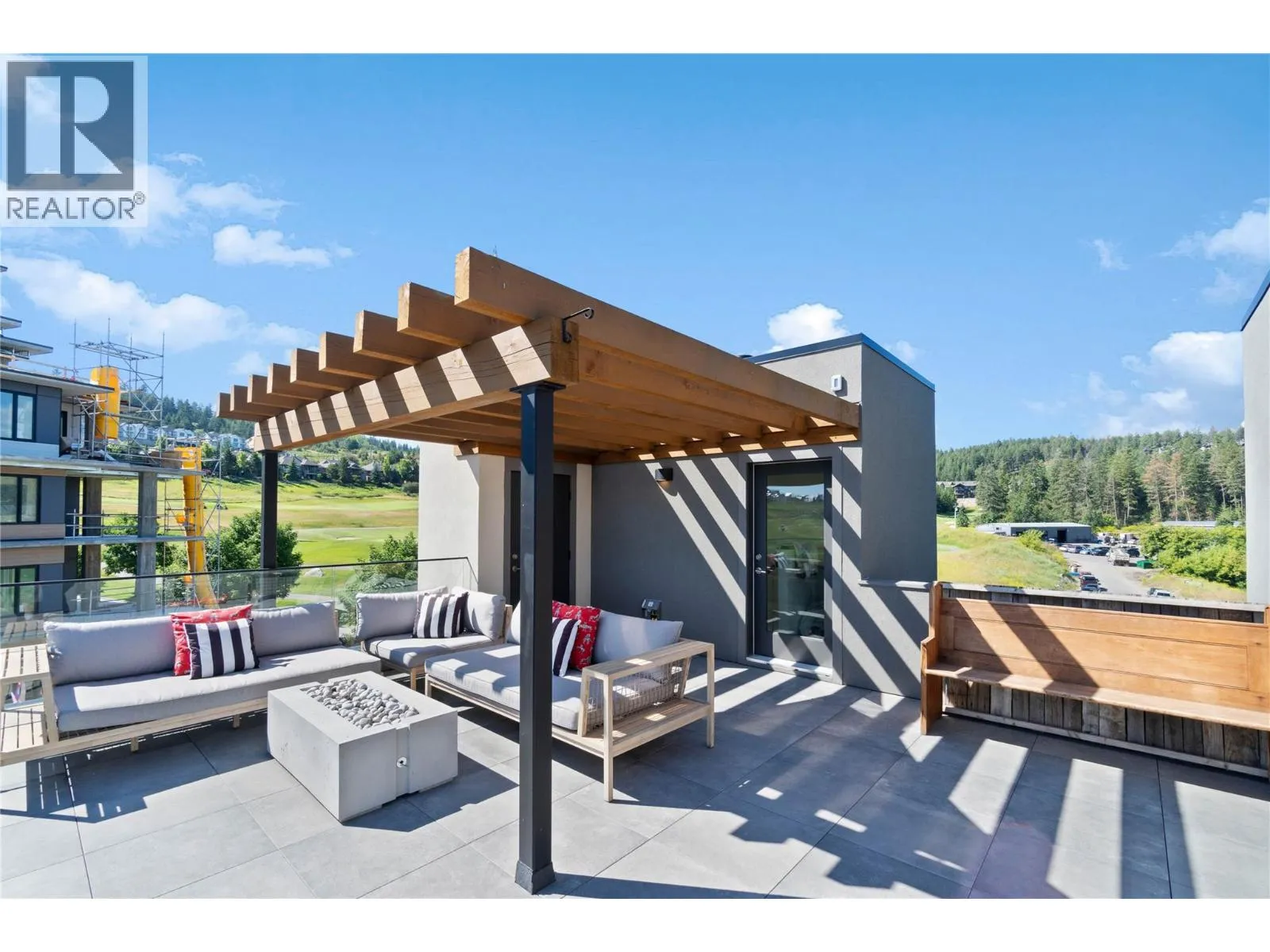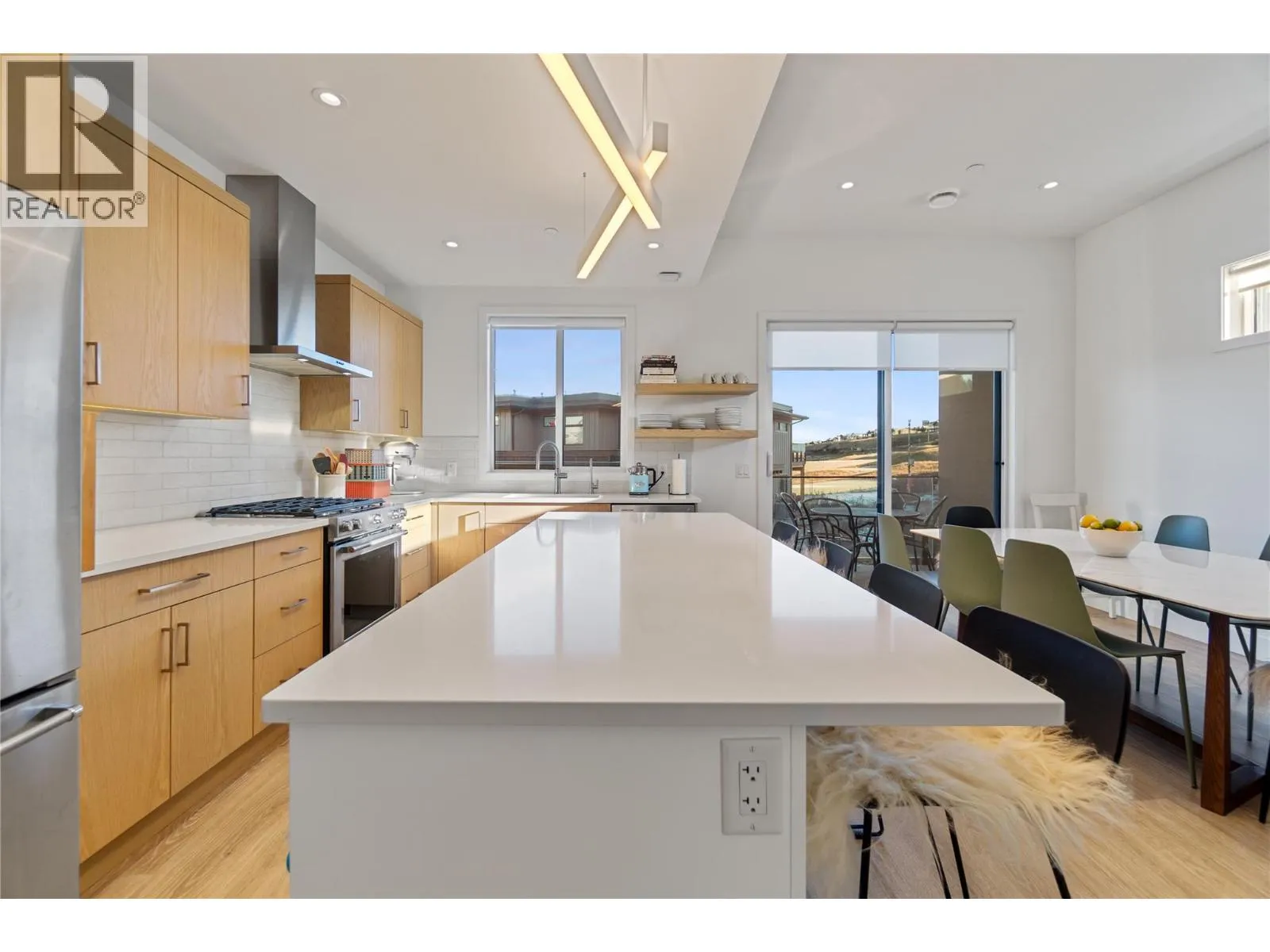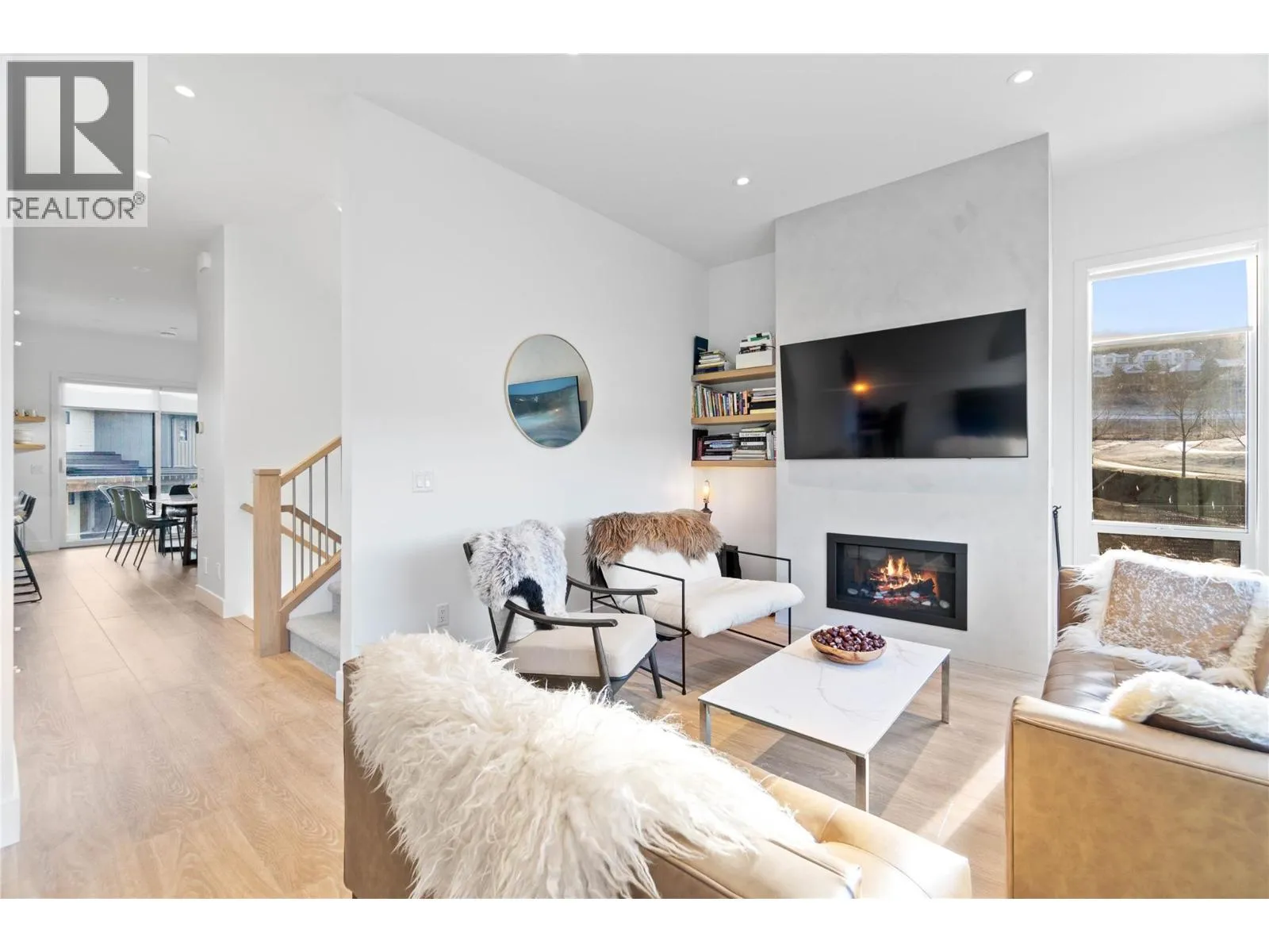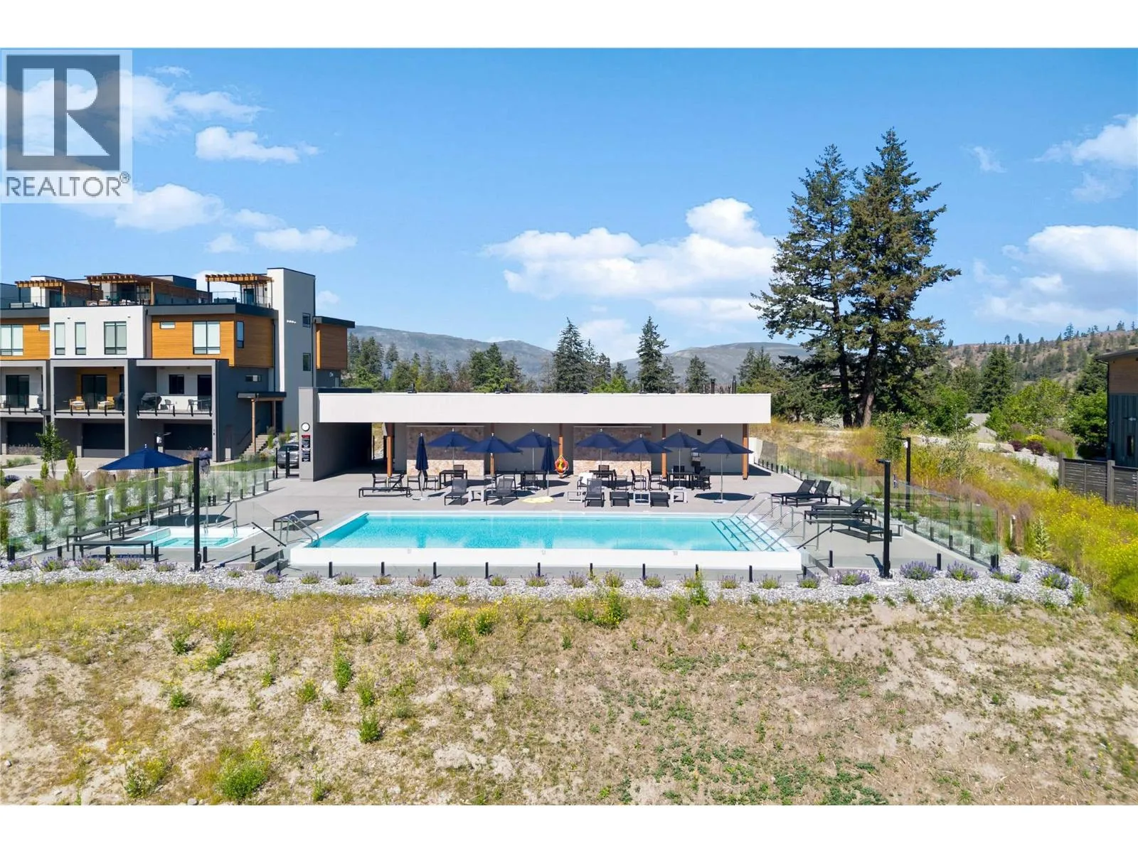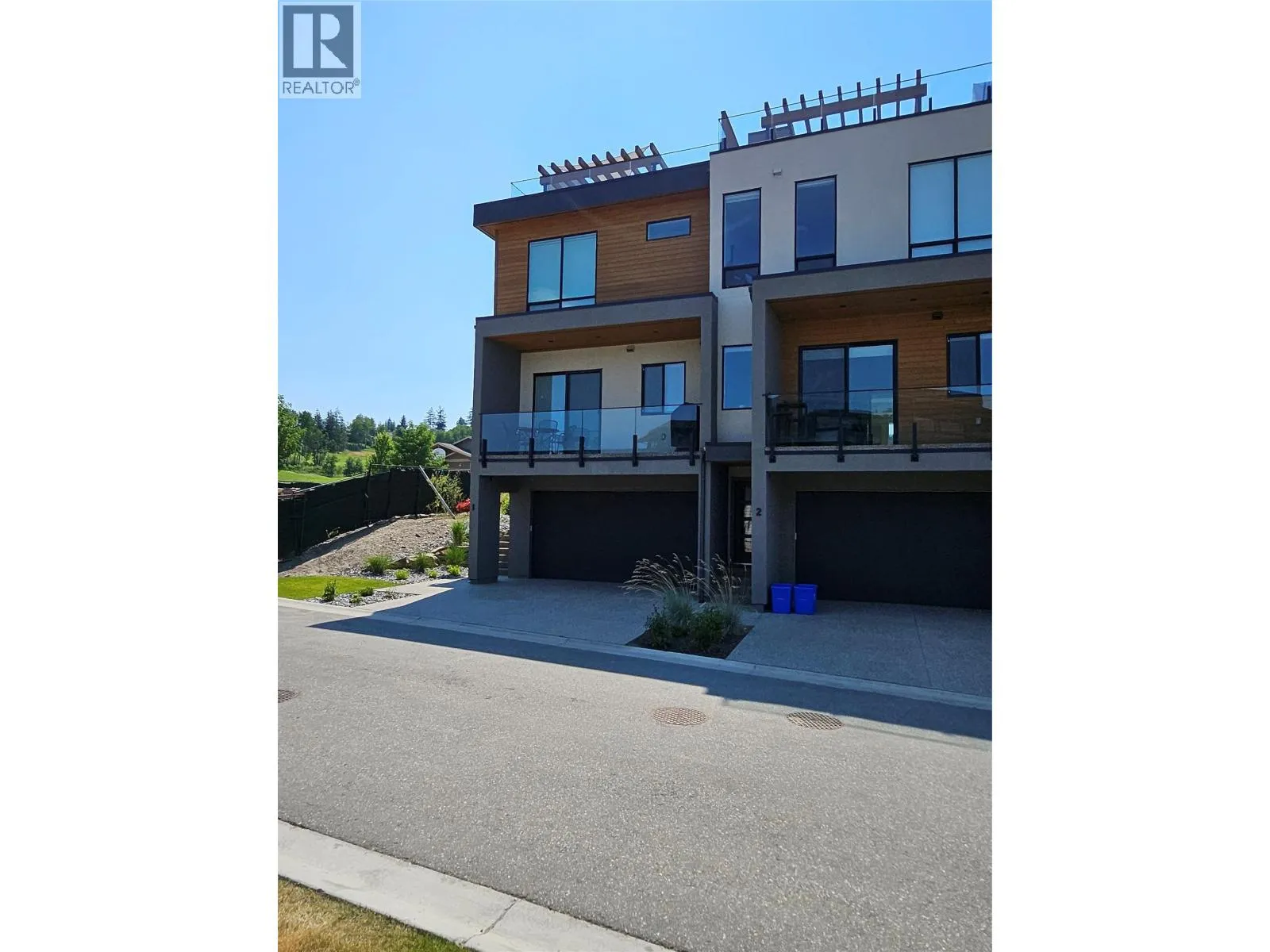 An extraordinary townhouse in the heart of the prestigious Predator Ridge community, where luxury meets lifestyle. Built in 2022, this residence embodies refined elegance with the warmth of modern design, offering a sanctuary for those who value sophistication and comfort. The open-concept main level connects kitchen, dining, and living spaces in a seamless flow, with sunlight pouring through expansive windows to highlight clean lines and premium finishes. The chef-inspired kitchen, equipped with top-of-the-line appliances, sleek cabinetry, and a generous island, is perfect for entertaining and everyday living. With four bedrooms, including two private ensuites, the home is thoughtfully designed for family and guests. Each of the four bathrooms is a retreat, featuring spa-like details and high-end fixtures, with heated floors in the guest and master suites for added comfort. Every detail is designed to elevate your lifestyle. Enjoy the private infinity pool and hot tub shared exclusively by the street, or gather on the rooftop patio with its fire table and stylish furnishings. Inside, custom shelving enhances the kitchen and living areas, while the home comes complete with kitchen furniture, all beds including a striking king-size Murphy bed in the lower guest suite and a BBQ for outdoor dining. Practical touches include an integrated water softener, electric car charger, and the rare privacy of an end unit with extra parking. Beyond your door lies the Predator Ridge lifestyle (id:27476)