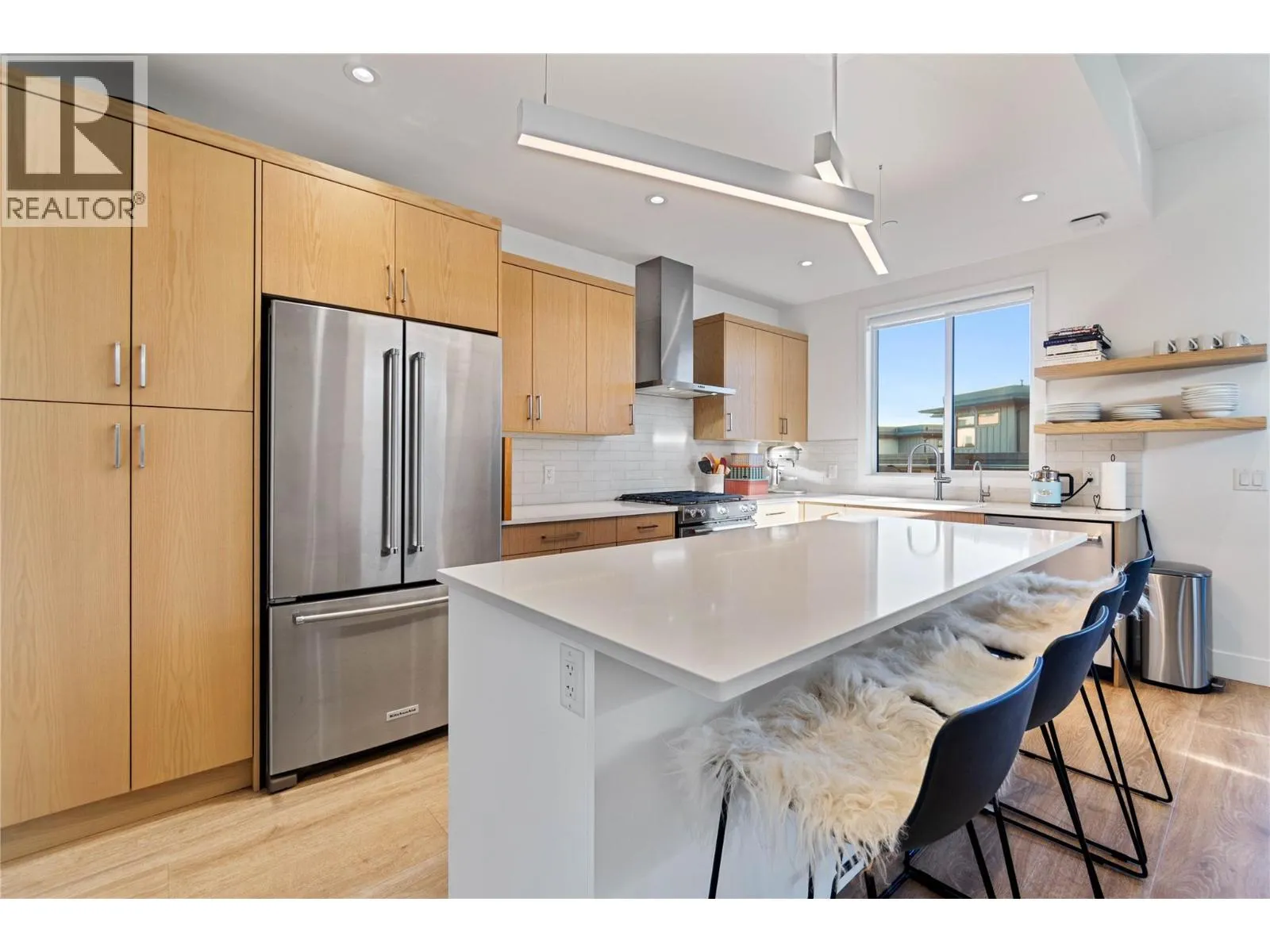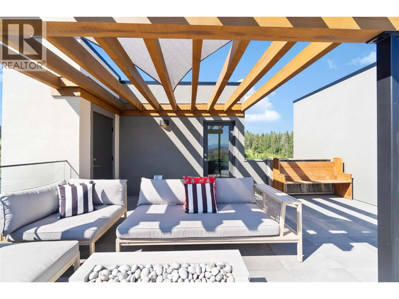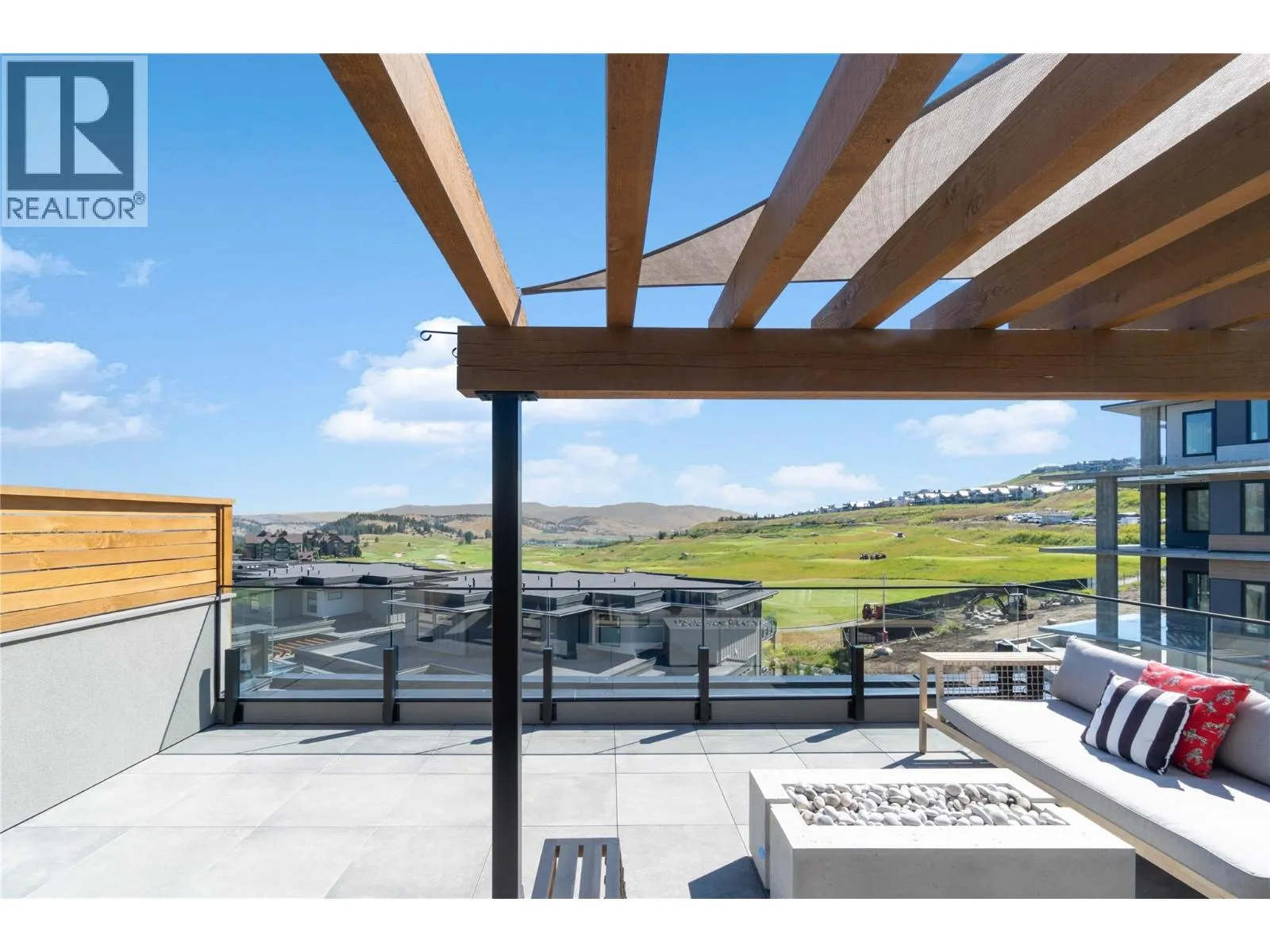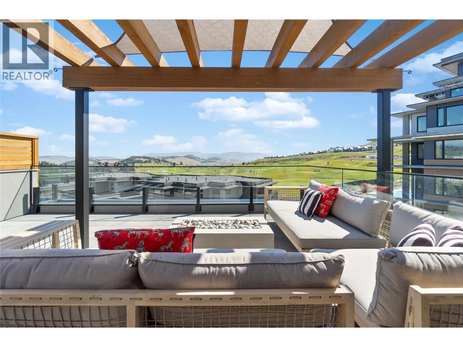 An extraordinary townhouse in the heart of the prestigious Predator Ridge community, where luxury meets lifestyle. Built in 2022, this residence embodies refined elegance with the warmth of modern design, offering a sanctuary for those who value sophistication and comfort. The open-concept main level connects kitchen, dining, and living spaces in a seamless flow, with sunlight pouring through expansive windows to highlight clean lines and premium finishes. The chef-inspired kitchen, equipped with top-of-the-line appliances, sleek cabinetry, and a generous island, is perfect for entertaining and everyday living. With four bedrooms, including two private ensuites, the home is thoughtfully designed for family and guests. Each of the four bathrooms is a retreat, featuring spa-like details and high-end fixtures, with heated floors in the guest and master suites for added comfort. Every detail is designed to elevate your lifestyle. Enjoy the private infinity pool and hot tub shared exclusively by the street, or gather on the rooftop patio with its fire table and stylish furnishings. Inside, custom shelving enhances the kitchen and living areas, while the home comes complete with kitchen furniture, all beds including a striking king-size Murphy bed in the lower guest suite and a BBQ for outdoor dining. Practical touches include an integrated water softener, electric car charger, and the rare privacy of an end unit with extra parking. Beyond your door lies the Predator Ridge lifestyle (id:27476)