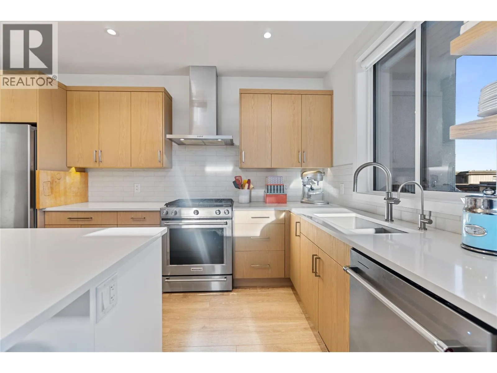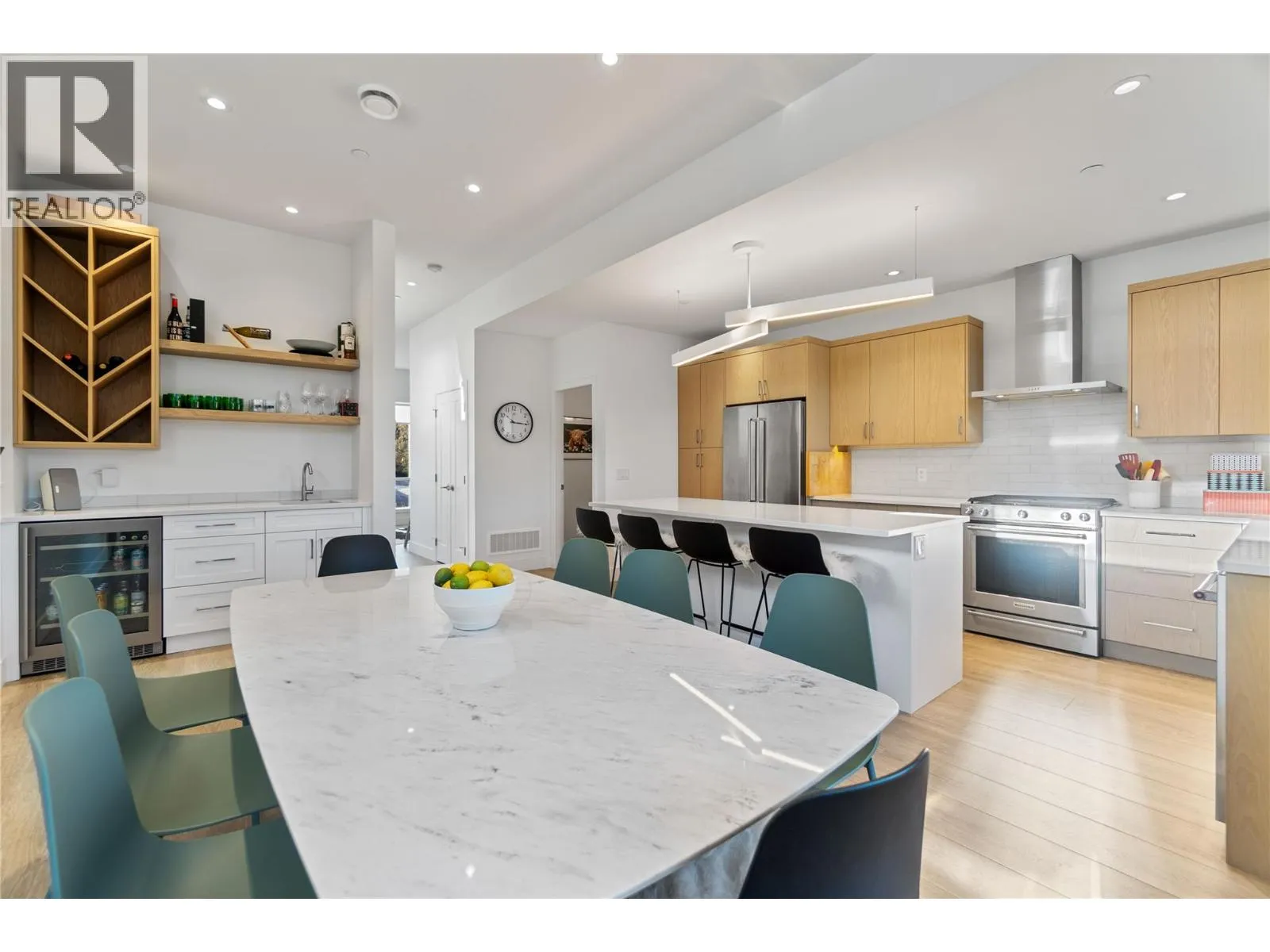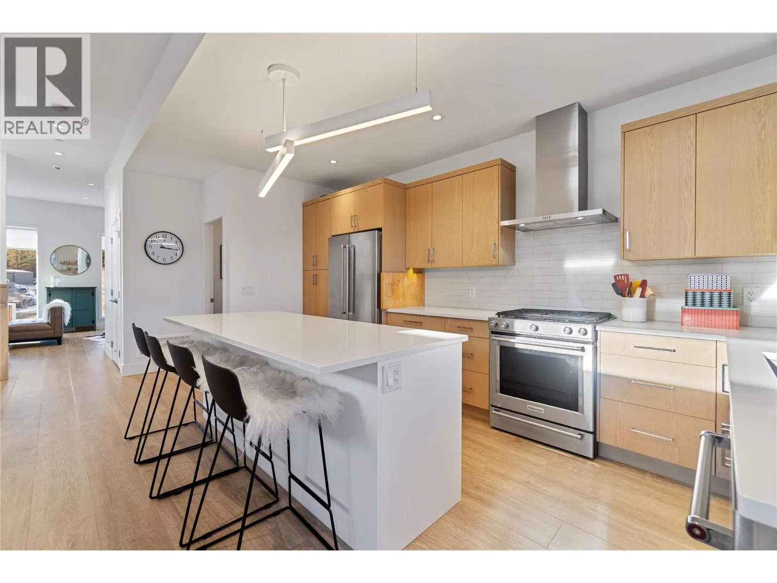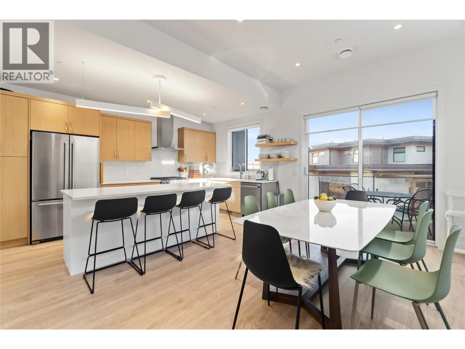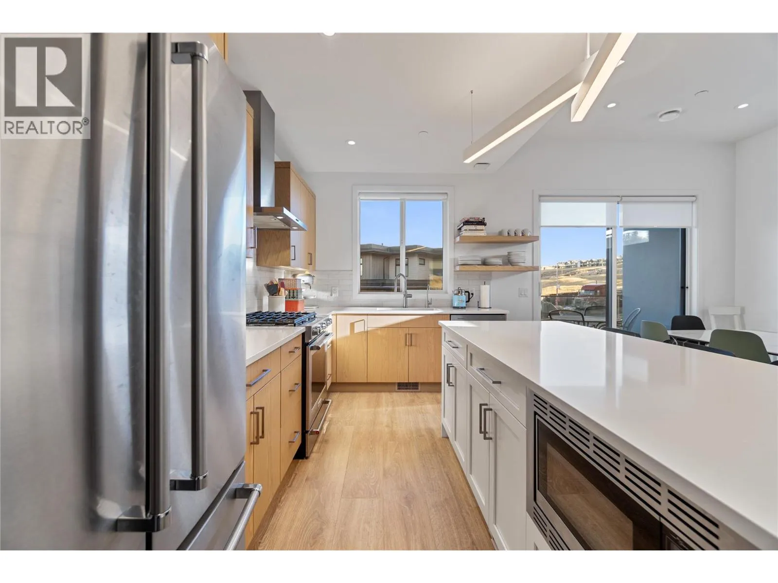 An extraordinary townhouse in the heart of the prestigious Predator Ridge community, where luxury meets lifestyle. Built in 2022, this residence embodies refined elegance with the warmth of modern design, offering a sanctuary for those who value sophistication and comfort. The open-concept main level connects kitchen, dining, and living spaces in a seamless flow, with sunlight pouring through expansive windows to highlight clean lines and premium finishes. The chef-inspired kitchen, equipped with top-of-the-line appliances, sleek cabinetry, and a generous island, is perfect for entertaining and everyday living. With four bedrooms, including two private ensuites, the home is thoughtfully designed for family and guests. Each of the four bathrooms is a retreat, featuring spa-like details and high-end fixtures, with heated floors in the guest and master suites for added comfort. Every detail is designed to elevate your lifestyle. Enjoy the private infinity pool and hot tub shared exclusively by the street, or gather on the rooftop patio with its fire table and stylish furnishings. Inside, custom shelving enhances the kitchen and living areas, while the home comes complete with kitchen furniture, all beds including a striking king-size Murphy bed in the lower guest suite and a BBQ for outdoor dining. Practical touches include an integrated water softener, electric car charger, and the rare privacy of an end unit with extra parking. Beyond your door lies the Predator Ridge lifestyle (id:27476)