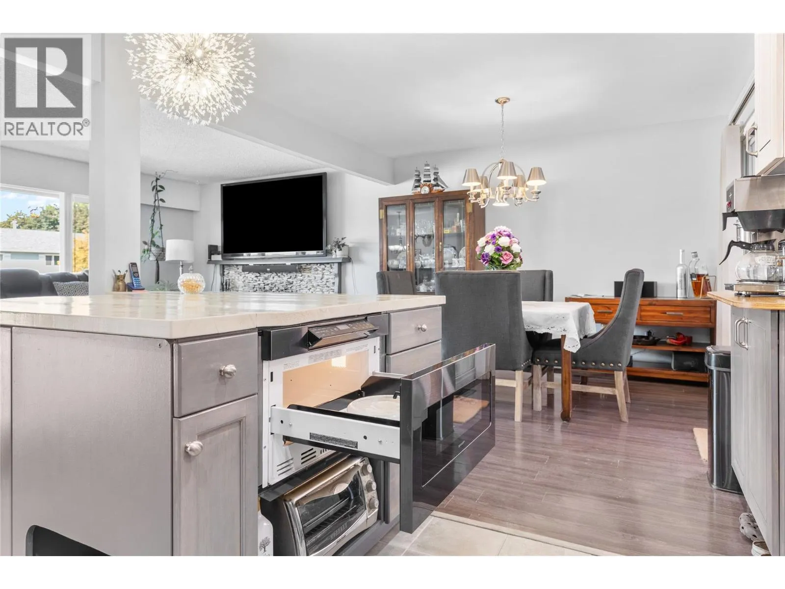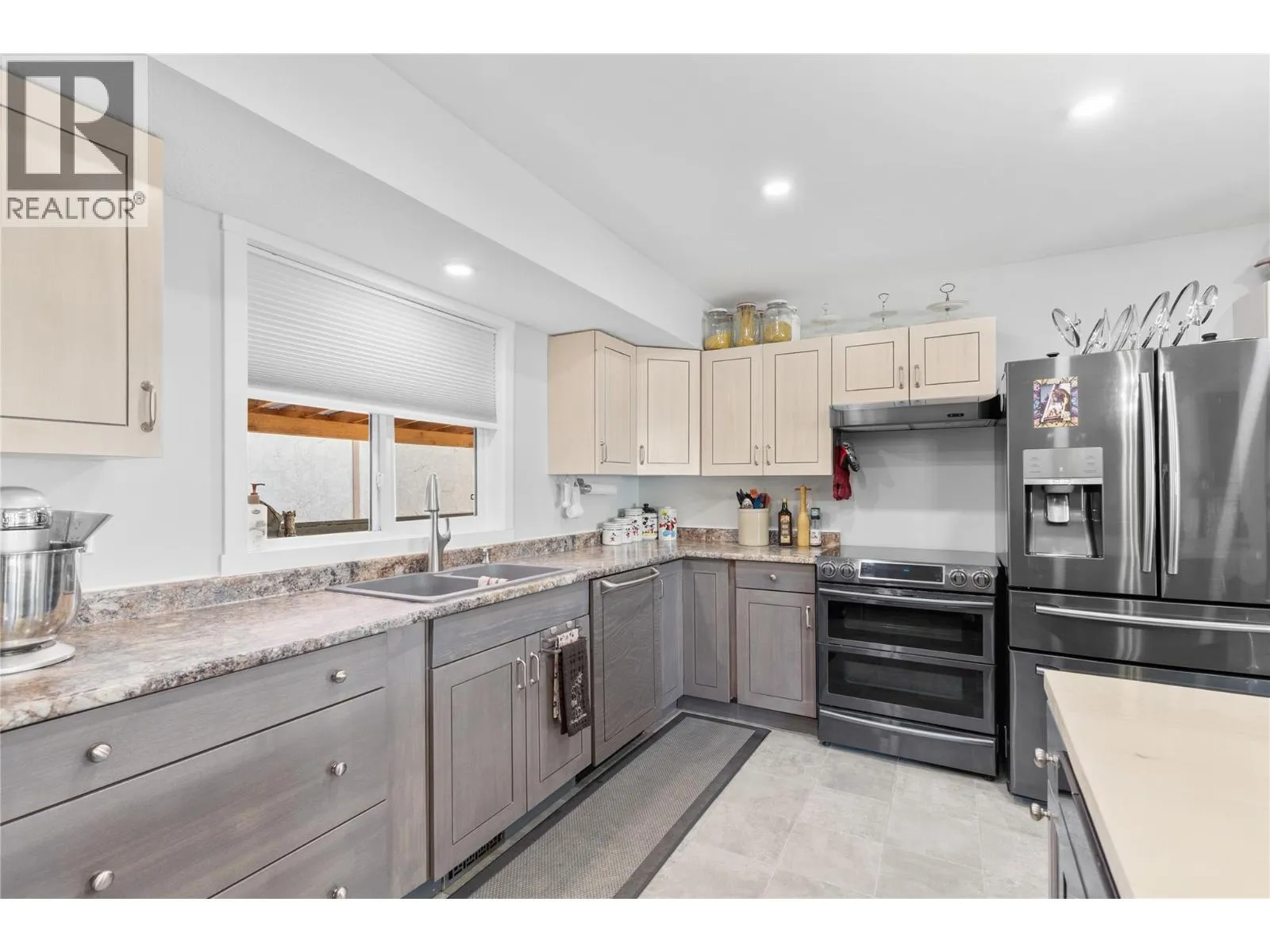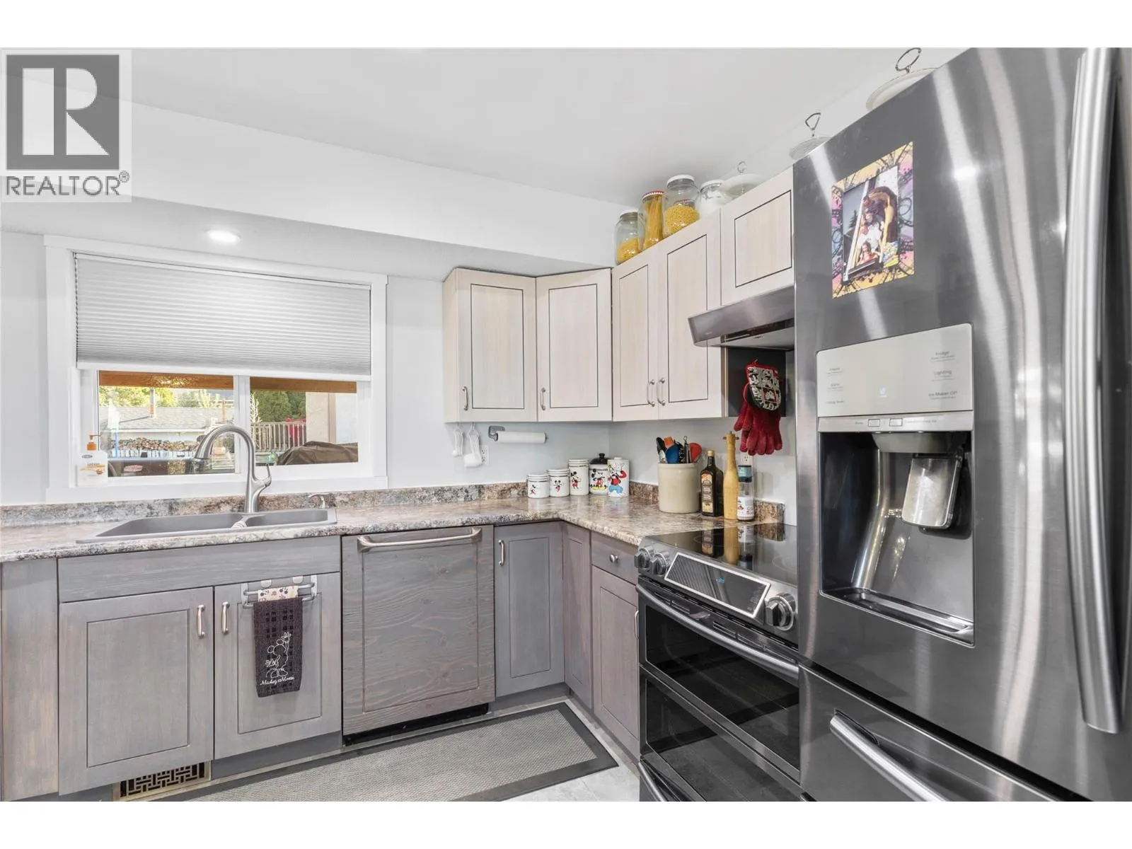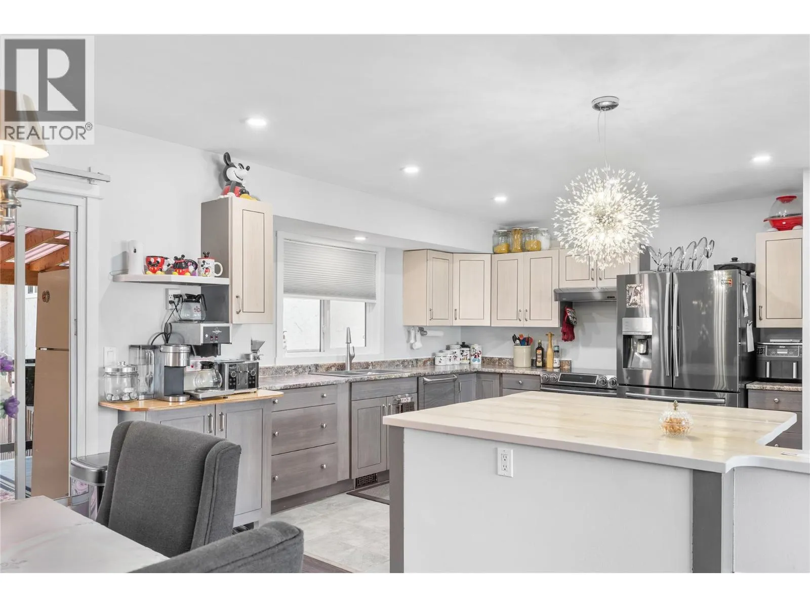 Welcome to this beautifully updated 5 bed, 3 bath home in Vernonâs desirable East Hill with 1 bed,1 bath in-law suite.With1900+ sq ft of living space, this property offers the perfect balance of style, comfort, & income potential. Main floor boasts a modern, open concept kitchen, dining, & living room, recently renovated with newer flooring, counters, appliances, & bathrooms. The kitchen features a large island with built in microwave, coffee bar & a pet friendly eating station. A cozy wood burning fireplace & oversized windows fill the living space with warmth & natural light. main level includes 3 beds, including a primary with a w/i closet & 4 pc ensuite. Downstairs is a 1 bedroom in-law suite with private entrance, its own laundry. Need more space? It can easily convert into a 2 bed in-suite while still leaving 3 beds upstairs, perfect as a mortgage helper or multi generational living option. Enjoy outdoor living on the spacious, covered wraparound & side decks, complete with a sunken hot tub, privacy walls, & even a retractable outdoor TV center for year round entertainment. Other highlights include a corner lot location, single garage, new 200 amp electrical service, & proximity to schools, shopping, transit, & downtown. This East Hill gem checks all the boxes for families & investors alike. Whether youâre a first-time buyer looking for a smart investment, a growing family, or someone wanting space for multi-generational living, this home is a fantastic opportunity. (id:27476)