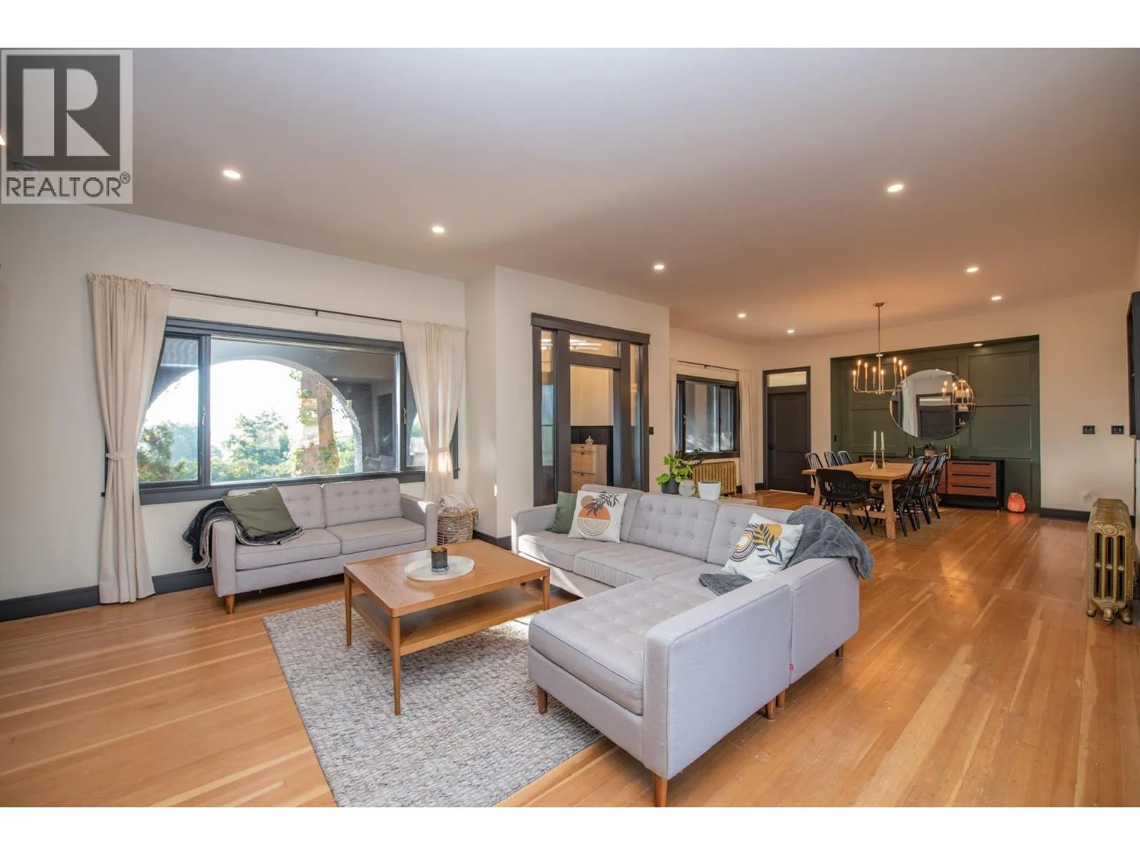 This 1912 heritage brick home sits proudly in Vernonâs coveted East Hill, blending timeless architecture with a full modern transformation. Offering 5 bedrooms and 4 bathrooms, the home features soaring vaulted ceilings, custom cabinetry, quartz counters, and premium appliances in a chefâs kitchen designed for gatherings. Bathrooms have been reimagined with spa-inspired finishes, heated tile, freestanding tub, and double vanities. The neatly finished basement provides abundant storage along with flexible space for a gym, home theatre, or additional recreation. Behind the character, the systems have been completely updated: new windows and doors, enhanced insulation, new 200amp electrical service and wire, new plumbing throughout, upgraded HVAC, and central air for year-round comfort. Original hardwoods pair seamlessly with new windows and doors, efficient mechanicals, and carefully chosen finishes. Iconic brick arches frame a wide veranda overlooking landscaped gardens, mature trees, and a spacious backyard with stonework and patio for entertaining. Just minutes from schools, parks, and Vernonâs downtown core, this property offers more than a homeâit delivers the East Hill lifestyle: character, community, and convenience in one of the Okanaganâs most desirable neighbourhoods. (id:27476)