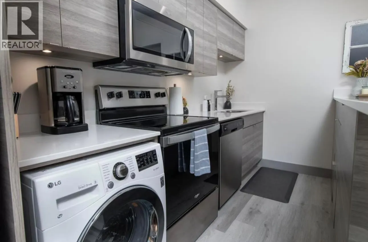 Vita Resort Residences is situated along the shores of Okanagan Lake in Vernon BC., features a gym, heated outdoor swimming pool, pickleball courts , community BBQ, and direct access to the beach. Unit is finished with quartz counters, stainless steel appliances, vinyl plank flooring, soft-close drawers, and much more. Everything you might need is included â furnishings, bedding, kitchen appliances, dinnerware and cutlery, kitchen utensils, and cleaning items. This unit also includes a storage lockers with built-in bike racks and one full sized parking stall. Currently rent is $1,478/Month, good ROI. (id:27476)