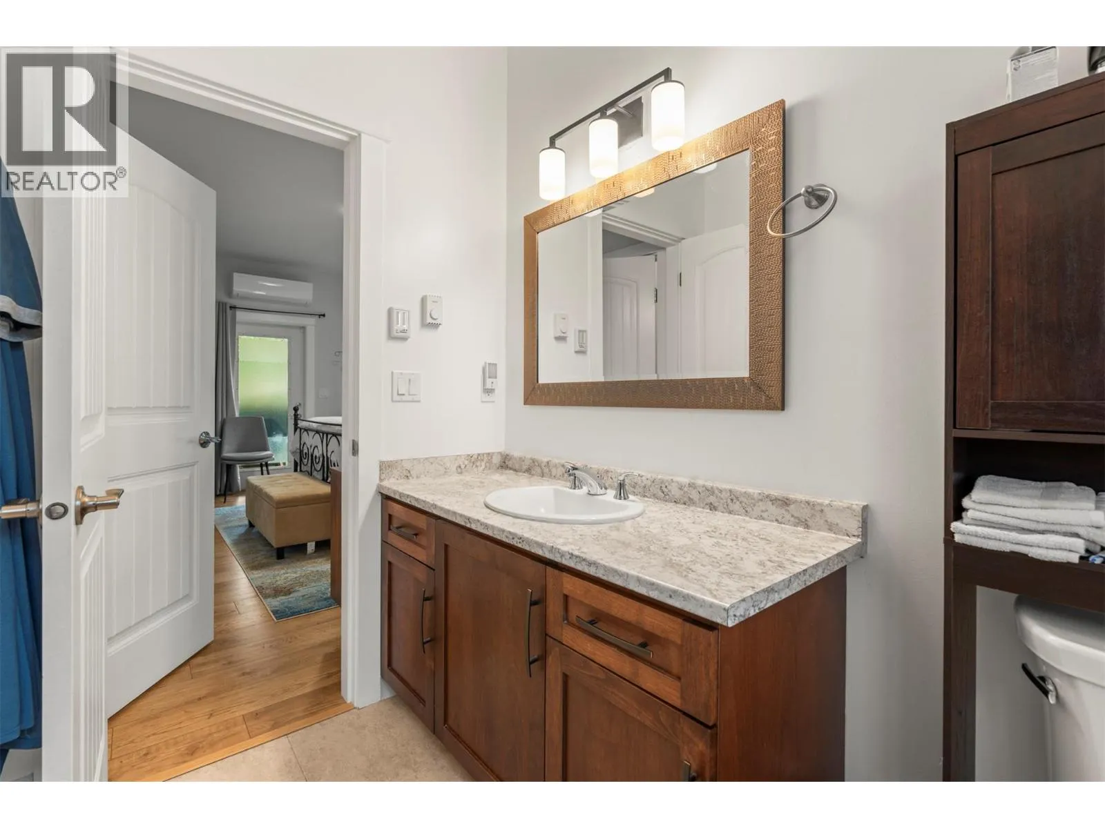 Welcome to your perfect downsizeâwhere quality, space, and lifestyle come together beautifully. This immaculate 2 bedroom (plus Office), 2 bathroom home offers 1,860 square feet of thoughtfully designed living space with a registered lease to 2056. The open-concept layout features easy care flooring throughout and flows effortlessly from room to room. The kitchen boasts plenty of counter space, modern finishes, and stainless steel appliancesâperfect for preparing meals and entertaining. The bright living room provides ample space to relax, while the master bedroom easily accommodates a king-sized bed and includes an en-suite for added privacy and convenience. Spacious enough to live comfortably, yet perfectly sized to keep life simpleâthis home strikes that ideal balance downsizers dream of. Clean, contemporary finishes give it that move-in-ready appeal, so you can settle in and start living your best lakeside life right away. Nestled in a quiet, highly desirable community where residents truly love calling home, you'll enjoy access to stunning Lake Okanagan waterfront, including a private beach and boat launch. Whether you're launching the boat on a summer morning or simply soaking in the beauty of Okanagan living, this location delivers the lifestyle you've been working toward. The lease runs until 2056 with a monthly lease fee of just $469, offering long-term peace of mind and exceptional value. This is downsizing done rightâless to manage, more to enjoy. Welcome home. (id:27476)
