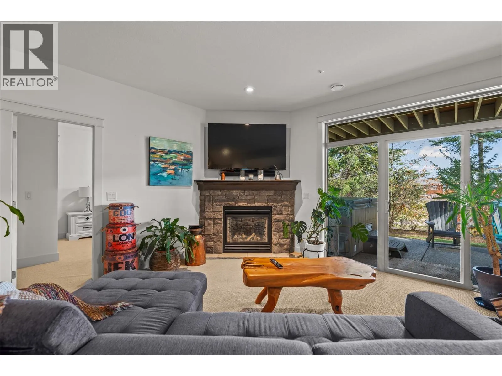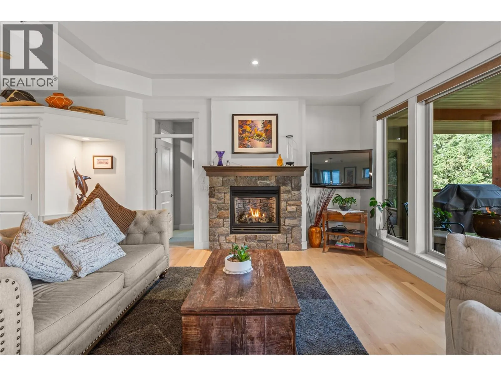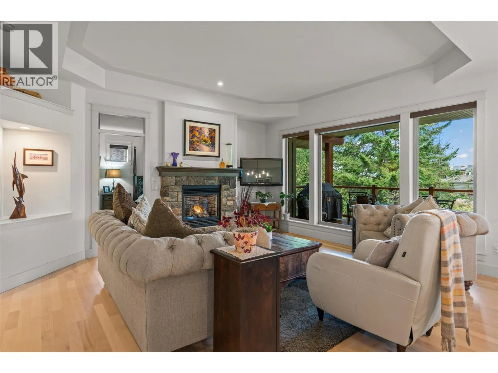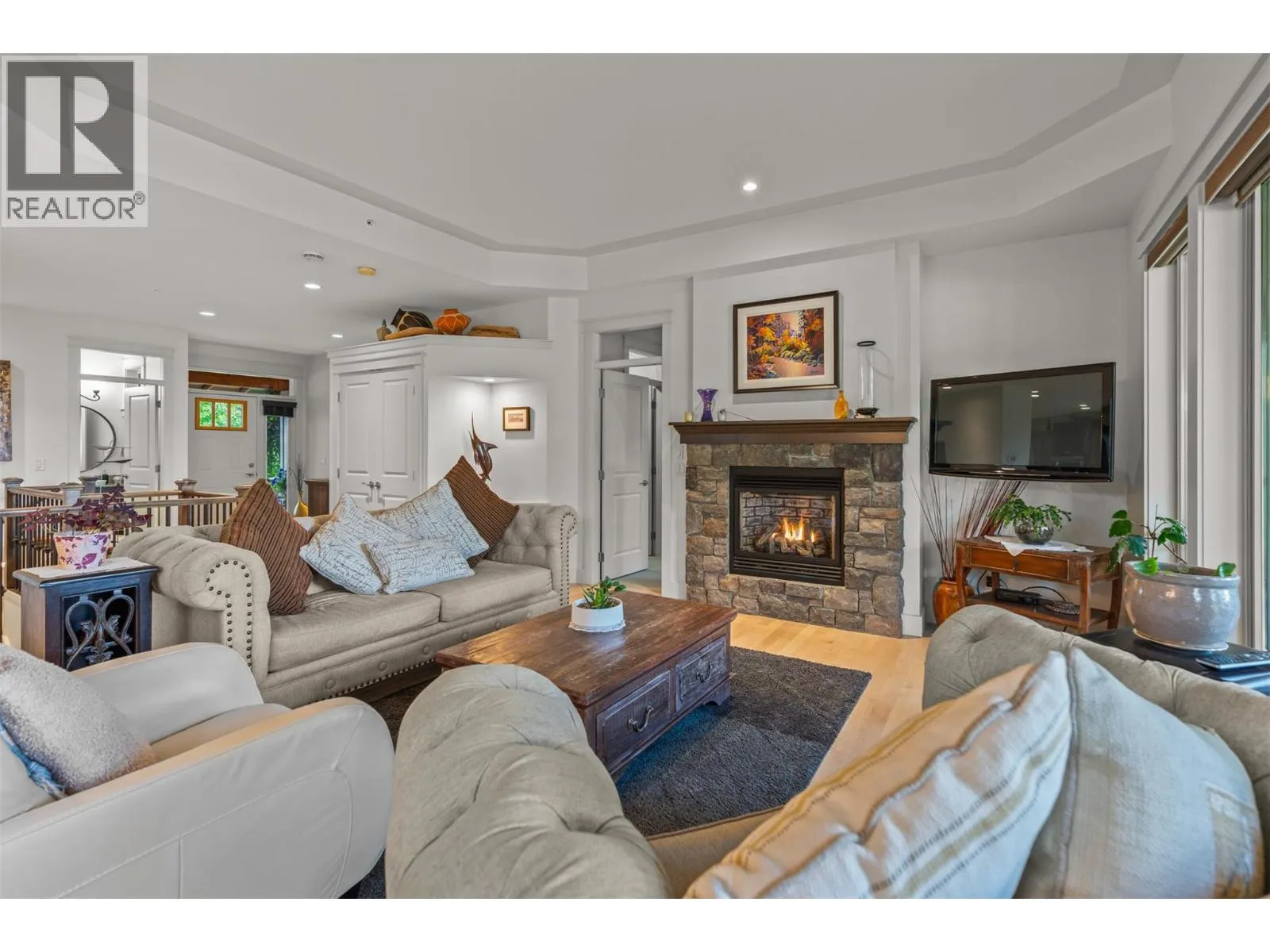 New Listing! Discover this beautifully appointed 3 bedroom plus den home tucked away on a peaceful cul-de-sac in the heart of Predator Ridge. Enjoy sweeping views of the 8th fairway and green from your expansive deck or patioâperfect for morning coffee or evening relaxation.Just steps from the clubhouse, fitness centre, and scenic trails, this residence offers the ultimate in resort-style living. Inside, youâll find generous room sizes, rich hardwood flooring in the living and dining areas, and heated tile in the bathrooms for year-round comfort. New Furnace, Air Conditioner, Hot Water Tank, Interior and Exterior freeshly painted. Move in Ready. The gourmet kitchen is a chefâs dream, featuring granite countertops, a spacious pantry, and sleek stainless steel appliances. Ideal for entertaining, the home boasts a large terrace room complete with fireplace and wet bar, plus a soundproofed theatre room with surround sound for movie nights.Forget the yard workâ your monthly fee covers landscaping and grants full access to the state-of-the-art Fitness Centre, including a full-length pool, hot tub, steam rooms, weight room, and yoga studio. Living at Predator Ridge means enjoying two championship golf courses, fitness centre with 25 m. lap poolmultiple dining options, a local market, tennis courts, and endless hiking, biking, and nordic trails. Youâre also within walking distance to the world-renowned Sparkling Hill Hotel & Spa, short drive to the lakes and 25 min. to YLW Airport. (id:27476)