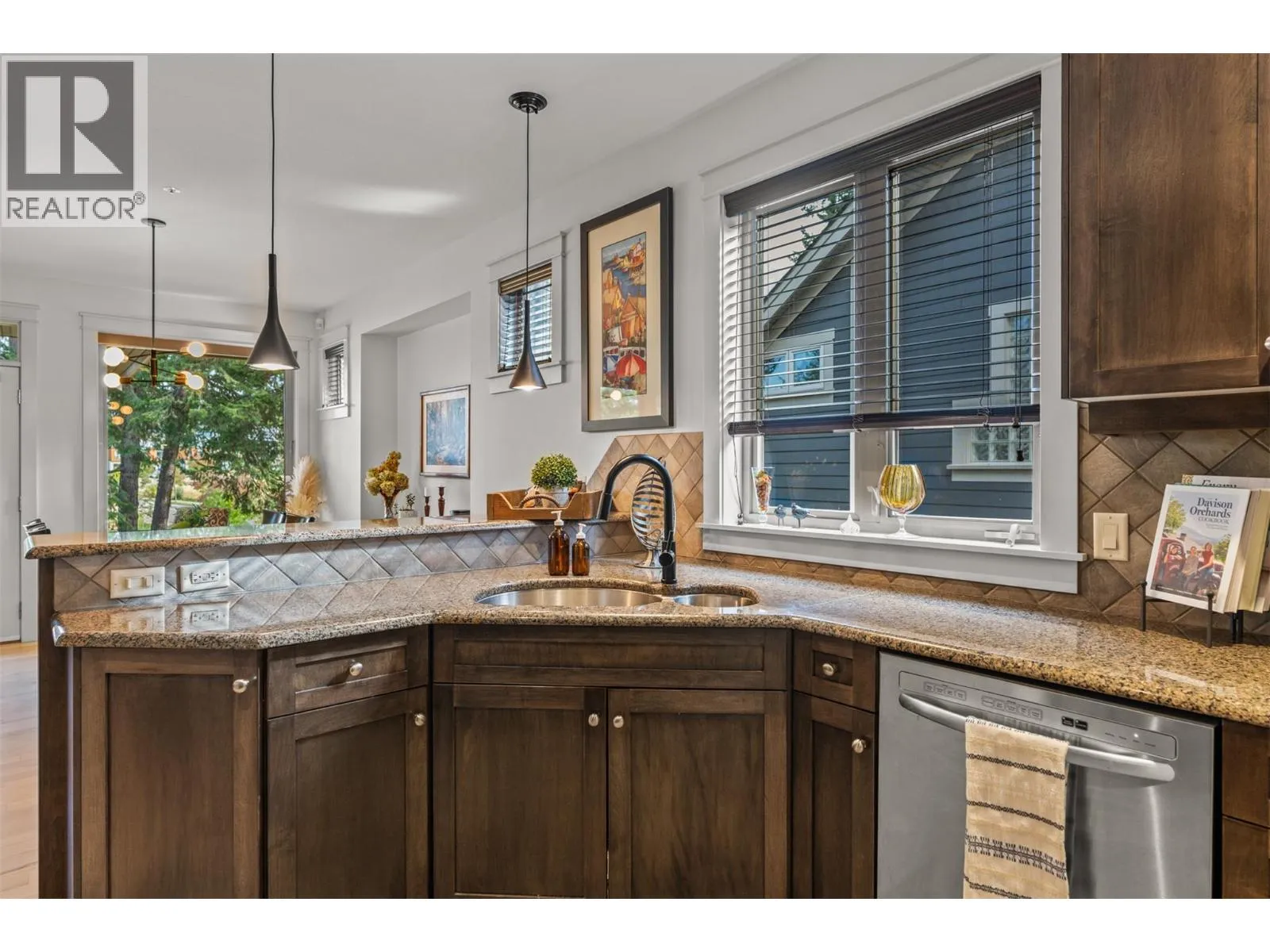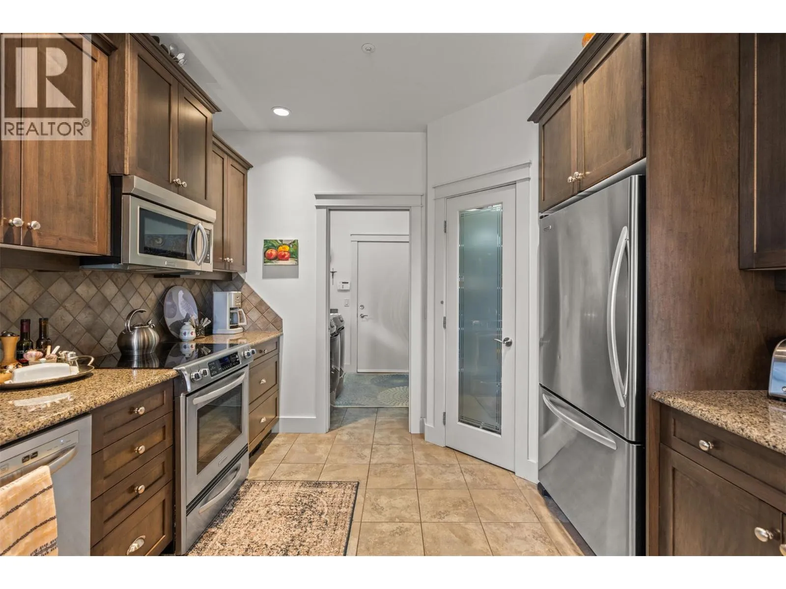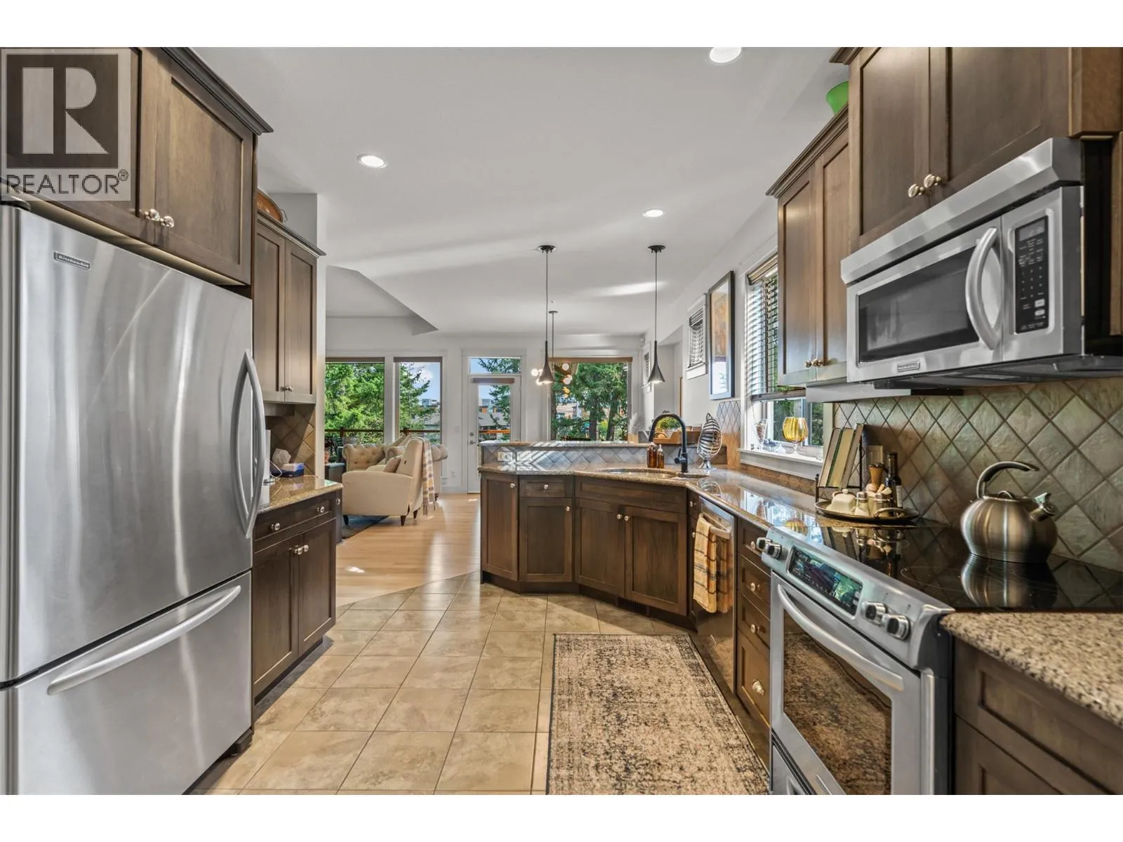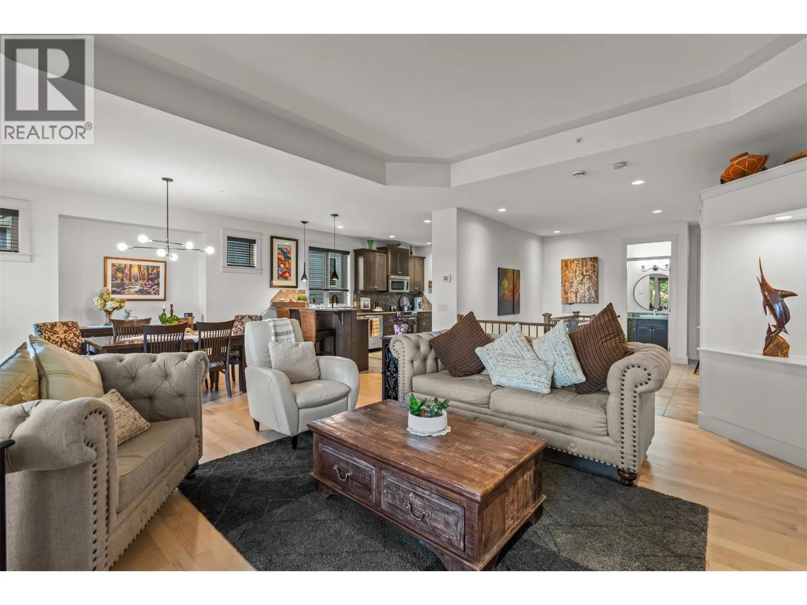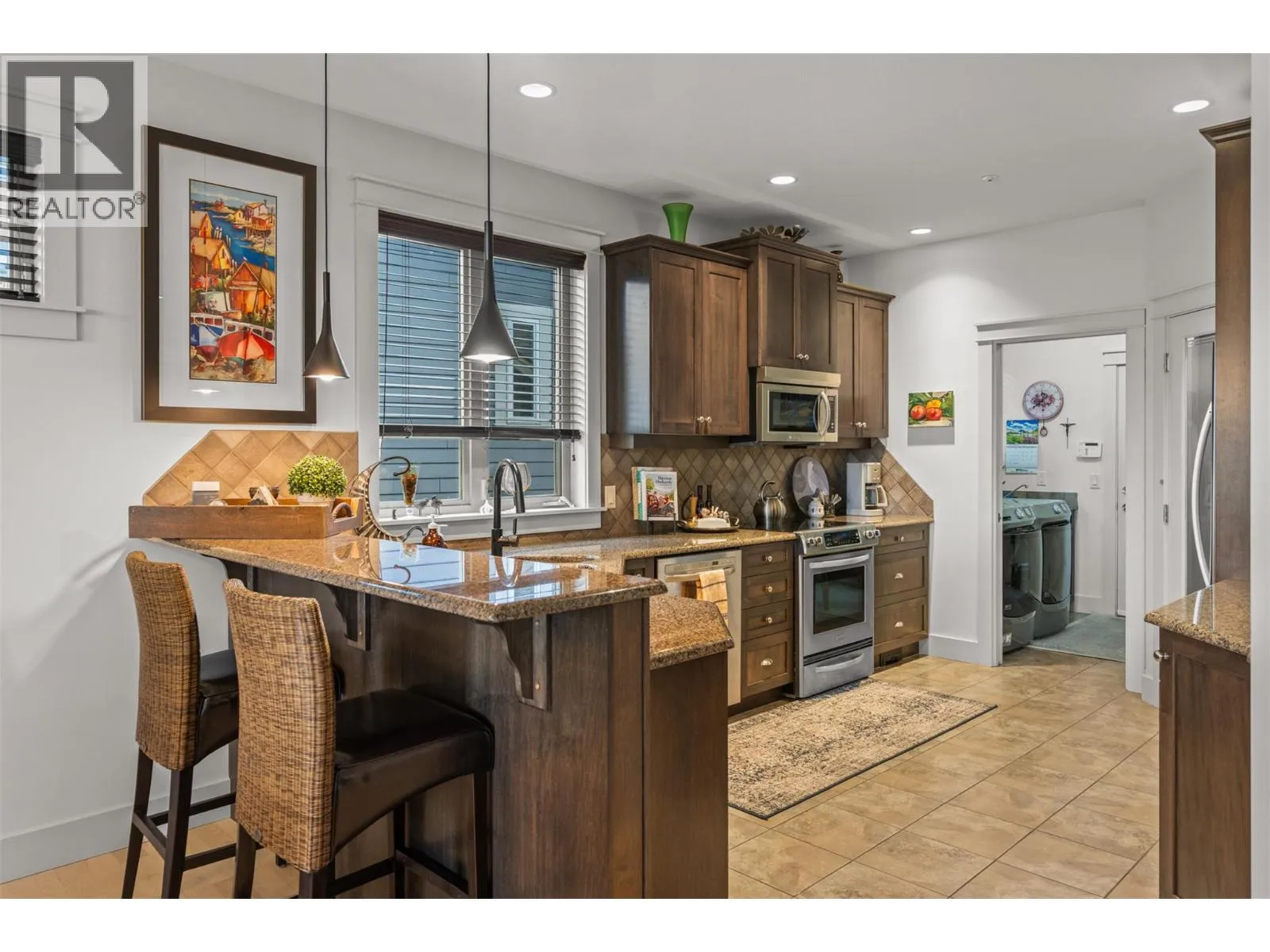 New Listing! Discover this beautifully appointed 3 bedroom plus den home tucked away on a peaceful cul-de-sac in the heart of Predator Ridge. Enjoy sweeping views of the 8th fairway and green from your expansive deck or patioâperfect for morning coffee or evening relaxation.Just steps from the clubhouse, fitness centre, and scenic trails, this residence offers the ultimate in resort-style living. Inside, youâll find generous room sizes, rich hardwood flooring in the living and dining areas, and heated tile in the bathrooms for year-round comfort. New Furnace, Air Conditioner, Hot Water Tank, Interior and Exterior freeshly painted. Move in Ready. The gourmet kitchen is a chefâs dream, featuring granite countertops, a spacious pantry, and sleek stainless steel appliances. Ideal for entertaining, the home boasts a large terrace room complete with fireplace and wet bar, plus a soundproofed theatre room with surround sound for movie nights.Forget the yard workâ your monthly fee covers landscaping and grants full access to the state-of-the-art Fitness Centre, including a full-length pool, hot tub, steam rooms, weight room, and yoga studio. Living at Predator Ridge means enjoying two championship golf courses, fitness centre with 25 m. lap poolmultiple dining options, a local market, tennis courts, and endless hiking, biking, and nordic trails. Youâre also within walking distance to the world-renowned Sparkling Hill Hotel & Spa, short drive to the lakes and 25 min. to YLW Airport. (id:27476)