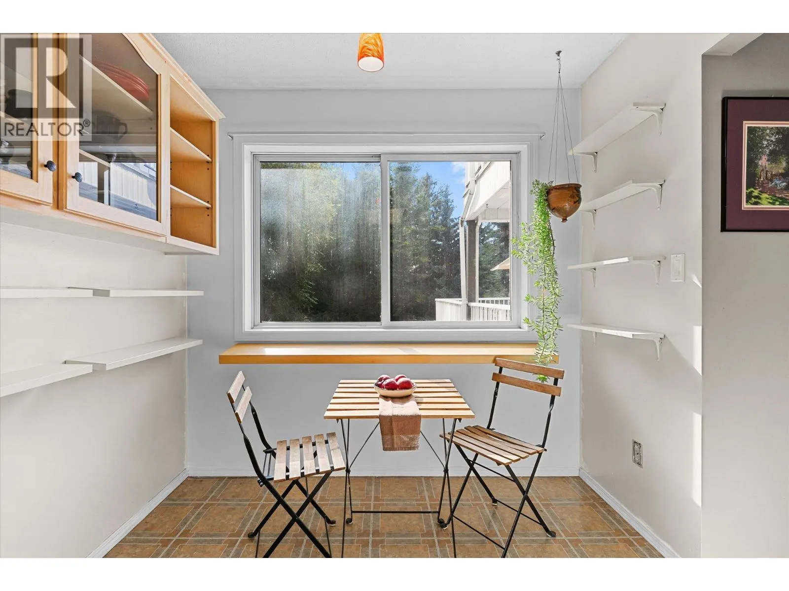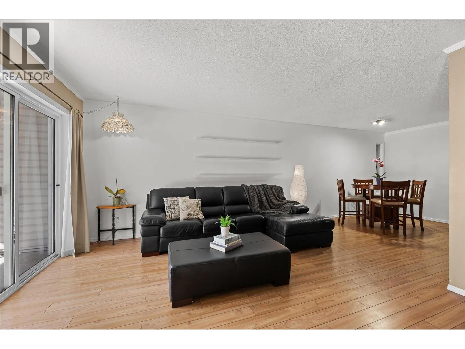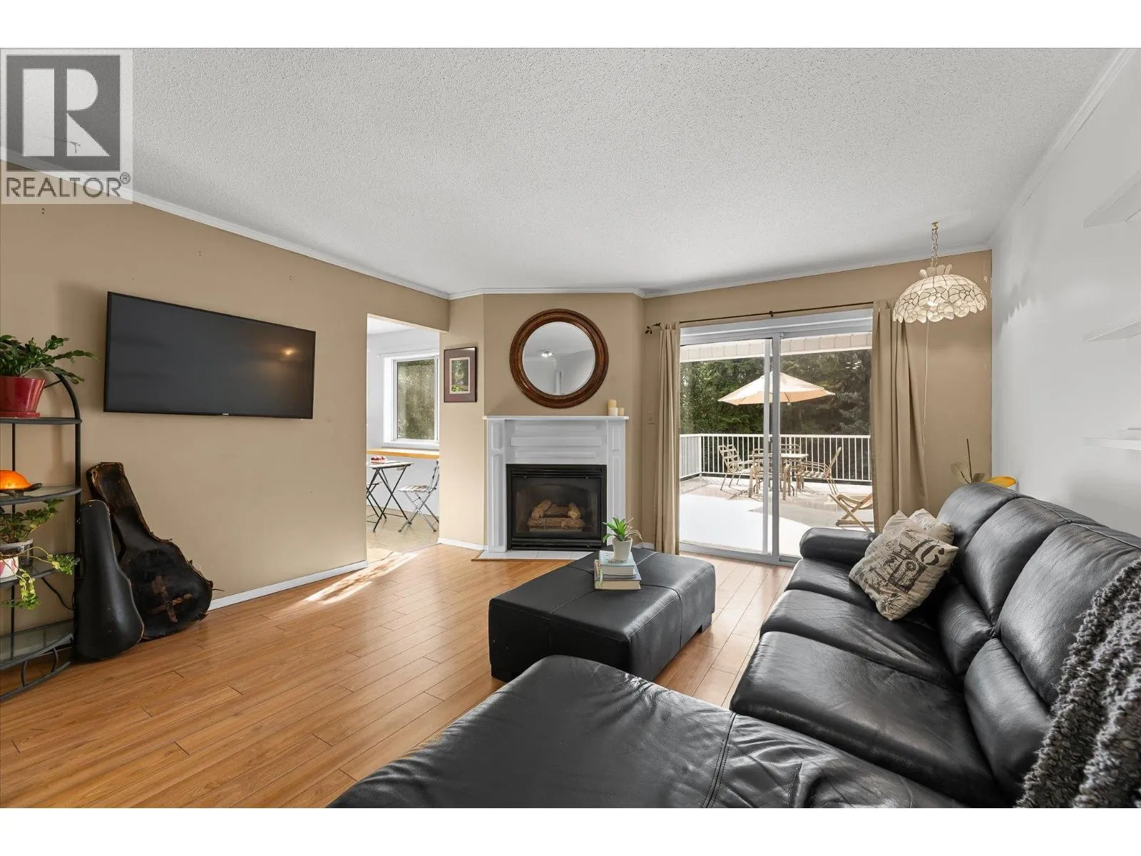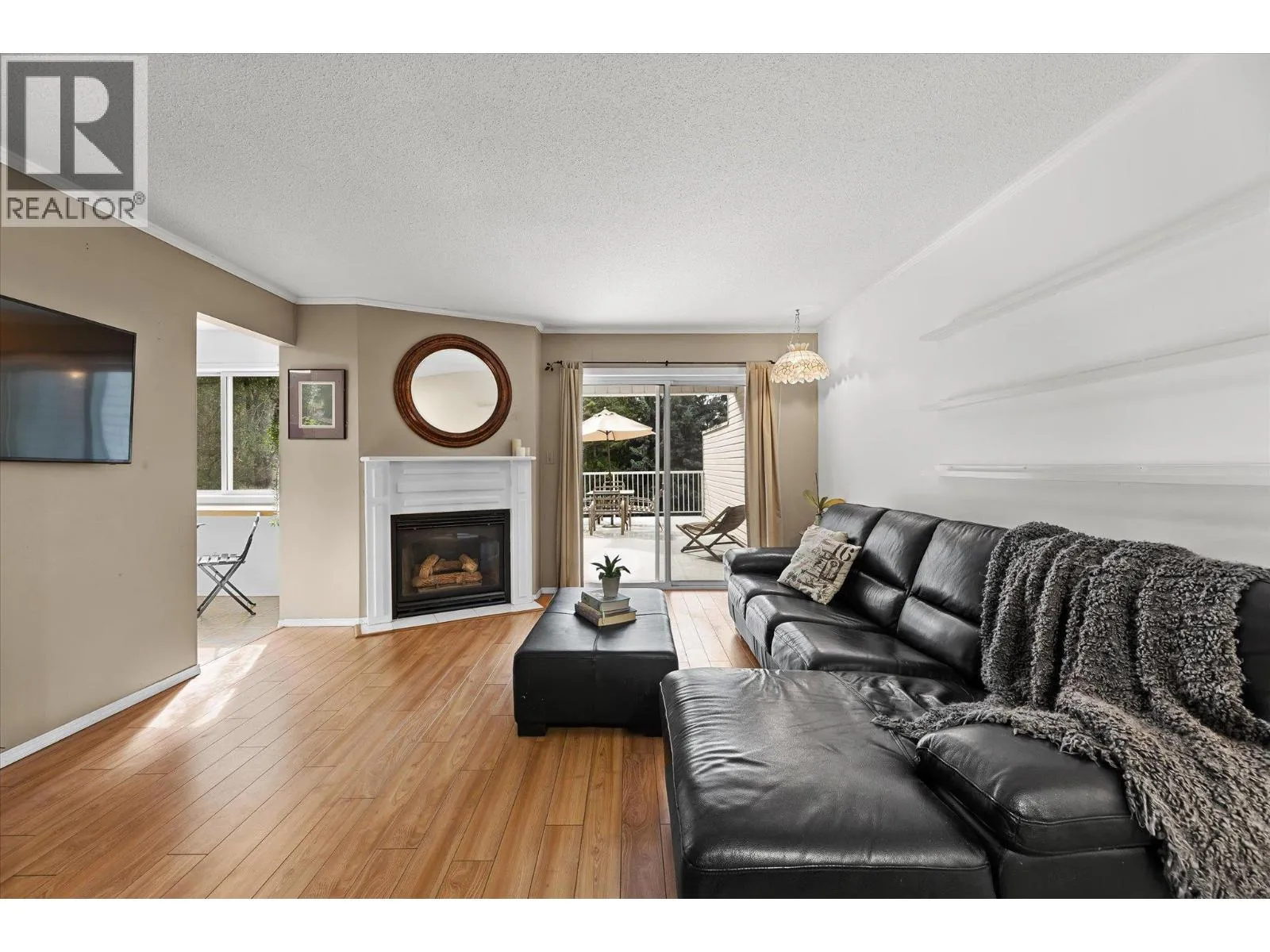 Welcome to this pleasant corner unit offering privacy, comfort, and light. Located conveniently in Vernon, near shops, parks, and various activities. This accessible corner unit features 2 bedrooms, 2 bathrooms, and is designed for easy living with no stairs. The functional kitchen opens to a bright dining space where natural sunlight pours in, while the cozy gas fireplace sets the scene for winter evenings. Step out to the large, partially covered balcony with a gas hook-up, perfect for year-round BBQs and quiet moments overlooking the forested view. Enjoy plenty of natural light throughout, a private garage, and the serenity of being surrounded by nature, all while being close to everyday conveniences. (id:27476)