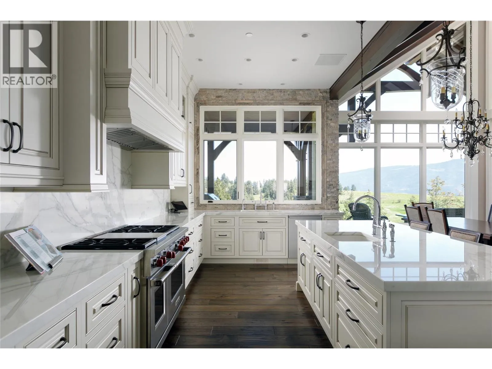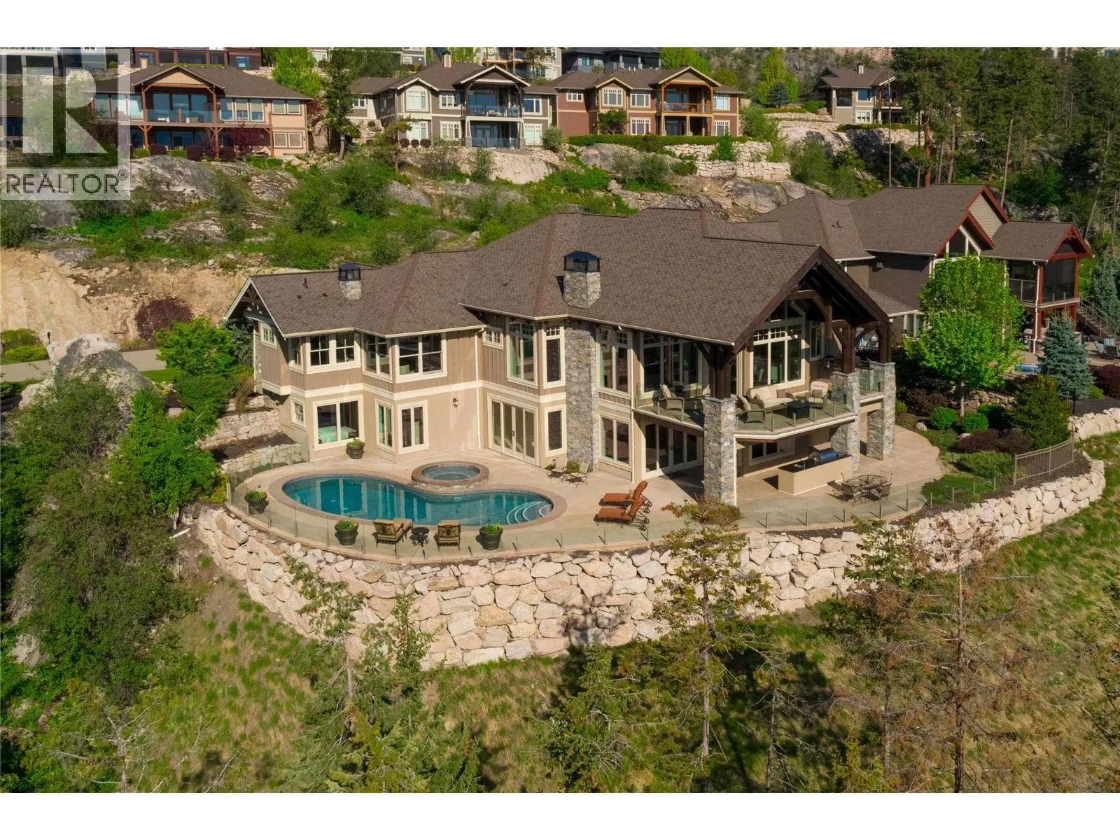 Your lifestyle needs that perfect home in a perfect setting! The Predator Ridge Community offers two world class championship golf courses, state-of-the-art fitness centre, tennis & pickleball courts, a vibrant village center and an endless trail system! This exceptional estate home sits at the end of a private cul-de-sac, offering expansive mountain and golf course views with breathtaking sunrises! Built by Heartwood Homes, it showcases exquisite craftsmanship with Calacatta marble, split-faced travertine, fir timber beams, hickory engineered hardwood, and intricate door and window details. The chef-inspired kitchen, featuring Miele, Wolf, and Sub-Zero appliances, flows into a sunlit great room with vaulted ceilings and a grand piano niche. The serene primary suite includes a see-through fireplace, marble slab shower with stone walls, and a custom walnut walk-in closet. The in-floor heated lower walk-out level is designed for entertainment, featuring a state-of-the-art theatre, games area, wet bar, and wine room. Outdoors, a Fujiwa porcelain-tiled saltwater pool, 10-foot hot tub, and multiple sitting areas with two exterior kitchens embrace the Okanagan lifestyle, while a cascading waterfall adds to the tranquility. A heated three-car garage completes this remarkable property. (id:27476)