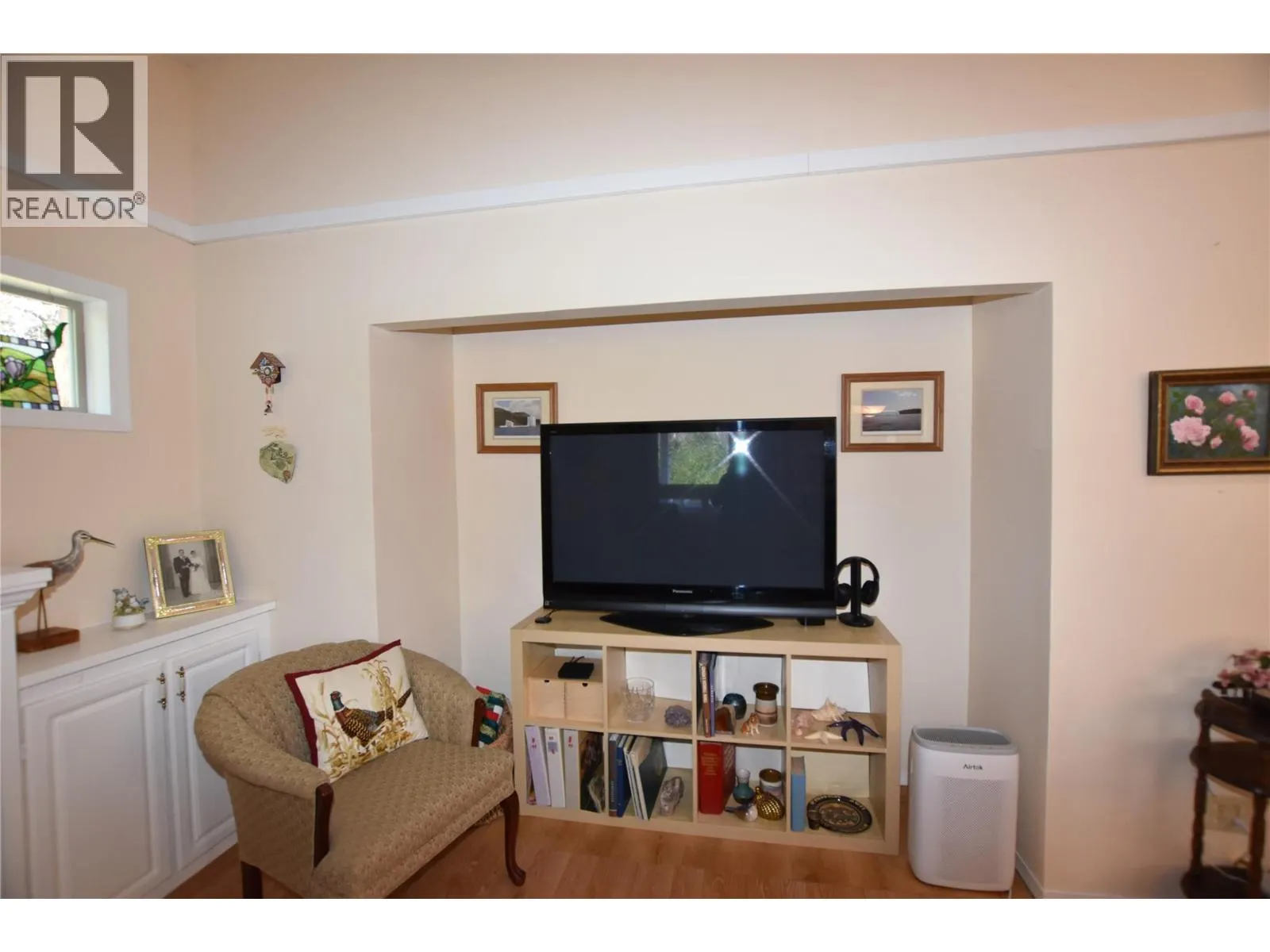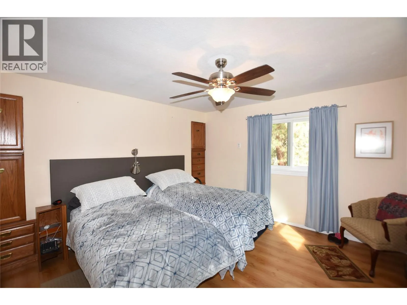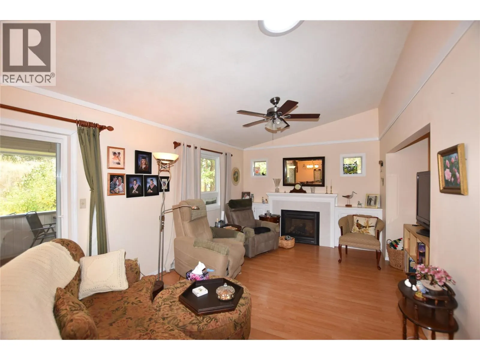 Welcome to 415 Hummingbird Avenue in Parker Cove â a cozy and inviting 2-bedroom, 3-bathroom home set on a flat, easy-care lot. The generous kitchen features classic oak cabinetry, while the spacious living room offers a warm and welcoming atmosphere with easy-care laminate flooring and a propane fireplace. From the dining area, sliding doors lead out to a 36â x 10â covered deck complete with a propane hookup for your BBQ â perfect for outdoor entertaining. The primary bedroom includes a full 4-piece ensuite, offering comfort and privacy. The lower level expands your living space with a second bedroom, a large family room, a craft/utility room with sink, ample storage, a cold room, a full 4-piece bath, and a sizeable workshop â ideal for hobbies or projects. Additional features include: Metal roof Fenced yard Radon mitigation system PEX plumbing Propane furnace (2018) Hot water tank (~4 years old) Air conditioning (2021) Nearly all new windows The annual lease is $3,455.83, registered until 2043. If youâve been searching for an affordable opportunity to enjoy the Okanagan lifestyle near the lake, this wonderful home is a must-see! (id:27476)