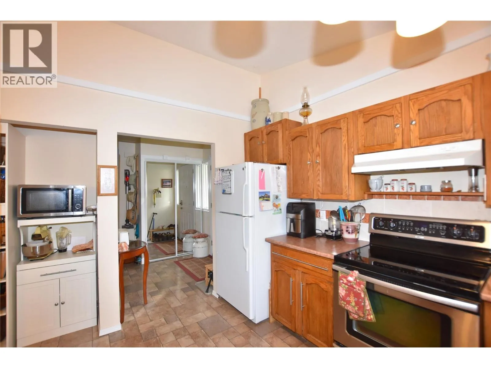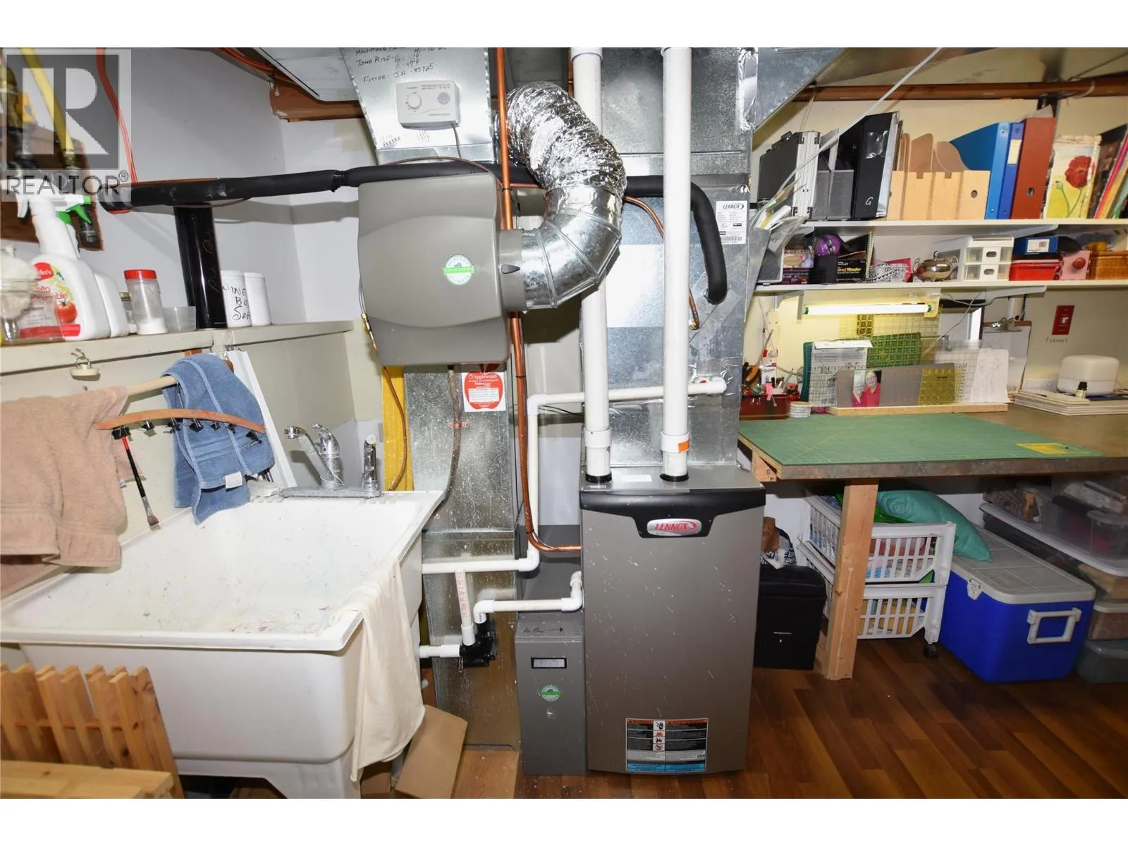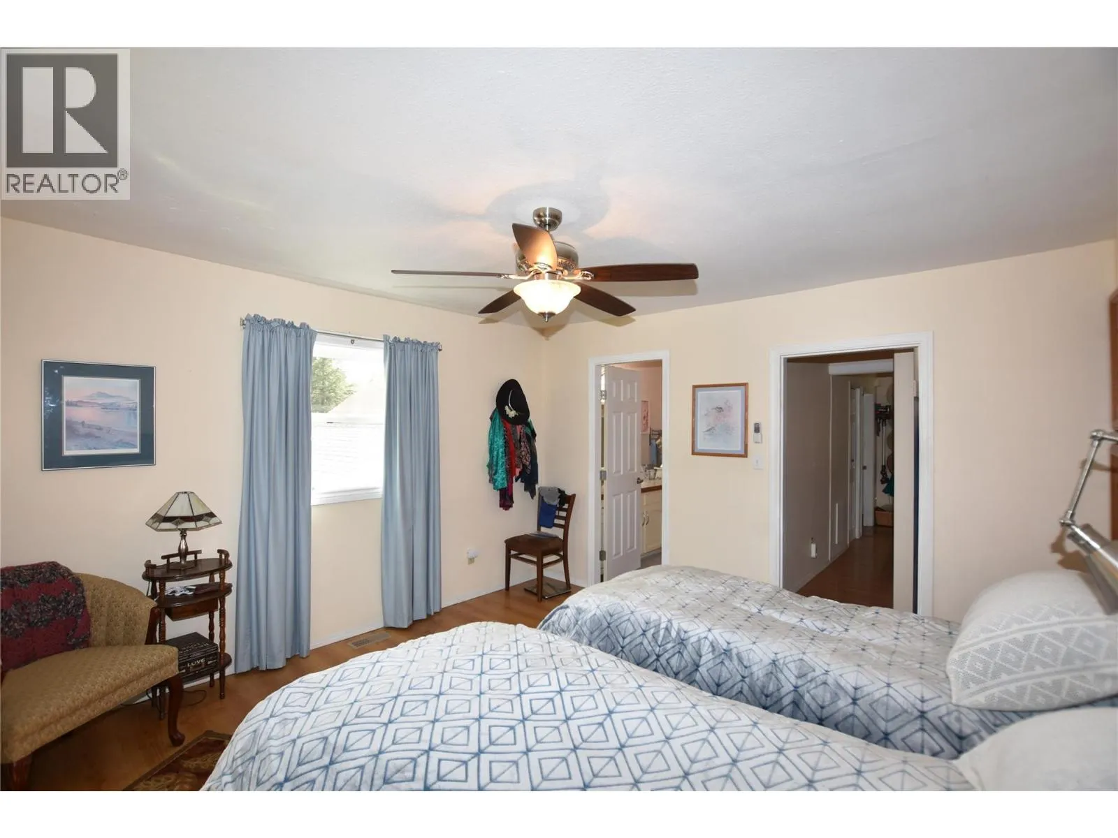 Welcome to 415 Hummingbird Avenue in Parker Cove â a cozy and inviting 2-bedroom, 3-bathroom home set on a flat, easy-care lot. The generous kitchen features classic oak cabinetry, while the spacious living room offers a warm and welcoming atmosphere with easy-care laminate flooring and a propane fireplace. From the dining area, sliding doors lead out to a 36â x 10â covered deck complete with a propane hookup for your BBQ â perfect for outdoor entertaining. The primary bedroom includes a full 4-piece ensuite, offering comfort and privacy. The lower level expands your living space with a second bedroom, a large family room, a craft/utility room with sink, ample storage, a cold room, a full 4-piece bath, and a sizeable workshop â ideal for hobbies or projects. Additional features include: Metal roof Fenced yard Radon mitigation system PEX plumbing Propane furnace (2018) Hot water tank (~4 years old) Air conditioning (2021) Nearly all new windows The annual lease is $3,455.83, registered until 2043. If youâve been searching for an affordable opportunity to enjoy the Okanagan lifestyle near the lake, this wonderful home is a must-see! (id:27476)