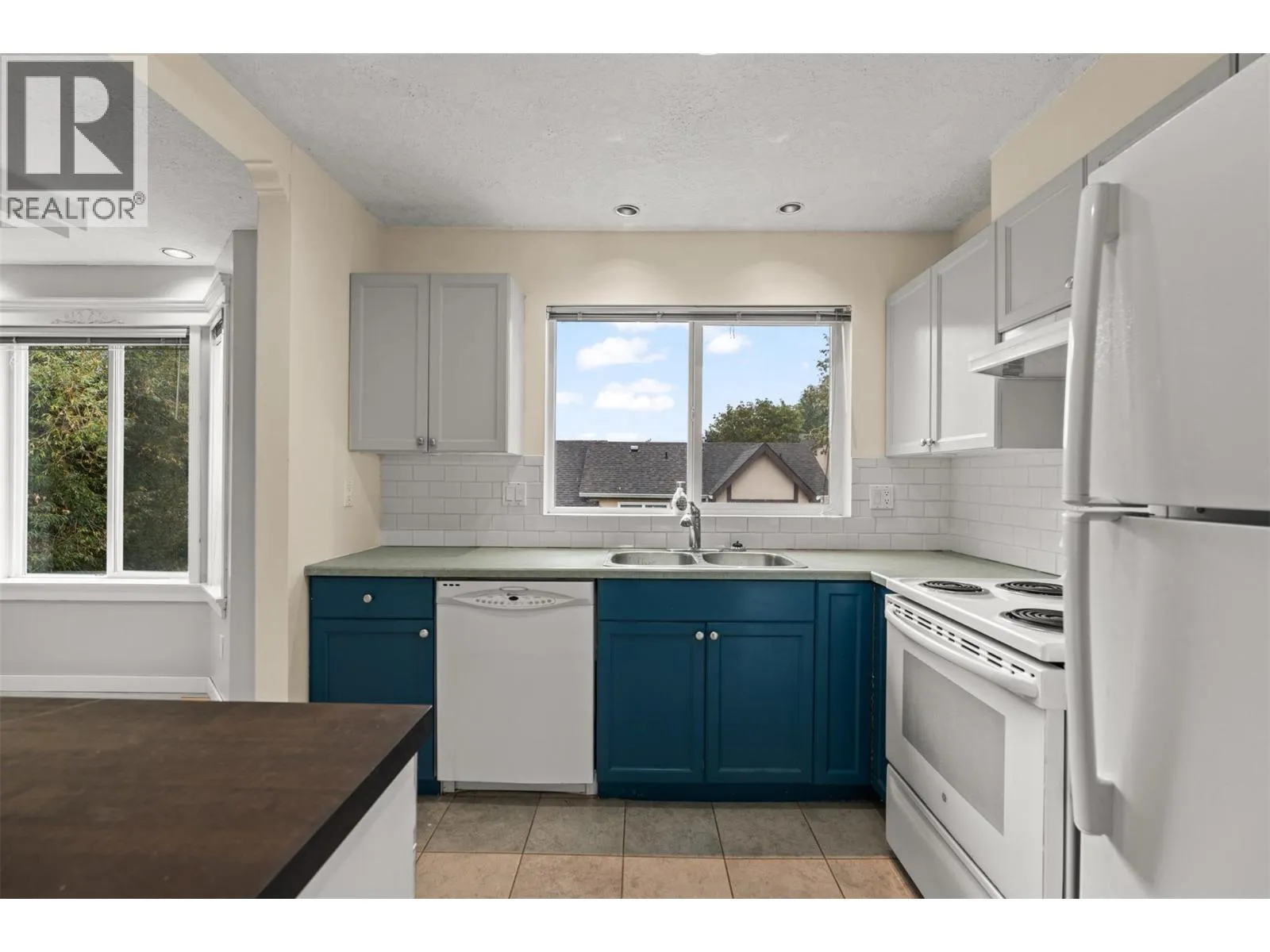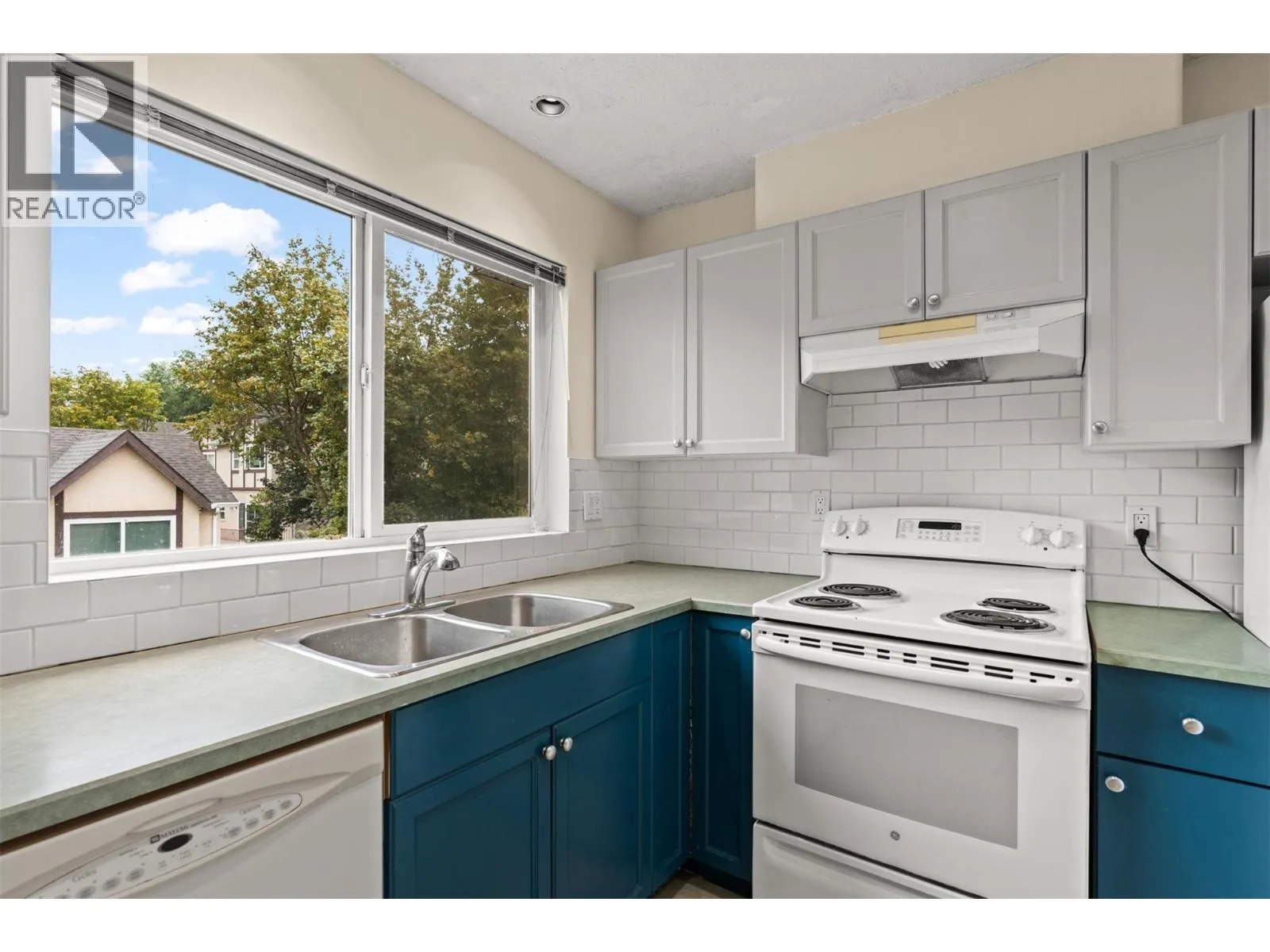 Bright corner townhouse near Kal Beach! Welcome to this 2-bedroom, 2-bathroom top-floor townhouse offering comfort, convenience, and in great condition. This corner unit features additional windows and an inviting floor plan with new paint and new flooring, ready for you to move right in. Upon entry youâre greeted by a spacious landing area for east facing outdoor covered seating, once inside, it leads into the first bedroom and a full shared bathroom. The primary bedroom offers a private ensuite and peaceful ambiance. The open kitchen, dining, and living areas are perfect for entertaining, highlighted by west-facing windows, crown moulding, and a skylight that fills the space with warmth and light. Step out to your private patio and unwind with an afternoon book and warm drink while enjoying nature. This home includes covered parking (with additional parking available) and is vacant for quick possession. Enjoy a relaxed lifestyle close to golfing, public transportation, and a short distance to Kal Beach and the Rail Trail- the perfect spot for four-season living. Bring your pets, (one cat or one dog with no size restriction). Ideal for first-time buyers, down-sizers, or investors alike. Donât miss your chance to own this clean, move-in-ready home in a desirable location! (id:27476)