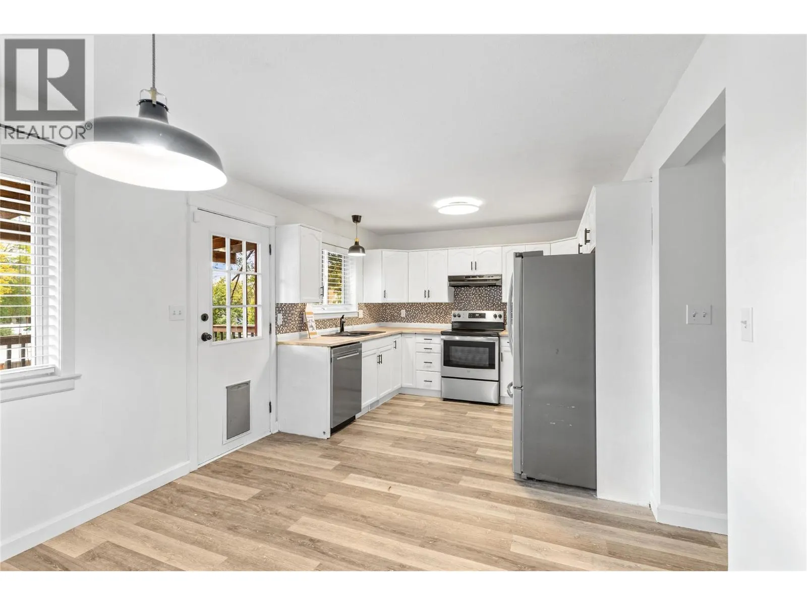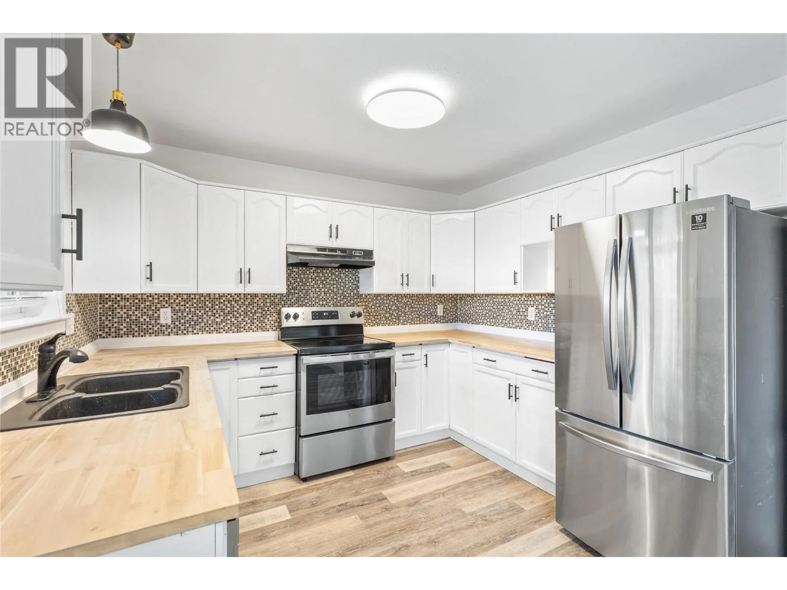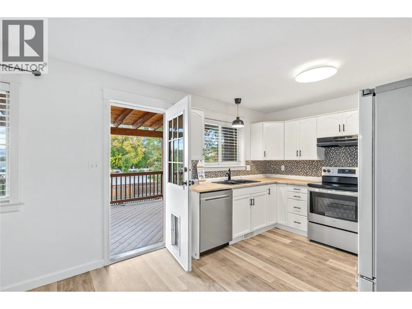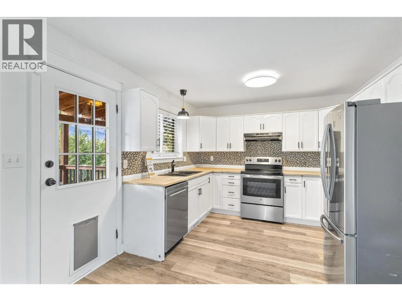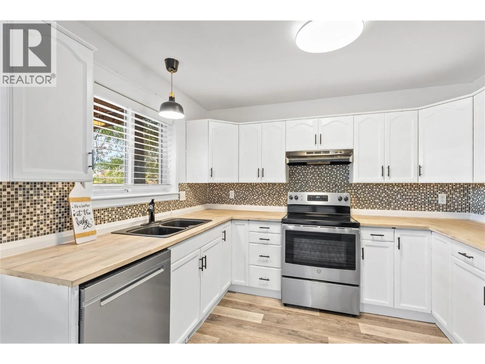 Welcome to Lakeshore Village â a highly desirable community just one street from the sparkling waters of Okanagan Lake. This spacious three-level standalone home offers over 1700 sq. ft. of comfortable living space with 5 bedrooms and 3.5 bathrooms, perfectly suited for families or anyone seeking extra space. Set on a quiet cul-de-sac surrounded by green space, this home is steps from Marshall Fields, Lakers Park Disc Golf Course, and the shores of Okanagan Lake. Combining functionality, comfort, and location, this Lakeshore Village gem offers the best of Vernonâs relaxed lake lifestyle with a welcoming, community feel. Thoughtfully updated and well cared for, the home features a new roof (2023), replaced Poly-B plumbing, fresh interior paint, new front steps, a newer A/C unit, updated flooring, refreshed kitchen counters, and modern lighting throughout. The main floor offers an inviting flow between the kitchen, dining, and living areasâideal for gatherings and everyday living. Upstairs, generous bedrooms provide plenty of space for family or guests, while the fully finished lower level with a separate entrance opens the door to multiple possibilities, including an in-law suite, home office, or rental opportunity. The single-bay garage adds extra storage and convenience. Enjoy the charm of the covered front porchâperfect for morning coffee or evening visits with neighborsâand unwind on the covered back deck overlooking the peaceful yard. (id:27476)