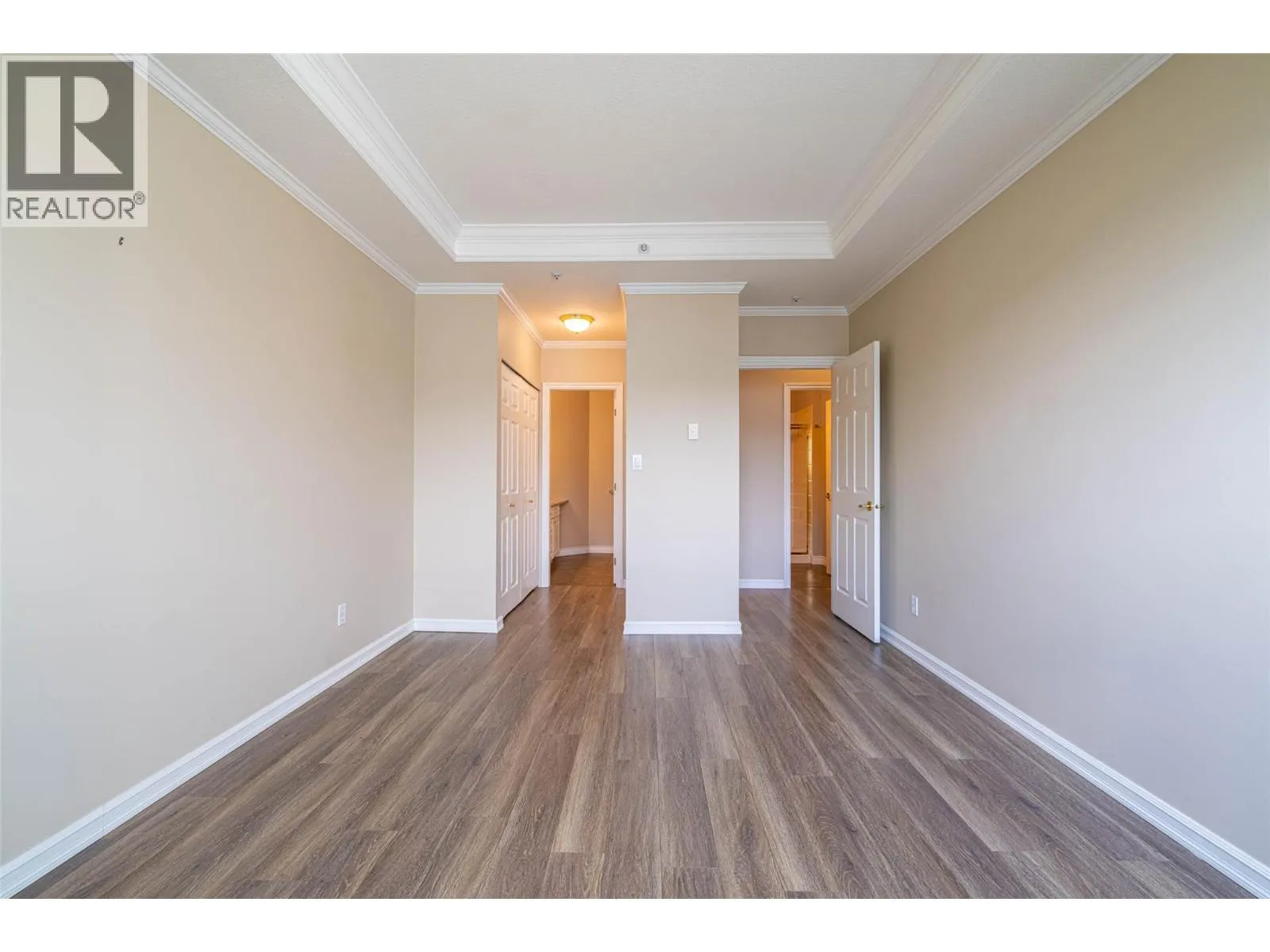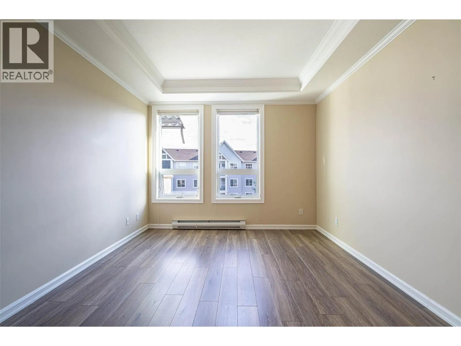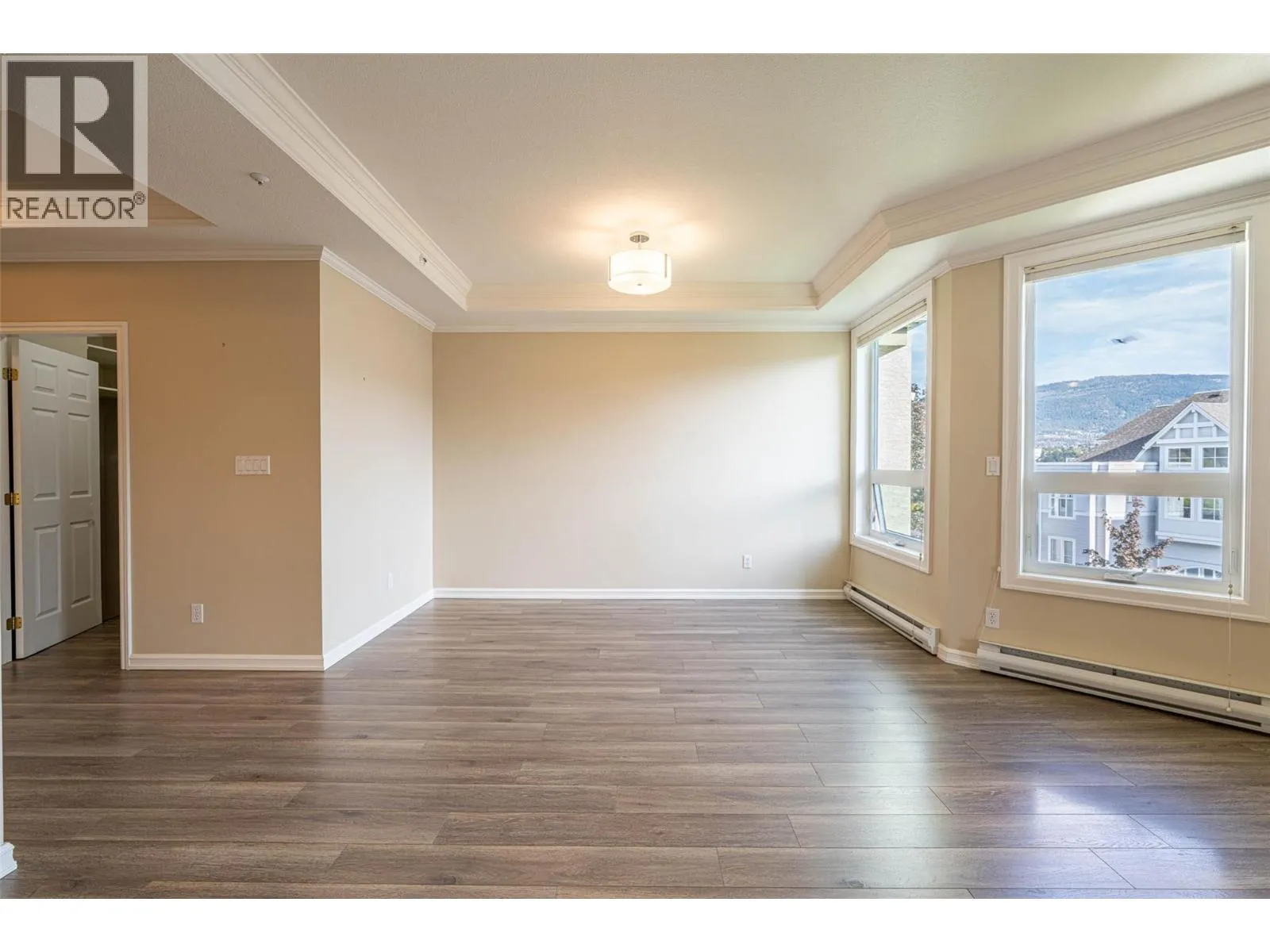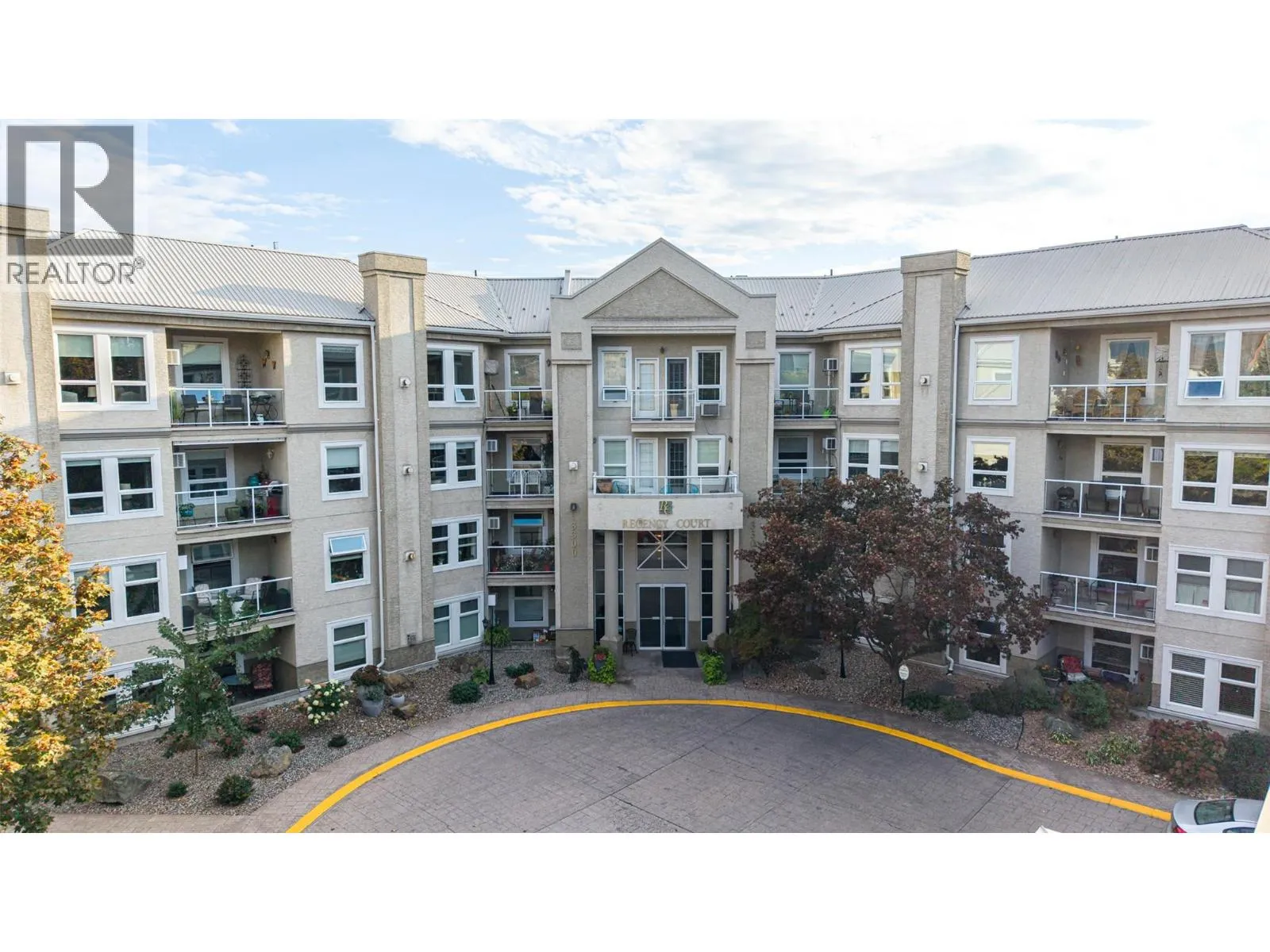 Rare offering, 4th floor 2Bedroom 2bathroom fully renovated unit with a gorgeous east and south views. Don't miss out, these units don't come up often. Top floor unit with nine foot ceilings, 1,102 sq ft plus an approx.100 sq ft covered balcony. Dream kitchen with soft close, white, custom cabinets, high end stainless steel appliances, open concept kitchen /living room. Cozy gas fireplace, heats most of the apartment, gas is included in the strata fees. Great location, on a quiet street, with transit at the door, and only minutes walking to downtown Vernon shops and restaurants. This is the unit you have been waiting for, in one of the most desirable buildings on Centennial Dr. ""Regency Court"" is a 55+, upscale, 4 storey, 65 unit apartment condo complex, with secure underground parking, built in 1994, on a quiet, desirable street, that overlooks downtown Vernon. The building offers independent living for 55+, while providing beautiful common spaces manicured grounds that invite community and socializing. There is a library on the second floor overlooking the inviting open lobby entrance. On the parkade level there is a large community meeting room that opens to a beautiful terrace with BBQ 's and common facilities , there is also an exercise room, and storage facilities. Look no further, find your luxurious and practical retirement right here in Vernon. (id:27476)