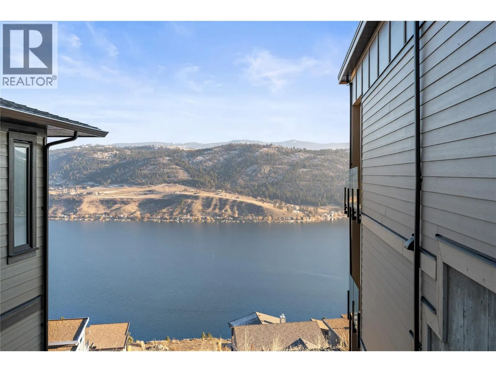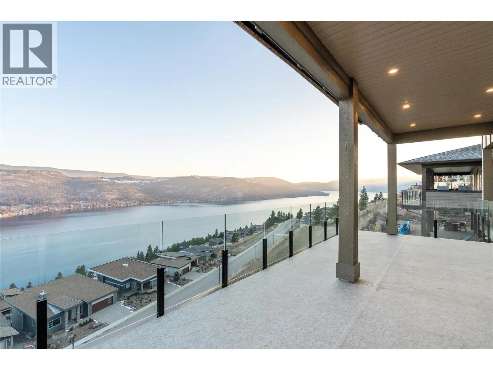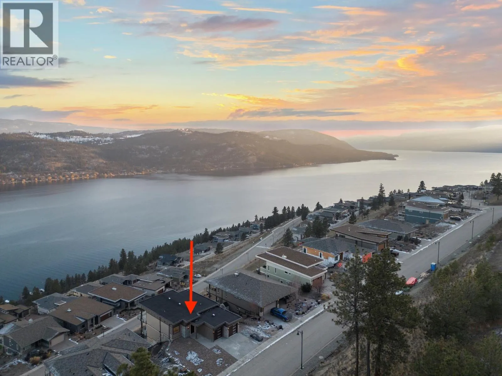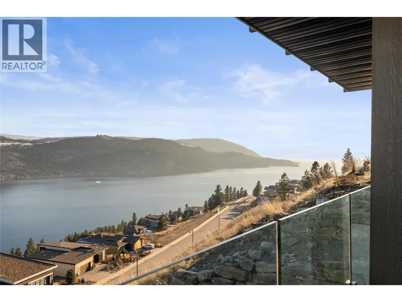 Best unobstructed lake views available on the street! All kitchen appliances plus the washer/ dryer will be installed & are included. Be the first owner to indulge in this exquisite new build in the desirable Adventure Bay! The spectacular three-storey home was designed for the ultimate appreciation of its awe-inspiring, Okanagan Lake views and incredible surroundings from every level. Enter onto the top floor, with gleaming flooring in the open-concept kitchen, living, and dining areas, accented by a contemporary electric fireplace framed by built-in cabinetry in the living room. The adjacent gourmet kitchen boasts rich wood and white shaker cabinetry, gorgeous stone countertops, and a huge centre island. Elsewhere on the main floor, the master bedroom suite awaits with a walk-in closet and spectacular ensuite bathroom.Accessible via the master bedroom and living area, a covered patio is wonderful for al fresco dining. Three additional bedrooms & a den exist between the main and lower levels, plus another 3 ½ bathrooms, all with equally lovely finishes. A second balcony off the mid level floor can be accessed by both bedrooms. On the lowest level, a bonus living space is ideal for entertaining, with access to the yard and patio. The exclusiveAdventure Bay community features a private beach, tennis courts, plus a multitude of hiking trails & lookouts! Come see everything this incredible property can offer you today! (id:27476)