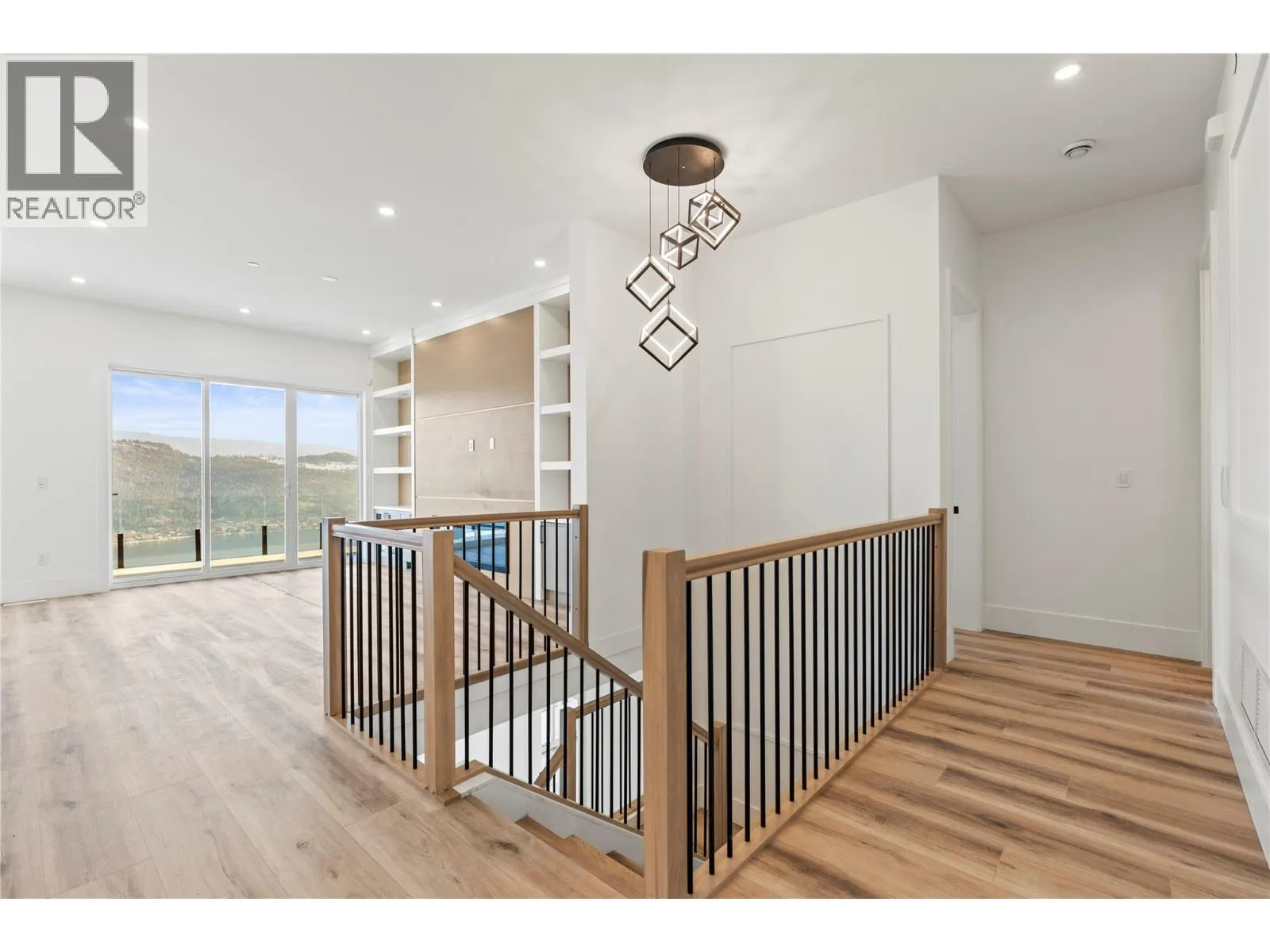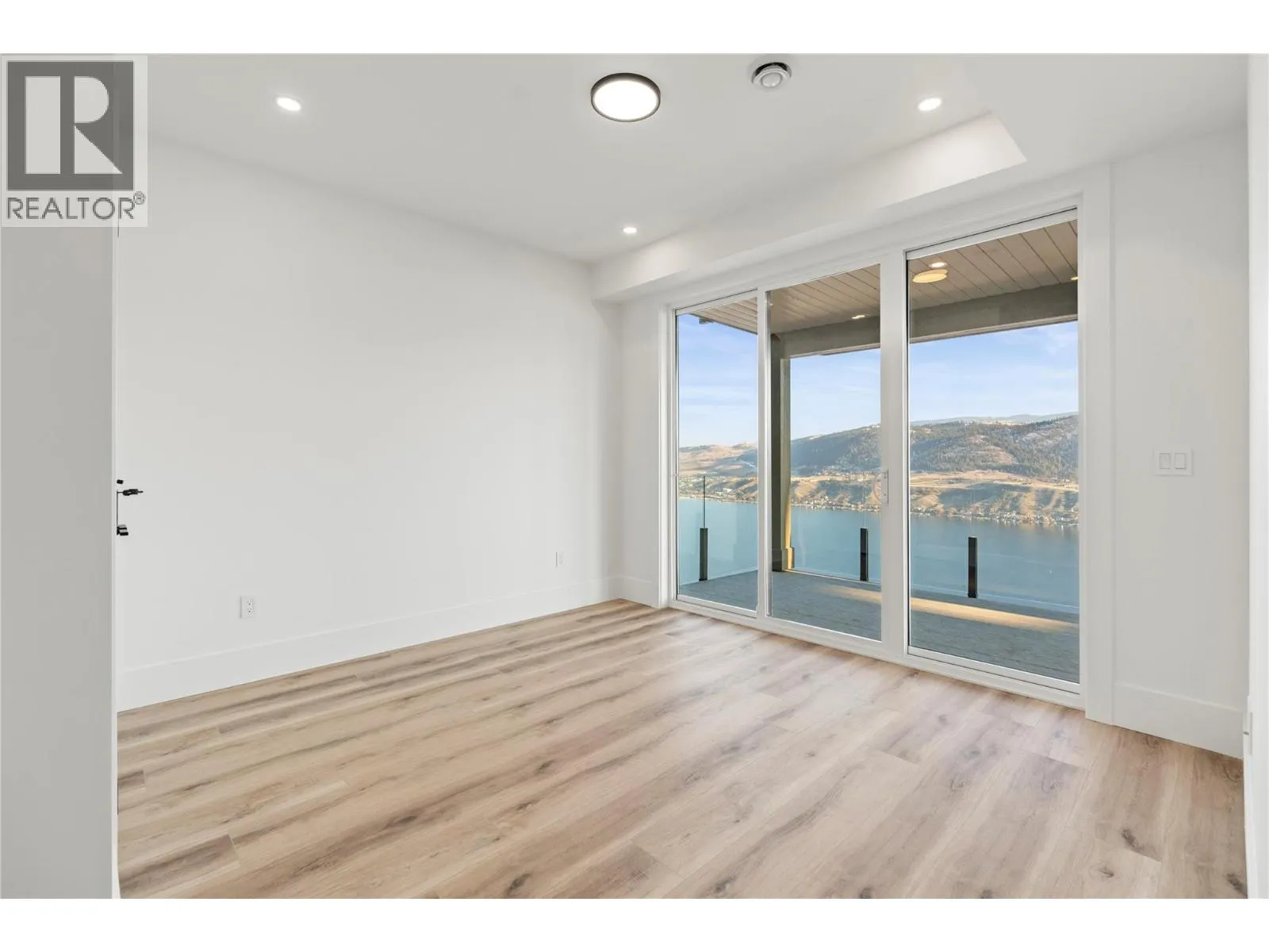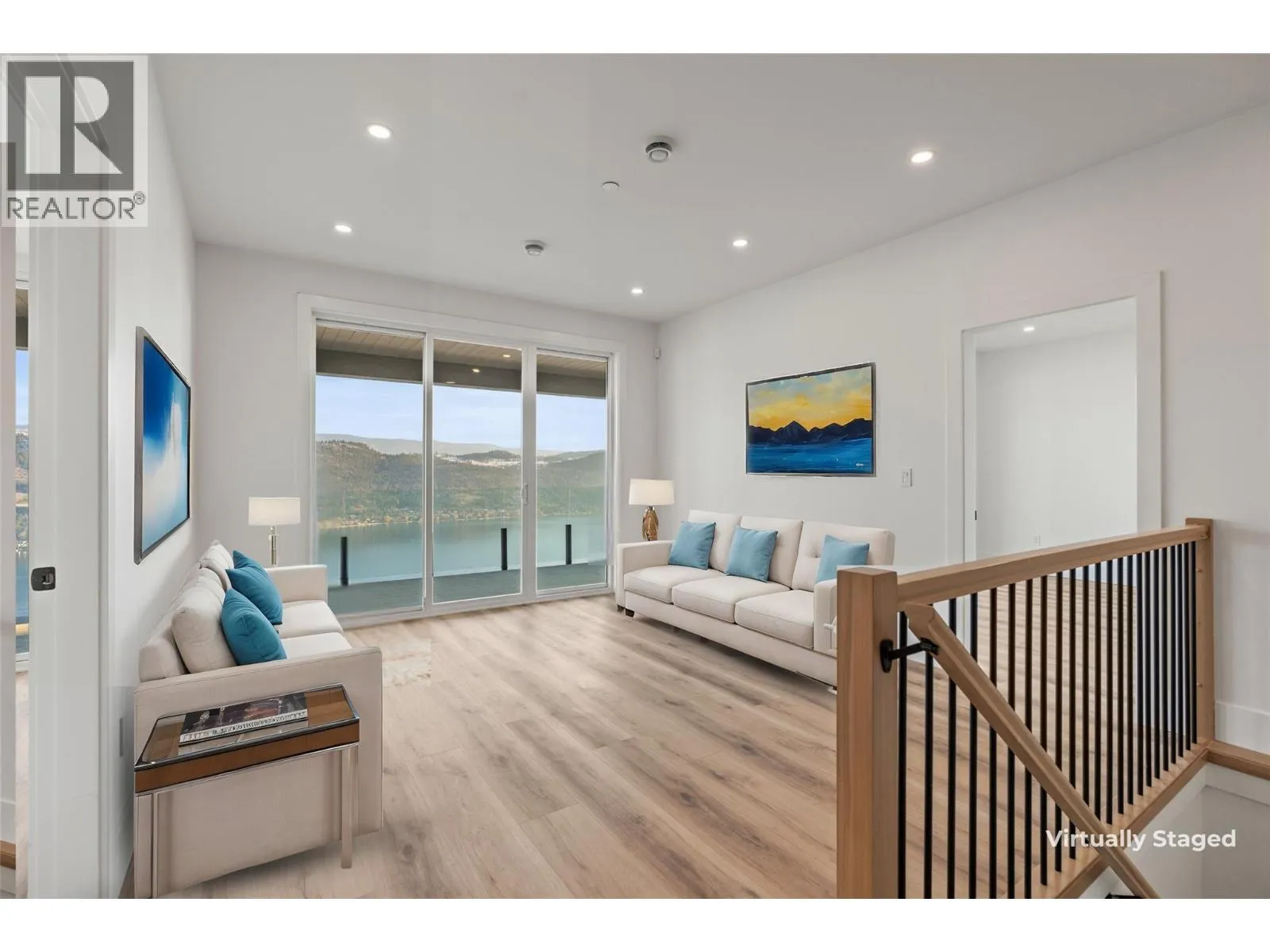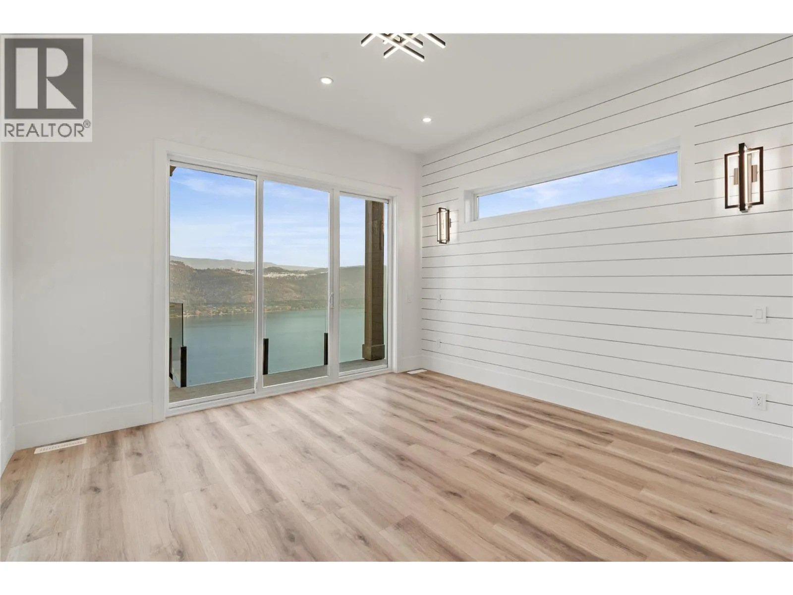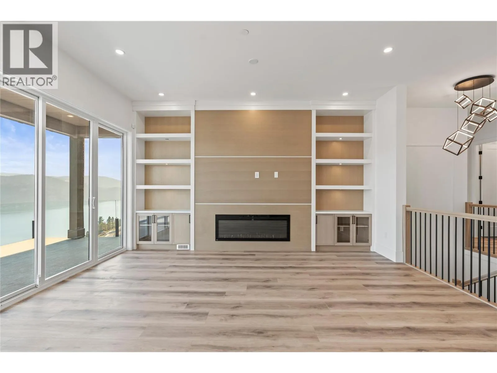 Best unobstructed lake views available on the street! All kitchen appliances plus the washer/ dryer will be installed & are included. Be the first owner to indulge in this exquisite new build in the desirable Adventure Bay! The spectacular three-storey home was designed for the ultimate appreciation of its awe-inspiring, Okanagan Lake views and incredible surroundings from every level. Enter onto the top floor, with gleaming flooring in the open-concept kitchen, living, and dining areas, accented by a contemporary electric fireplace framed by built-in cabinetry in the living room. The adjacent gourmet kitchen boasts rich wood and white shaker cabinetry, gorgeous stone countertops, and a huge centre island. Elsewhere on the main floor, the master bedroom suite awaits with a walk-in closet and spectacular ensuite bathroom.Accessible via the master bedroom and living area, a covered patio is wonderful for al fresco dining. Three additional bedrooms & a den exist between the main and lower levels, plus another 3 ½ bathrooms, all with equally lovely finishes. A second balcony off the mid level floor can be accessed by both bedrooms. On the lowest level, a bonus living space is ideal for entertaining, with access to the yard and patio. The exclusiveAdventure Bay community features a private beach, tennis courts, plus a multitude of hiking trails & lookouts! Come see everything this incredible property can offer you today! (id:27476)