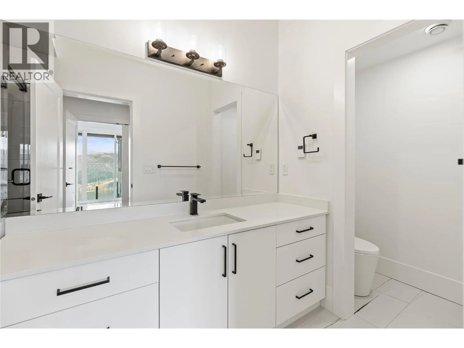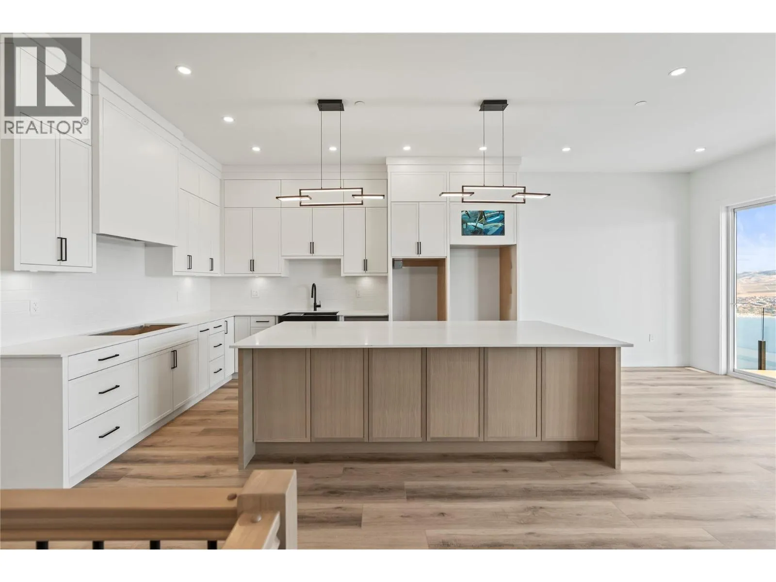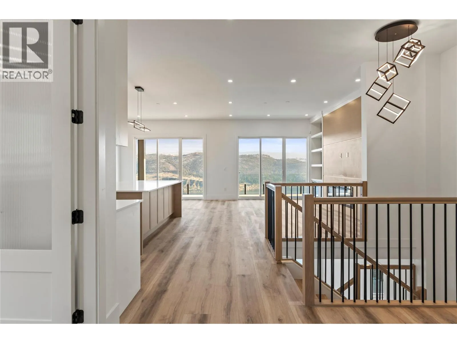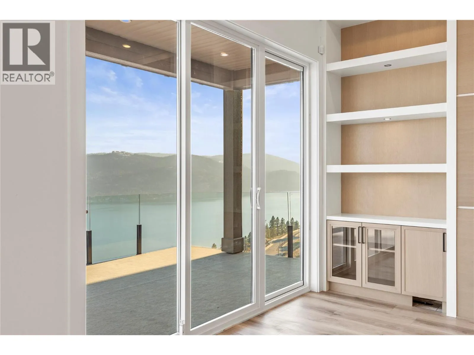 Best unobstructed lake views available on the street! All kitchen appliances plus the washer/ dryer will be installed & are included. Be the first owner to indulge in this exquisite new build in the desirable Adventure Bay! The spectacular three-storey home was designed for the ultimate appreciation of its awe-inspiring, Okanagan Lake views and incredible surroundings from every level. Enter onto the top floor, with gleaming flooring in the open-concept kitchen, living, and dining areas, accented by a contemporary electric fireplace framed by built-in cabinetry in the living room. The adjacent gourmet kitchen boasts rich wood and white shaker cabinetry, gorgeous stone countertops, and a huge centre island. Elsewhere on the main floor, the master bedroom suite awaits with a walk-in closet and spectacular ensuite bathroom.Accessible via the master bedroom and living area, a covered patio is wonderful for al fresco dining. Three additional bedrooms & a den exist between the main and lower levels, plus another 3 ½ bathrooms, all with equally lovely finishes. A second balcony off the mid level floor can be accessed by both bedrooms. On the lowest level, a bonus living space is ideal for entertaining, with access to the yard and patio. The exclusiveAdventure Bay community features a private beach, tennis courts, plus a multitude of hiking trails & lookouts! Come see everything this incredible property can offer you today! (id:27476)