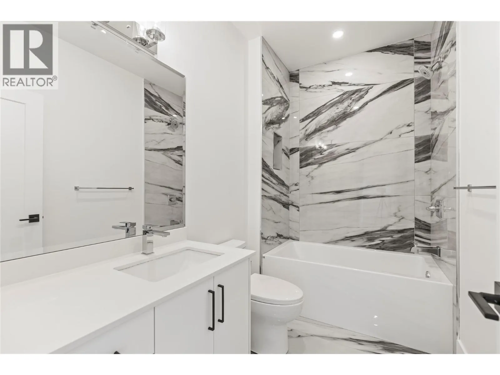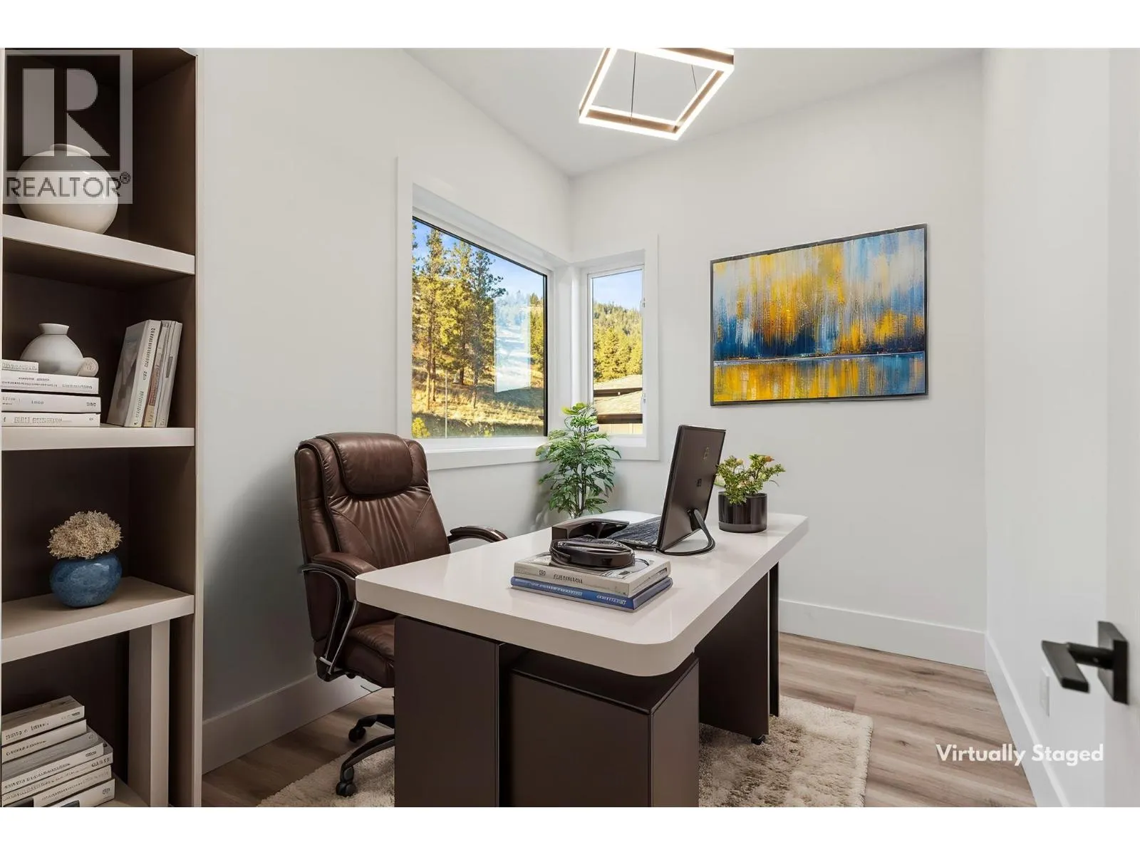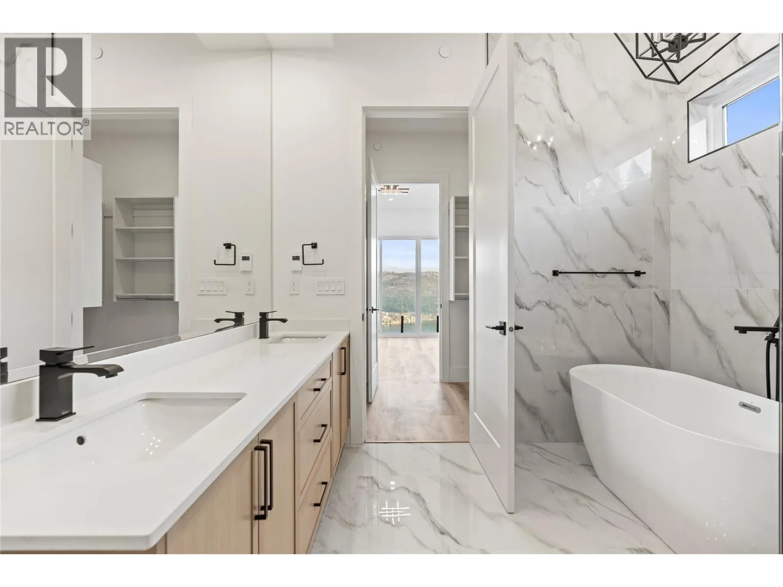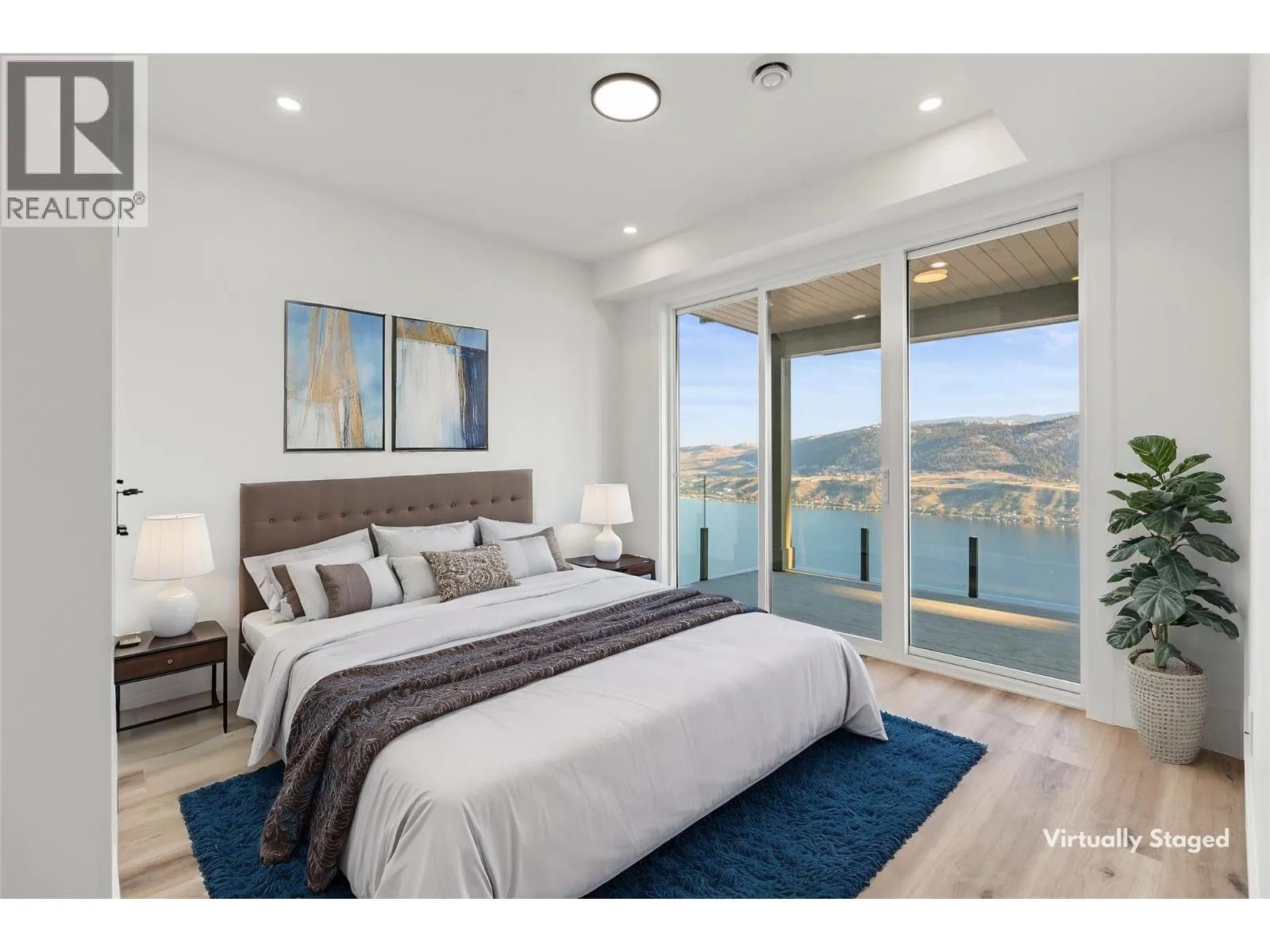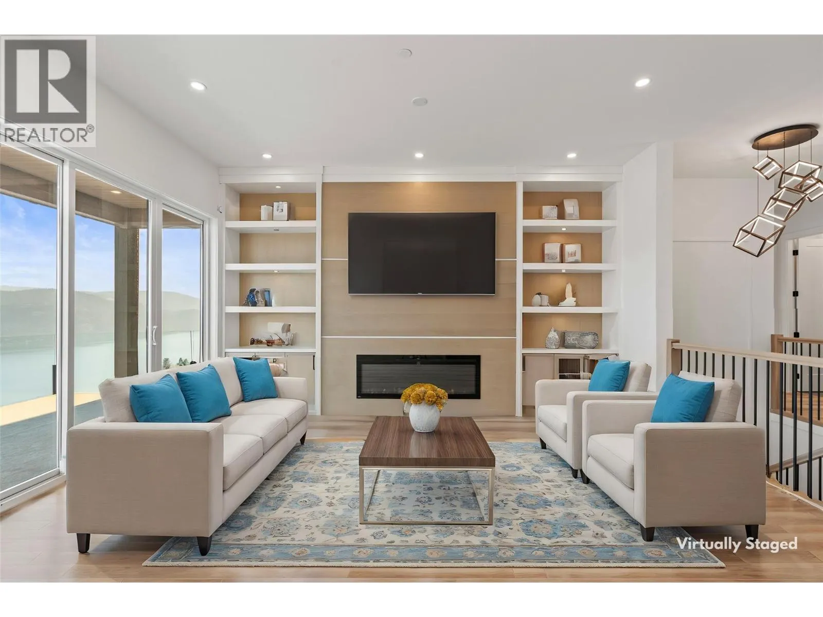 Best unobstructed lake views available on the street! All kitchen appliances plus the washer/ dryer will be installed & are included. Be the first owner to indulge in this exquisite new build in the desirable Adventure Bay! The spectacular three-storey home was designed for the ultimate appreciation of its awe-inspiring, Okanagan Lake views and incredible surroundings from every level. Enter onto the top floor, with gleaming flooring in the open-concept kitchen, living, and dining areas, accented by a contemporary electric fireplace framed by built-in cabinetry in the living room. The adjacent gourmet kitchen boasts rich wood and white shaker cabinetry, gorgeous stone countertops, and a huge centre island. Elsewhere on the main floor, the master bedroom suite awaits with a walk-in closet and spectacular ensuite bathroom.Accessible via the master bedroom and living area, a covered patio is wonderful for al fresco dining. Three additional bedrooms & a den exist between the main and lower levels, plus another 3 ½ bathrooms, all with equally lovely finishes. A second balcony off the mid level floor can be accessed by both bedrooms. On the lowest level, a bonus living space is ideal for entertaining, with access to the yard and patio. The exclusiveAdventure Bay community features a private beach, tennis courts, plus a multitude of hiking trails & lookouts! Come see everything this incredible property can offer you today! (id:27476)