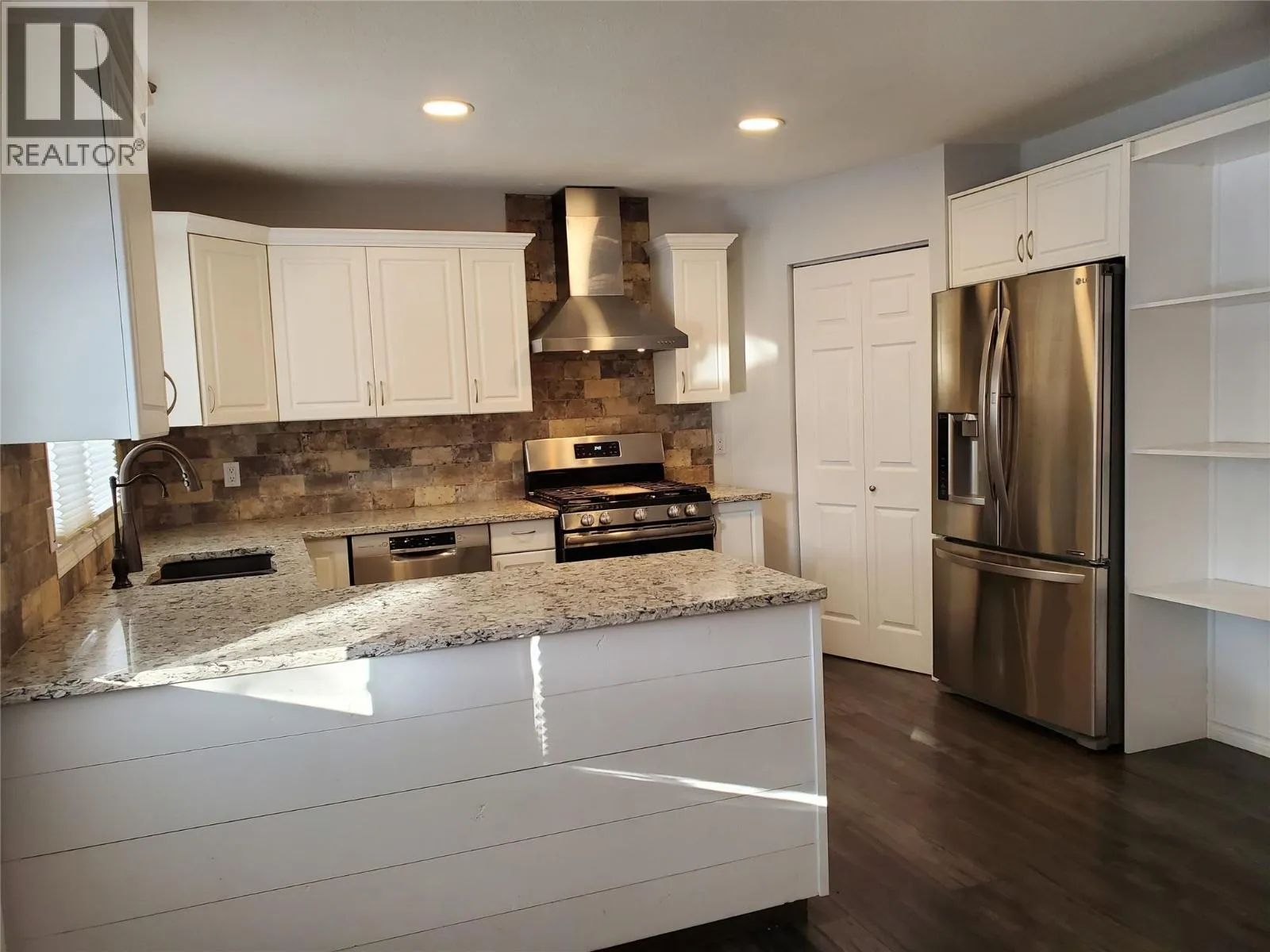 Excellent investment or holding property that has recently been updated and features new zoning with lane access. This nicely updated rancher offers wheelchair accessibility, 3 bedrooms (2 on the main floor and 1 downstairs), and 2 full bathrooms. Interior updates include a newer furnace, hot water tank, laminated floors, interior doors, fresh paint, new window coverings, a refinished gas fireplace, and a washer and dryer. The stylish kitchen boasts granite countertops, a tiled backsplash, newer stainless steel appliances, and a double undermount sink. The main bedroom provides ample closet space and features a barn door leading to an adjacent ensuite, which includes double marble sinks, a tiled floor, and a walk-in tiled shower. The property is situated in a quiet neighborhood and features a beautifully landscaped, fenced backyard with a flagstone patio, a garden area, a 12.5â x 8â rear shed for storage, and a covered seating area perfect for summer barbecues. A large double carport and driveway offer plenty of parking, with convenient access from a rear laneway. This location is ideal, close to the Vernon hospital, downtown, recreation facilities, restaurants, parks, and numerous amenities. Photos are prior to the tenants moving in, tenants to vacate November 30th, 2025 for a quick possession. (id:27476)