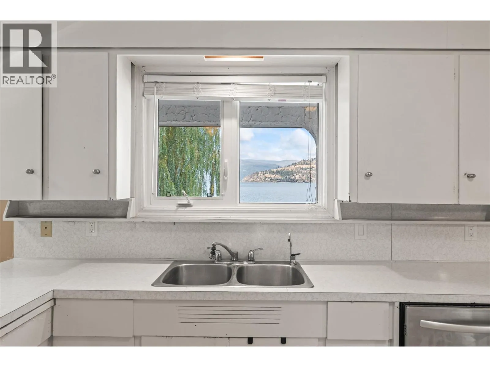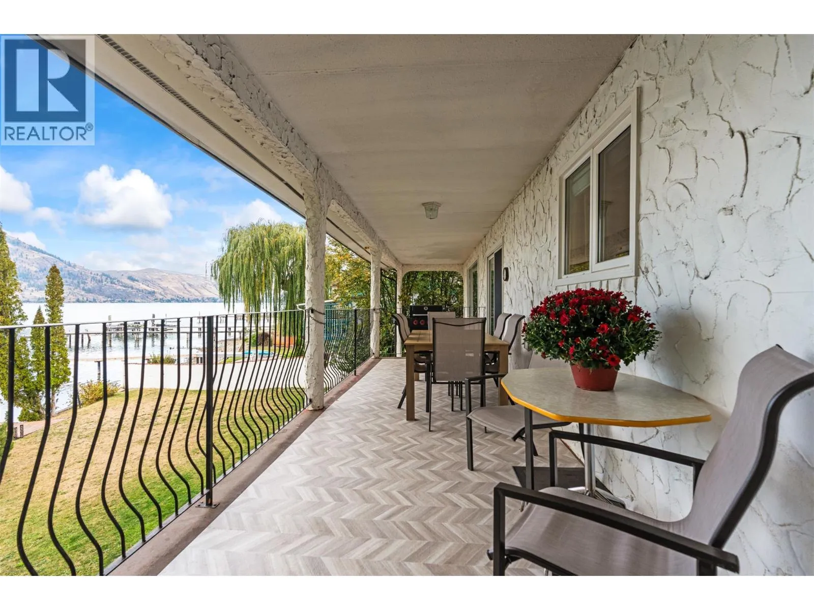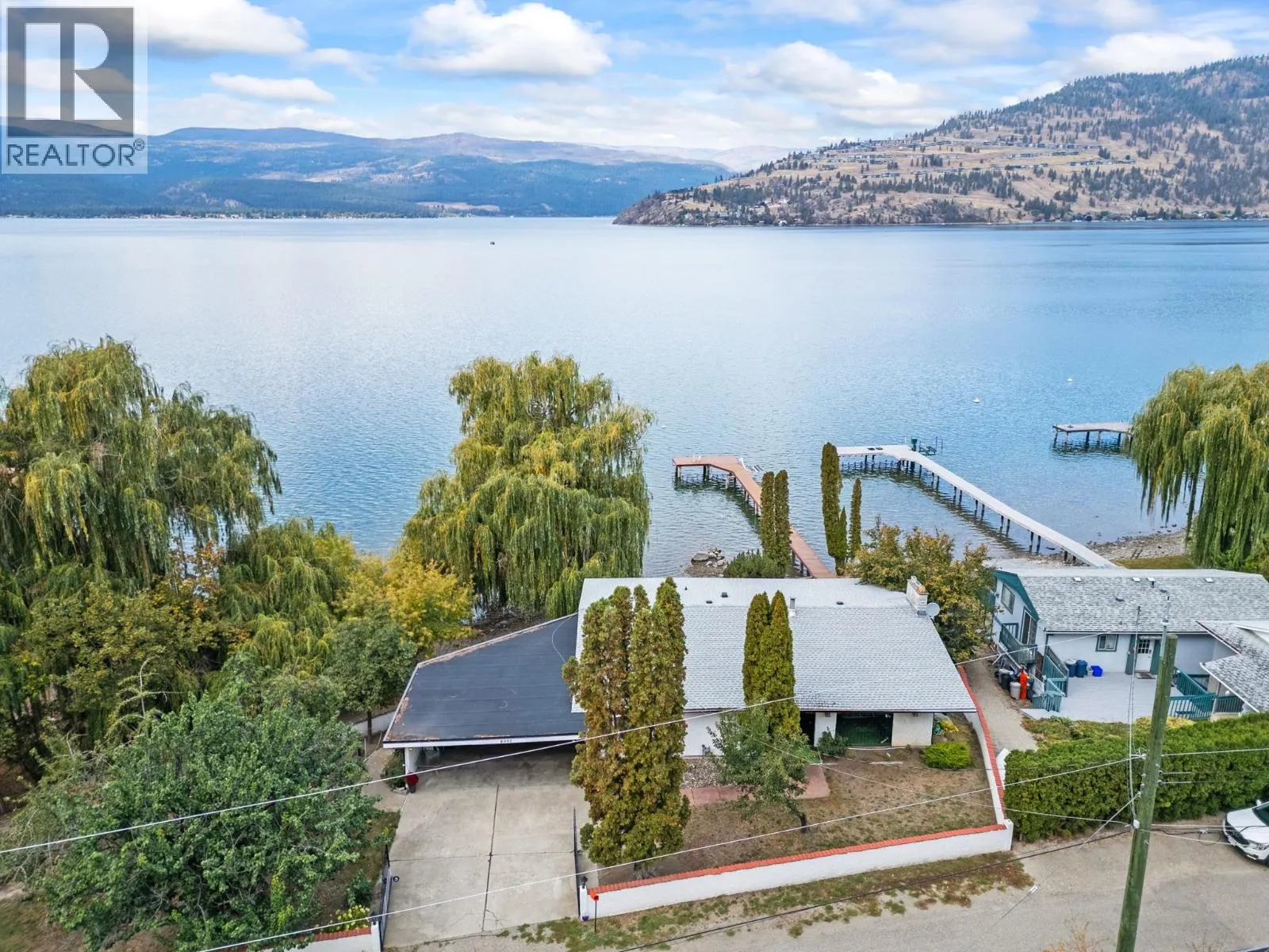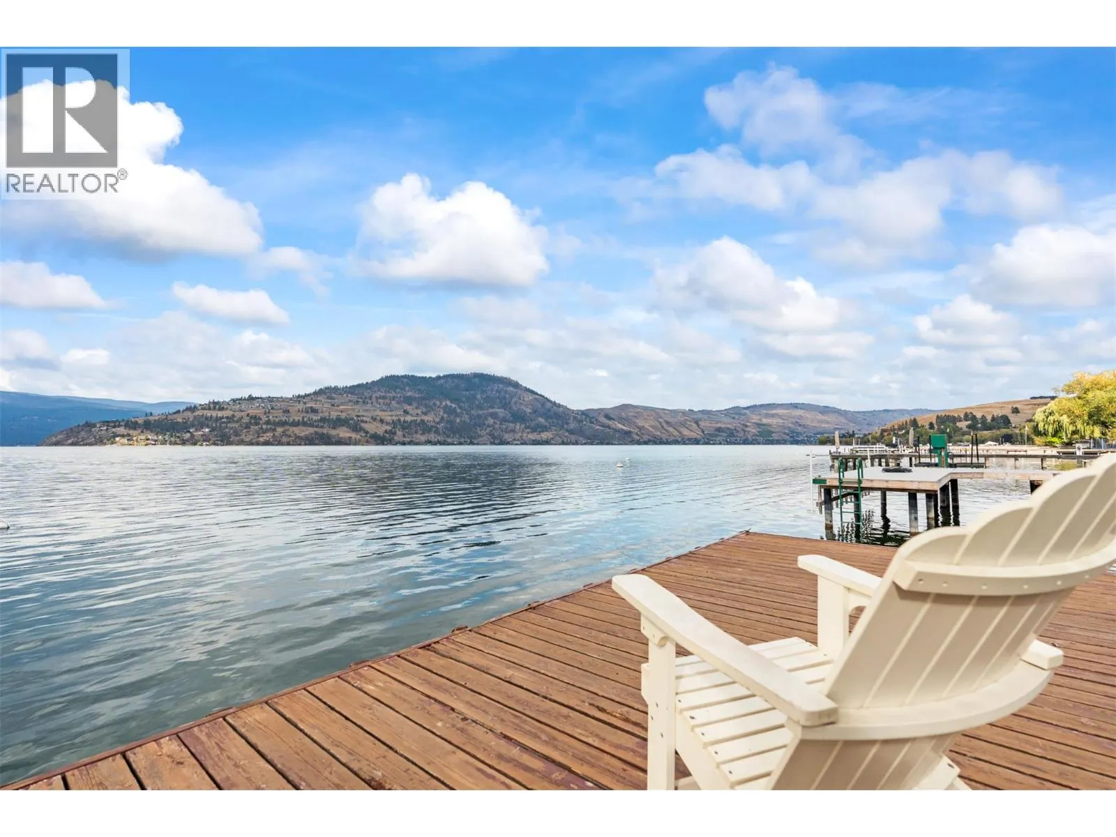 Lakefront Living Like No Other! Tucked away from the bustle of Okanagan Landing Road, this unique 4-bedroom, 3-bathroom lakefront home offers the ultimate Okanagan lifestyle. Whether youâre seeking a serene vacation retreat, long term enjoyment or a long-term investment with future development potential, this property is a rare find on Peters Road. The main level features a bright and open kitchen, living, and dining area that seamlessly flows onto a covered deckâperfect for entertaining while taking in full lake views. The primary bedroom with ensuite, an additional bedroom nearby, and a main bath complete this level. The walkout basement offers two additional bedrooms, suite potential or flexible living space, currently set up with additional sleeping quarters with media area, and opens to another partially covered deck with panoramic lake views. Enjoy the yard, ideal for lawn games and outdoor fun. Additional highlights include a double carport, fenced yard, dock with boat lift, and multiple outdoor spaces to soak in the stunning scenery. This is a once-in-a-lifetime opportunity to own a private slice of Okanagan lakefront paradise. (id:27476)