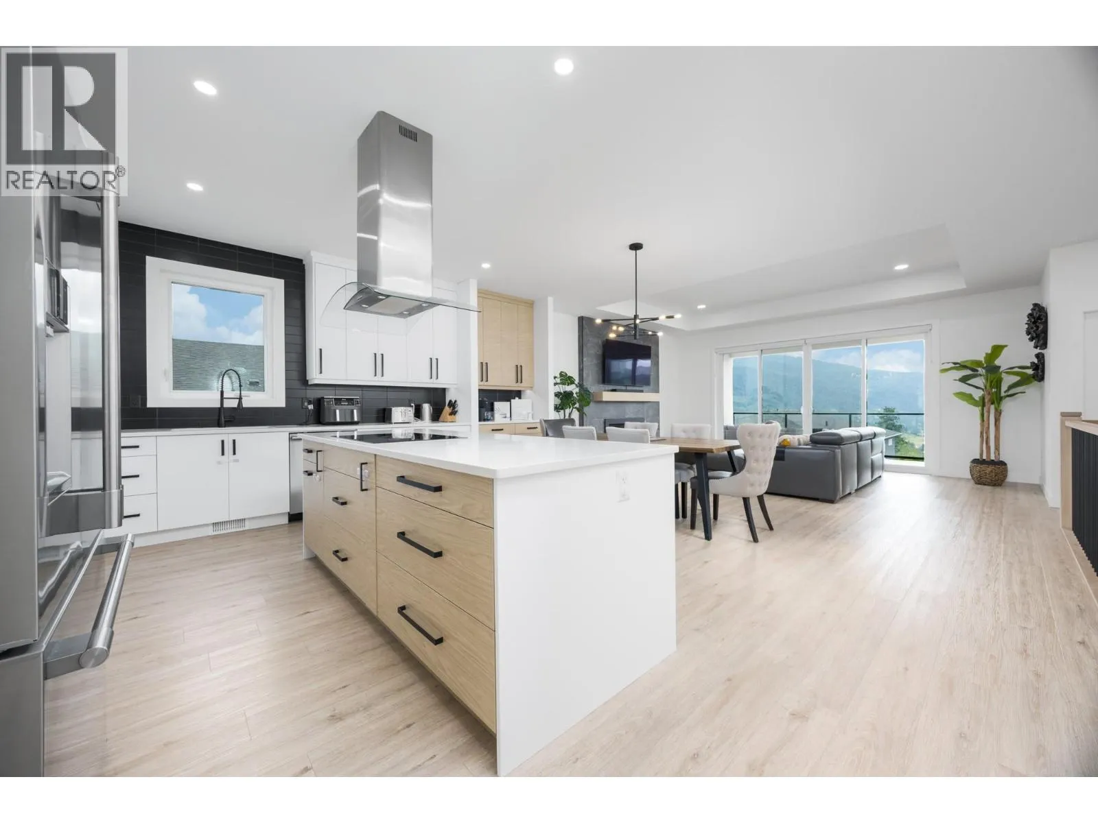 This single-family home is ideally located in the heart of Vernon. Featuring a sleek and modern exterior with an entry-level garage, the home opens into a spacious, well-designed interior highlighted by stylish vinyl plank flooring throughout. The expansive entryway leads into a bright living room with a cozy gas fireplace and access to a balcony showcasing stunning views. The adjacent kitchen is a showstopper, featuring crisp white cabinetry, all-new appliances, a generous island, a dedicated coffee bar, and a walk-in pantryâperfect for both everyday living and entertaining. The main floor also features a luxurious primary suite, complete with double sinks, a soaking tub, a walk-in shower, and a convenient walk-through closet. Two additional bedrooms complete the main level. On the lower entry level, a fourth bedroom offers a private space ideal for guests or a home office. Downstairs, a fully self-contained two-bedroom suite offers incredible versatility, whether for rental income or accommodating extended family. It includes a full kitchen, living area, in-suite laundry, a full bathroom, and a walk-in closet in one of the bedrooms. Basement is generating $2100 a month, available for viewing at 2nd showing with serious interests. Attached garage is equipped with an EV Charging port. The backyard is flat and fully usableâan excellent spot for kids, pets, or outdoor gatherings. (id:27476)
