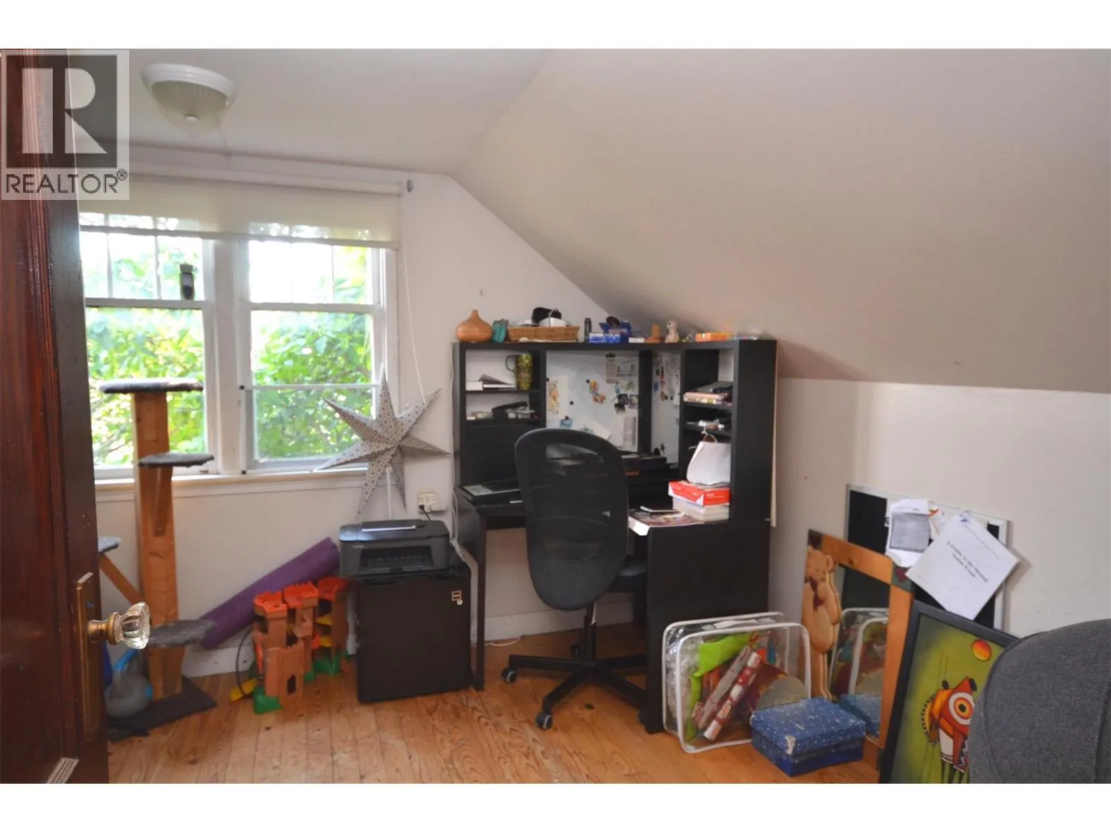 Experience tranquil living in this charming home, tucked beneath mature shade trees within a fully fenced yard that creates a peaceful retreat for active families. Step through the tiled entryway into classic fir-floored living spaces filled with natural light from large windows framing the lush greenery outside. The welcoming living room, featuring dual windows and an elegant archway to the dining area, flows seamlessly into a kitchen overlooking the backyard with a convenient pantry-perfect for gatherings and everyday comfort. Down the hallway, a classic four-piece bath showcases timeless black-and-white tile, a pedestal sink, and clever storage. A versatile bonus room awaits your vision-ideal as a TV lounge, home office, or vibrant playroom. Upstairs, the private primary bedroom with a cozy nook is joined by two additional bedrooms and a spacious landing, offering multiple possibilities for relaxation or study. The basement features two generously sized bedrooms providing privacy. Though largely unfinished, this level invites imagination for future expansion, with space for storage, laundry, or a new family room. Outdoors, enjoy a secure backyard designed for both fun and serenity, with room for children to play, adults to gather by the BBQ, and blossoming trees in spring. Ideally located near Harwood Elementary, Seaton Secondary, shopping, and recreation, this home offers the perfect balance of comfort, versatility, and location. (id:27476)