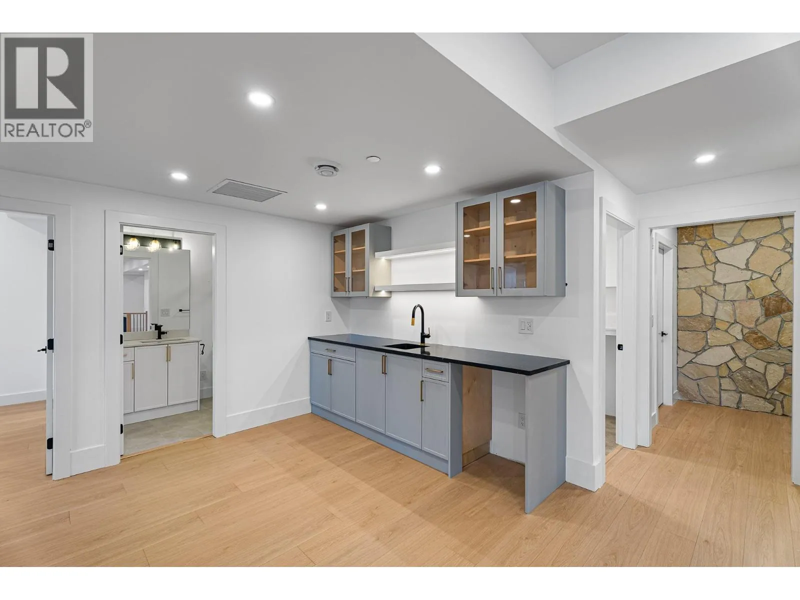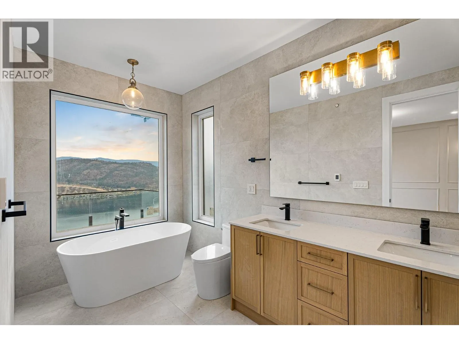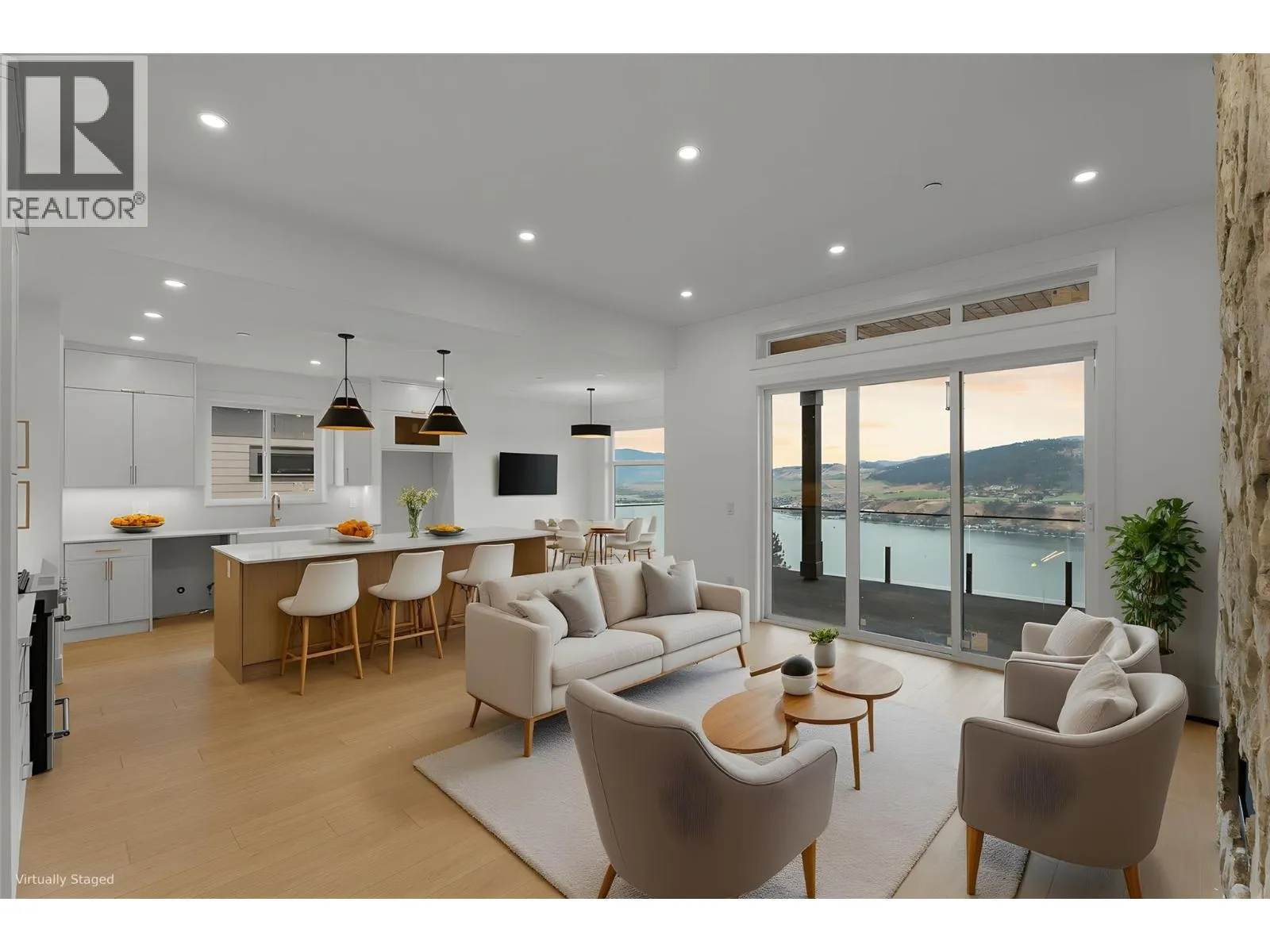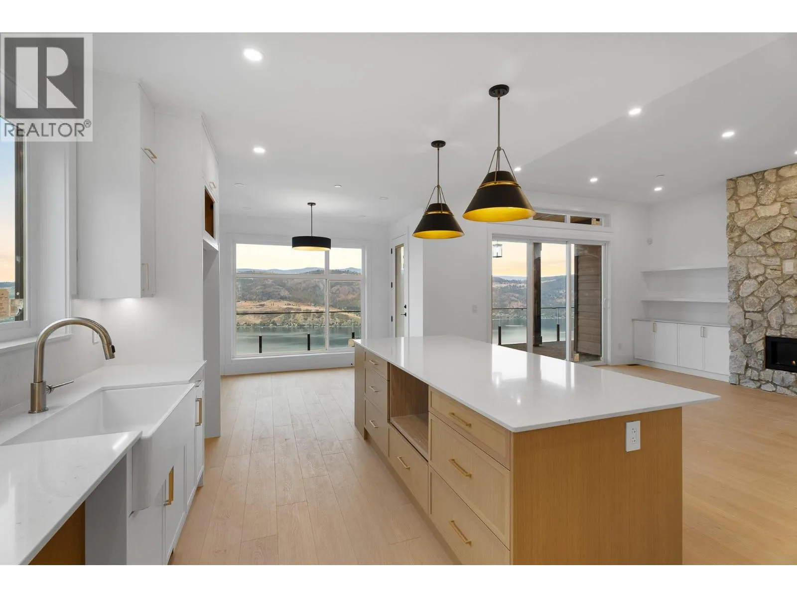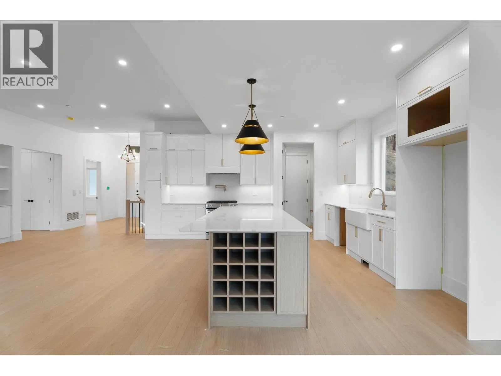 Welcome to 8920 Tavistock Road, a statement of refined luxury in Vernonâs sought-after Adventure Bay community. This brand-new, three-level residence offers 3,667 sqft of living space, with 5 bedrooms, 5 bathrooms, and floor-to-ceiling lake views at every turn. The main floor features 9-foot ceilings, oversized windows, and an open-concept design that blends a chefâs kitchen with an elegant dining area and inviting living room, all anchored by a striking stone accent wall with a natural gas Napoleon fireplace. The kitchen is built for both style and function, highlighted by a spacious island and instant pot filler. The primary suite is a true retreat with a spa-inspired ensuite and walk-in closet, joined by a second bedroom for added flexibility. The lower level is an entertainerâs dream with three additional bedrooms, a large family room, and not one but two custom wet bars that flow seamlessly to a lakeview balcony. Wine enthusiasts will appreciate the hand-crafted stone wine cellar, while the walk-out basement completes the package with a massive rec room, full bath, and access to a covered patio overlooking Okanagan Lake. Two upper decks and xeriscaped landscaping maximize outdoor living while minimizing maintenance. Residents of Adventure Bay enjoy private beach access, tennis and pickleball courts, and scenic trails. This home blends elegance, convenience, and the Okanagan lifestyle book your private tour today. (id:27476)