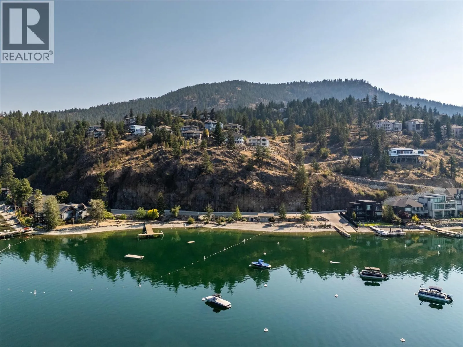 On the bluffs of Okanagan Lake sits a one-of-a-kind complex and this stunning 3 bed/2 bath rancher-style home offering breathtaking panoramic views and all the perks of waterfront living. The open layout is designed to showcase the scenery, starting with an updated kitchen featuring granite counters, tile backsplash, newer appliances, and abundant storage. The dining area with a cozy two-way gas fireplace flows seamlessly into the spacious living room with vaulted ceilings and new power blinds. The primary suite boasts deck access, a spa-inspired ensuite with custom tile shower, dual sinks, private water closet, and a generous walk-in closet. Two additional bedrooms, a full guest bath, and a laundry room with extra storage complete the thoughtful floor plan. Step outside to the expansive deck with two new power awningsâideal for summer BBQs and endless outdoor enjoyment. Parking includes a single garage, an extra outdoor stall, and ample guest spaces. This gated community showcases over 500â of private beachfront with washrooms, a swimming dock, boat launch, moorage, picnic areas, walking paths, a romantic gazebo, and a local access to tennis/pickleball courts & playground. With no age restrictions and pet-friendly policies, this âlock and leaveâ lifestyle offers the ultimate downsizing opportunity without compromise. (id:27476)