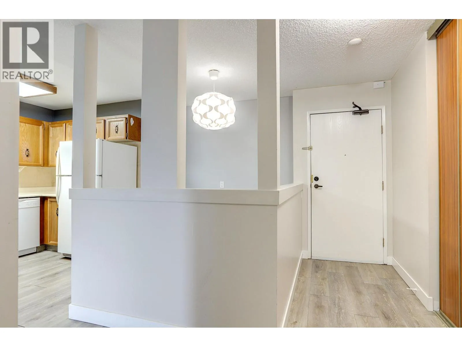 Updated 2 bedroom, 2 bathroom condo in Centre Point in Vernon, BC. Spacious master bedroom features a large walk in closet and 3 piece ensuite, with the second bedroom across the hall from the full main bathroom. Boasting a living room that opens via sliding glass doors onto a balcony overlooking the city lights and valley, a nice sized kitchen/dining area, and in suite laundry for convenience, this home offers comfort and security at an affordable price. Close to downtown Vernon shopping, groceries, restaurants, and more. Pets are restricted to fish, small mammals, and birds (with limits on numbers). (id:27476)