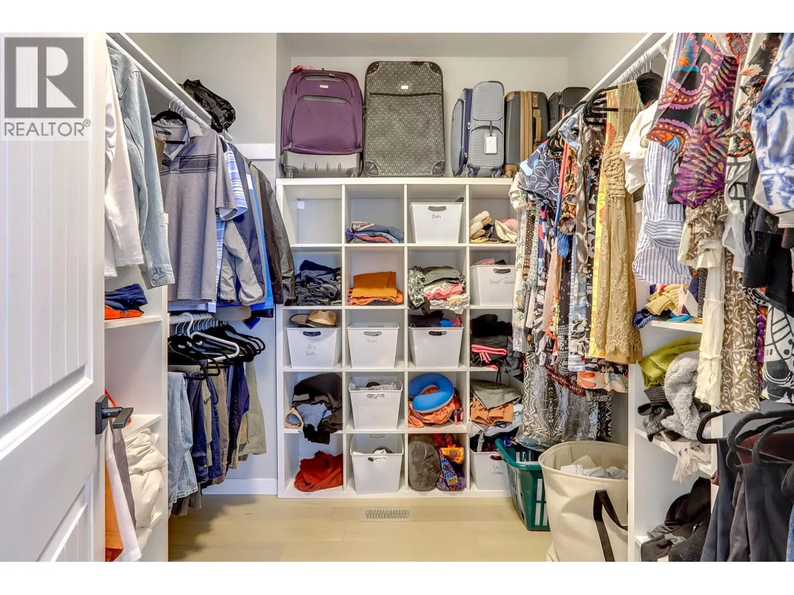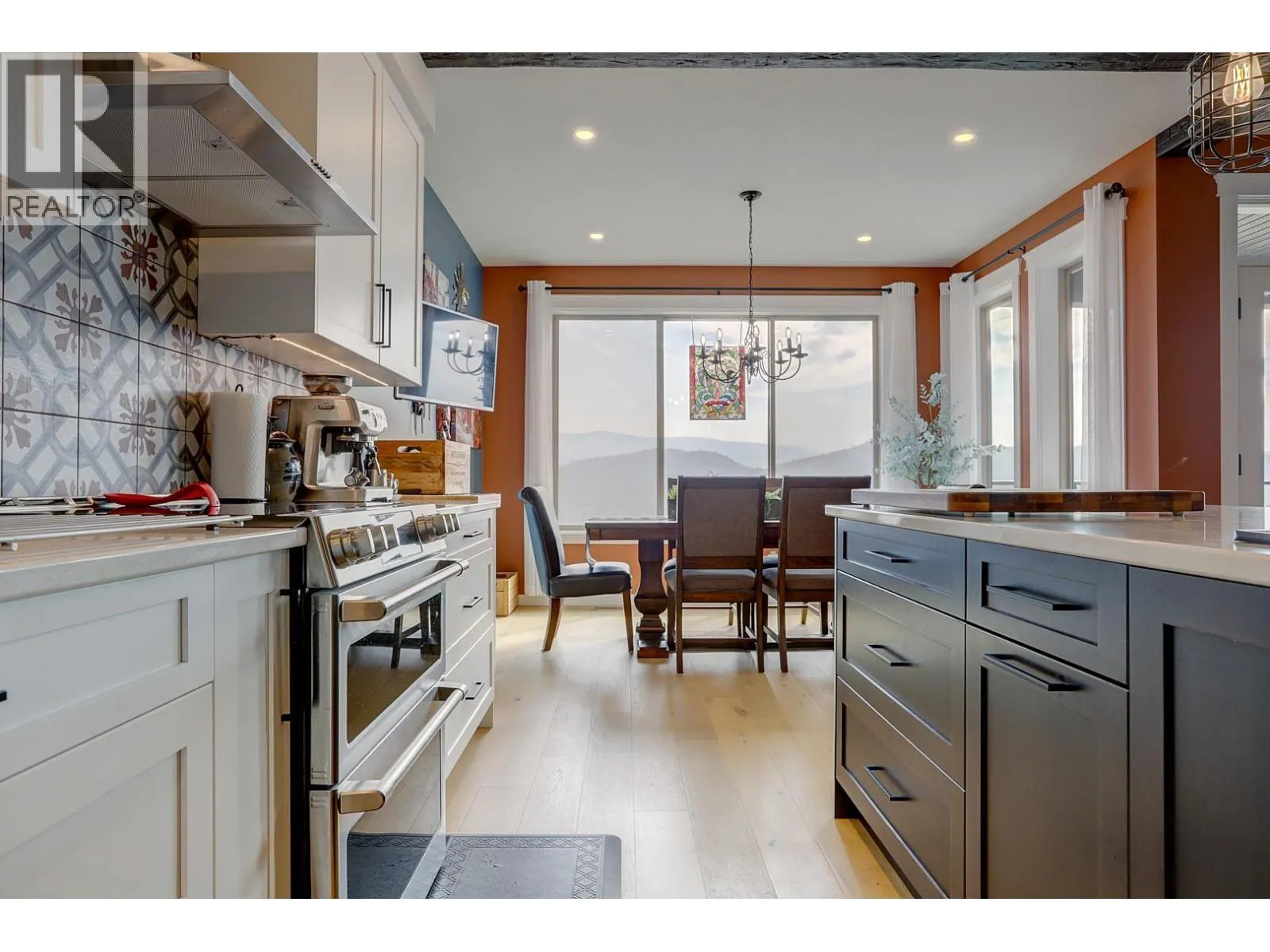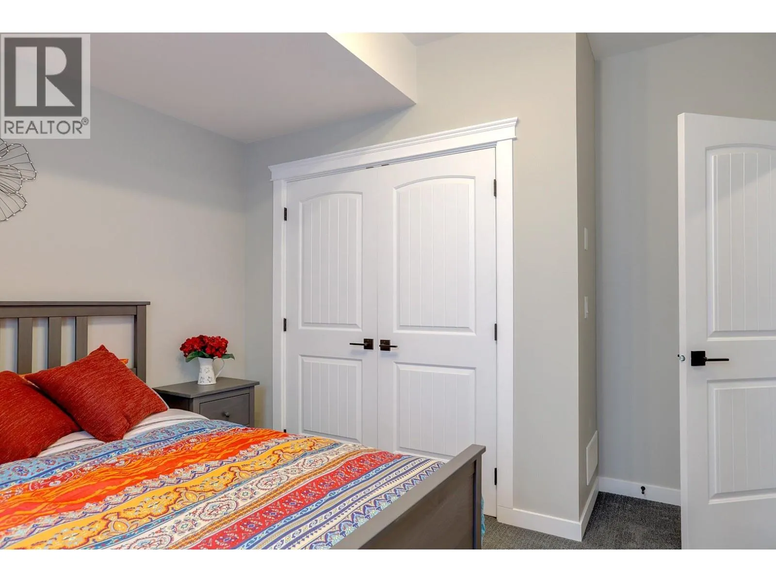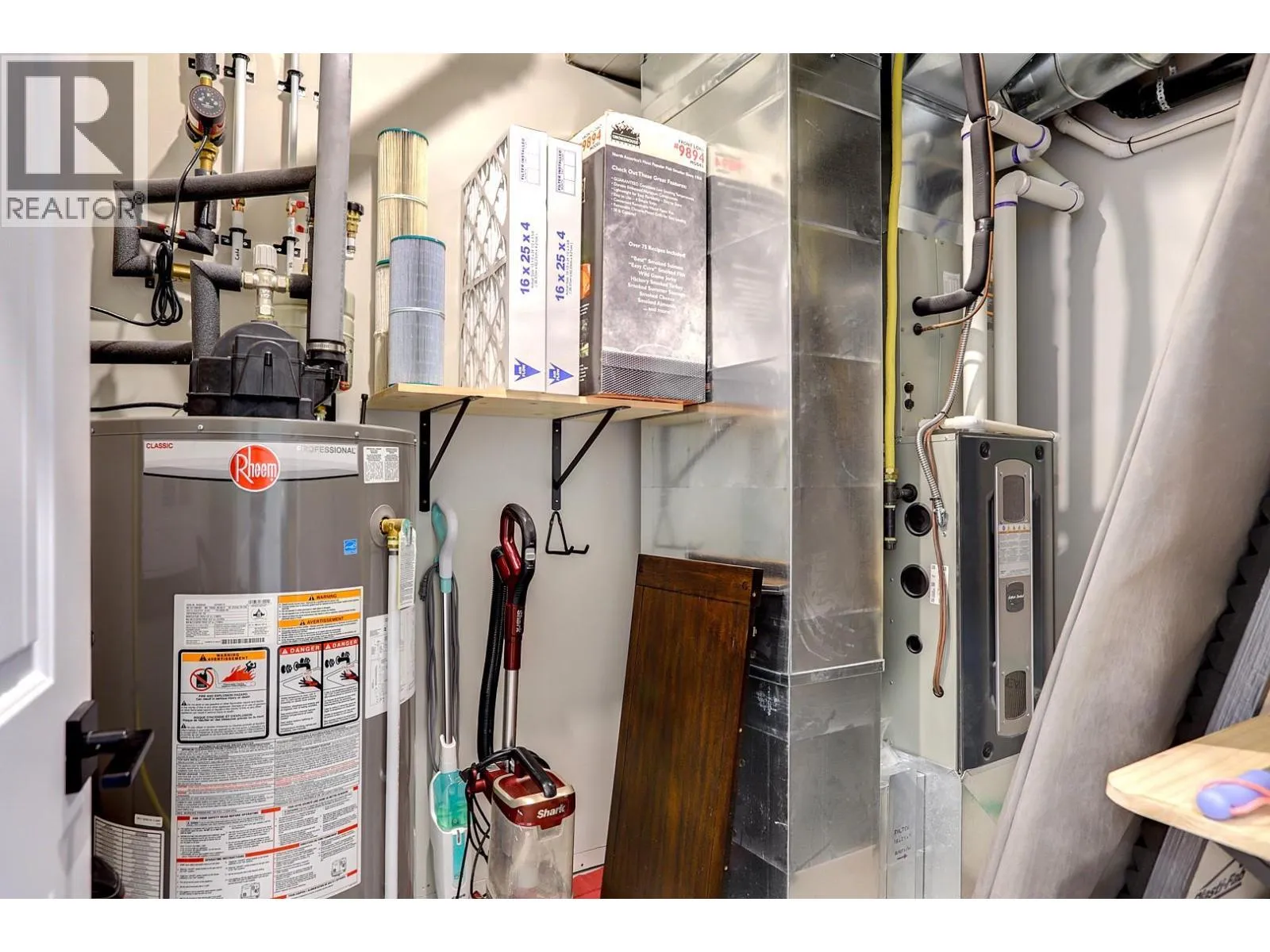 Designed for everyday living and entertaining, featuring a chefâs kitchen with an oversized island, bar-style seating, and upgraded appliances. The open-concept living and dining areas flow seamlessly to a spacious covered patio for enjoying the sweeping city and lake views. A striking Venetian plaster fireplace (electric) and exposed beams in the living room elevate the space with a warm charm. Upstairs, the primary suite occupies the second level, offering a generous walk-in closet and a luxurious 5-piece ensuite with a large upgraded soaker tub with side-mounted taps and a separate glass-enclosed shower. The private rooftop patio provides private oasis with more spectacular lake views. Thoughtful upgrades include: all lighting updated, faucets and fixtures upgraded to matte black. Trim moldings now frame all windows and doors and upgraded tiling enriches the kitchen, bathrooms, and laundry room. A quick hot-water system, upsized tank, and fully finished media/playroom downstairs add to the homeâs comfort and livability. Outdoor living has been equally enhanced with, new fencing and stairs along the side of the home, faux grass and a vegetable garden with planters. The hot tub offers the perfect place to relax after a day of enjoying nearby trails or golfing at The Rise â a Fred Couples Signature Course or dinner at The EDGE Restaurant & Bar just minutes away. 2 Pets, no height or breed restrictions. (id:27476)