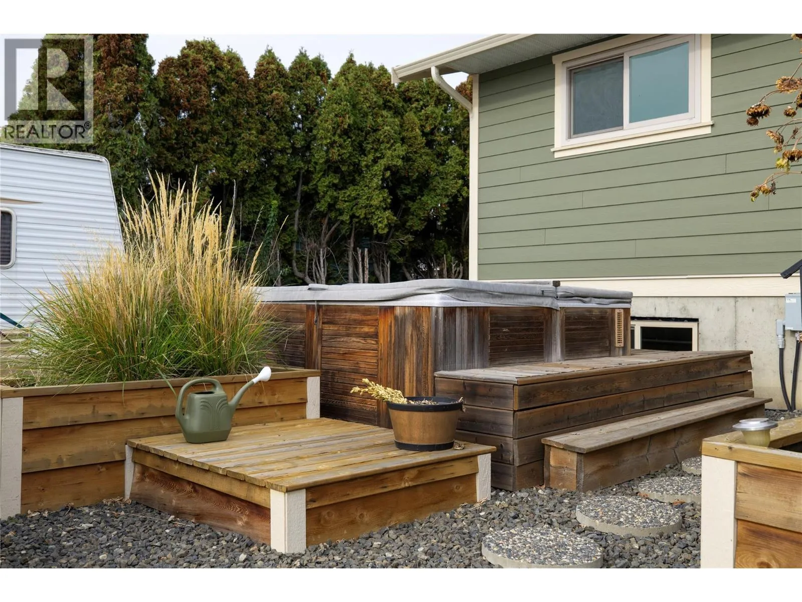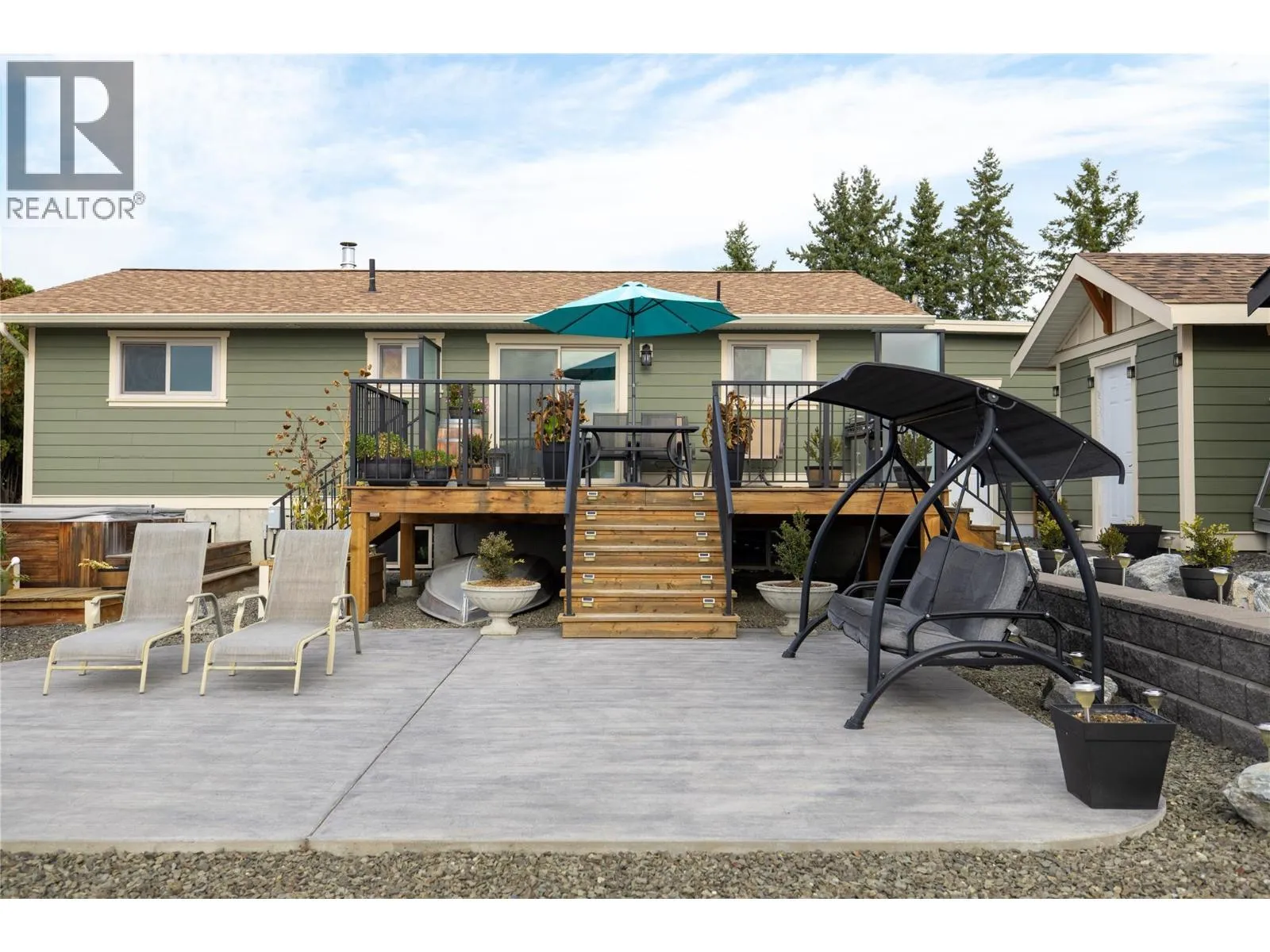 Nicely updated 4 bedroom 3 bathroom family home in a prime BX location on a large 0.3 acre lot backing onto farm land provides fantastic rural views and plenty of parking space. Extra storage in the custom sheds in the backyard. Too many upgrades to list but include siding, windows, deck, stamped concrete patio, flooring, bathrooms, plumbing, electrical, paint and more! Main floor offers 2 bedrooms and 2 full bathrooms with a good sized living room, kitchen and a dining room with easy access out to the deck and patio space to enjoy the Okanagan weather. Master bedroom has large walk-through closet and updated ensuite. Oversized single garage at 13'x27' if accessed near the kitchen. Fully updated downstairs features 2 more bedrooms, full bathroom, family room and large storage/mechanical room. Home is move in ready! (id:27476)