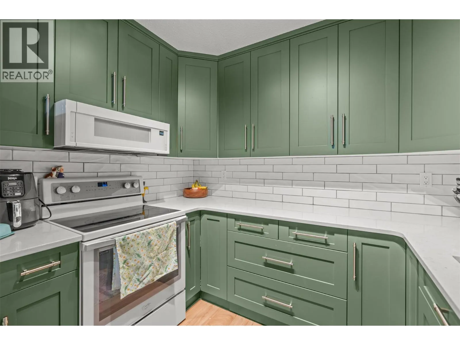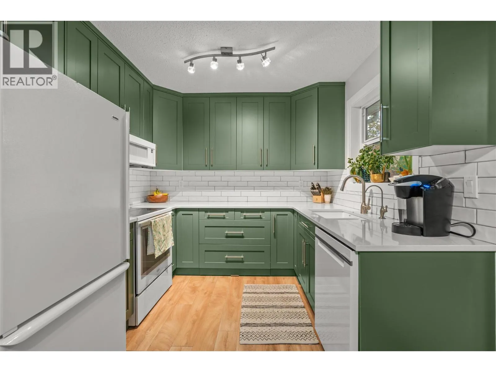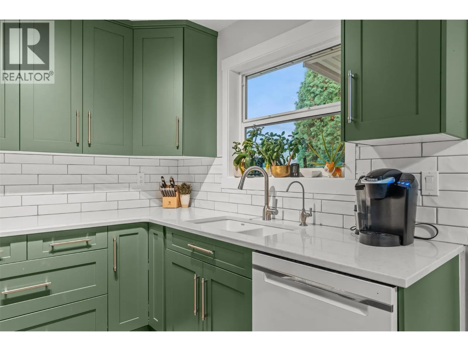 Beautifully Renovated Family Home on a Quiet Cul-de-Sac. A well-kept, 3-bedroom, 2-bath home in a quiet family neighbourhood close to schools, playgrounds, parks, hiking trails, and transit. The kitchen was renovated in 2021 with Kekuli Bay cabinetry, white quartz countertops, and modern finishes. The main bathroom features custom cabinets, a tiled shower, and concrete countertops. Includes a spacious living room with electric fireplace, a large rec room with a fully renovated 3-piece bathroom on the lower level. Off the kitchen boasts a modest deck with a staircase to a fully fenced yard. The yard is a gardener's dream with mature grape vines; black berry bushes; a peach & plum tree that produce fruit without needing pesticide. There is ample parking for vehicles and guests. Move-in ready and in a great location for families. Take the virtual tour! (id:27476)