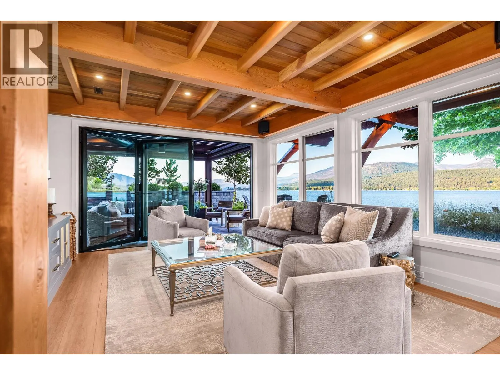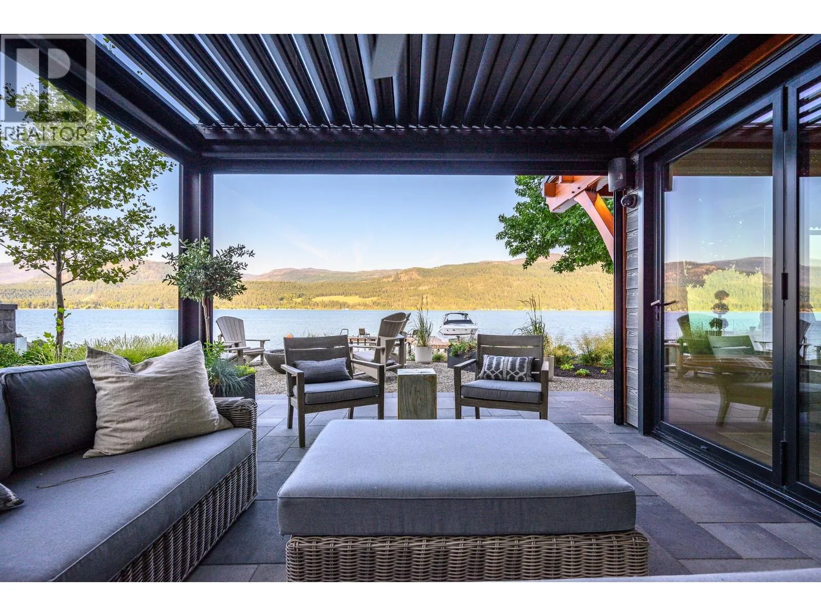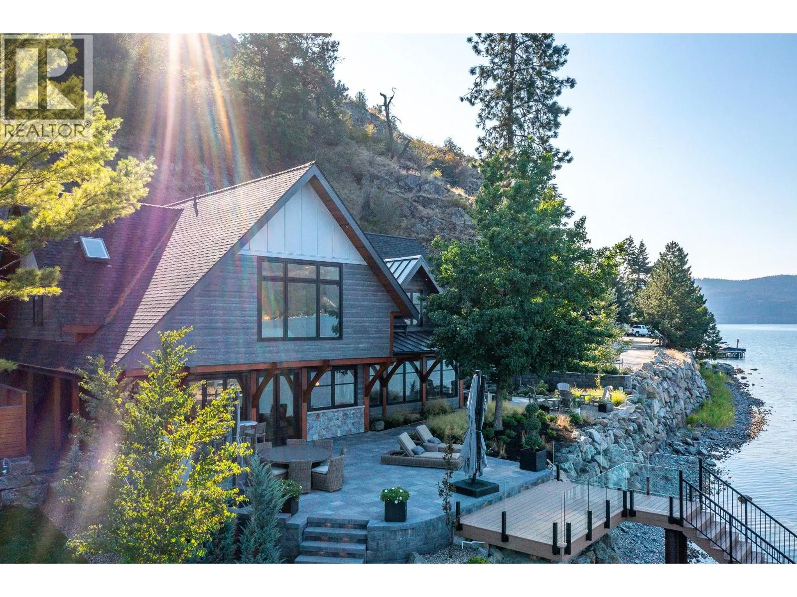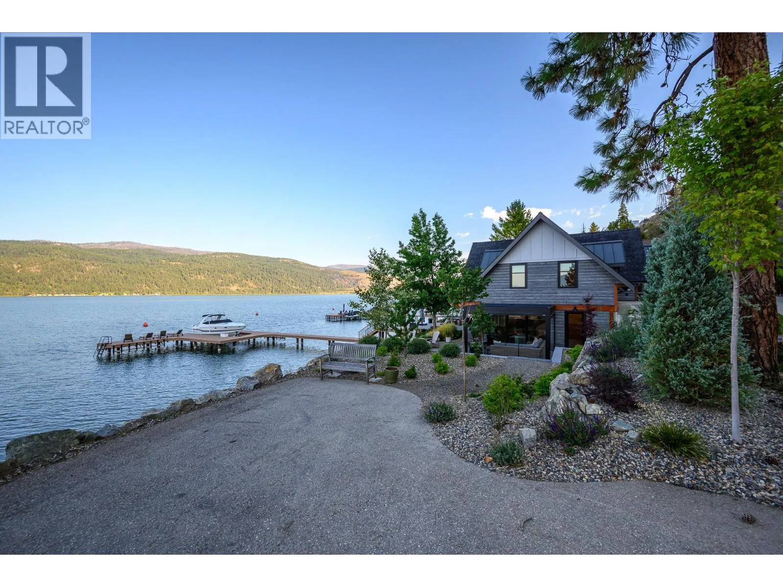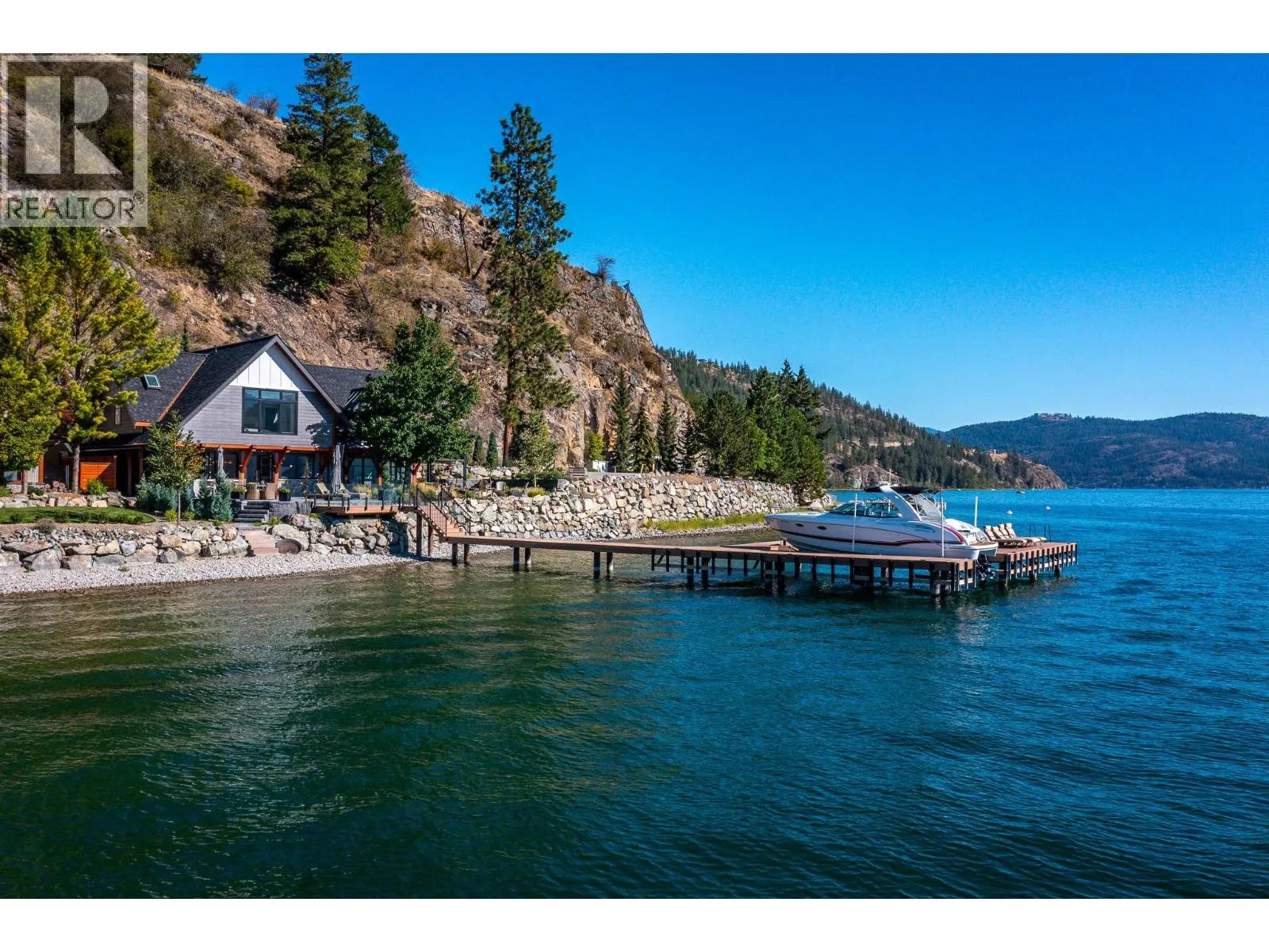 The ultimate âHampton Beachâ waterfront Cottage on Okanagan Lake! Step into the ambiance of this waterfront home, masterfully designed for elegance and comfort. Completely rebuilt in 2023, every inch of this residence is crafted for functionality and lake life enjoyment. The great room features beamed wooden ceilings, luxury vinyl flooring, quartz countertops, in-floor heating, and central cooling. The space is filled with fabulous built-ins, including a wet bar which includes a wine fridge, beverage drawer and ice maker. With 3.5 stunning bathrooms and a primary suite boasting automated blinds and a ceiling-hidden TV, luxury is woven into every detail. The home includes three additional bedrooms, one of which features custom bunk beds. The kitchen, equipped with a massive island and Nano windows that open to the patio, seamlessly connects to the many outdoor living areas, including a sunroom, fire bowl area, and summer kitchen. A new custom dock with expanded sitting areas completes this exquisite property. Nestled in an exclusive gated waterfront neighbourhood, shared by only 15 other homeowners, this residence offers privacy and luxury on the water's edge. (id:27476)