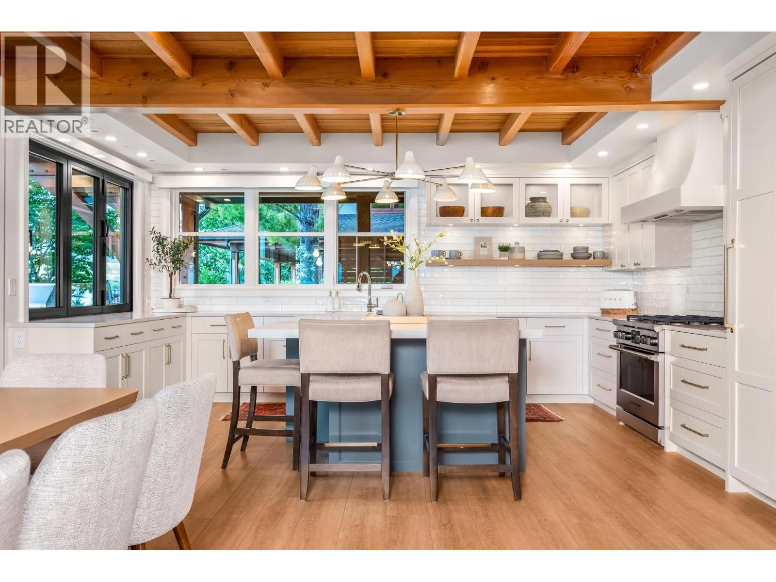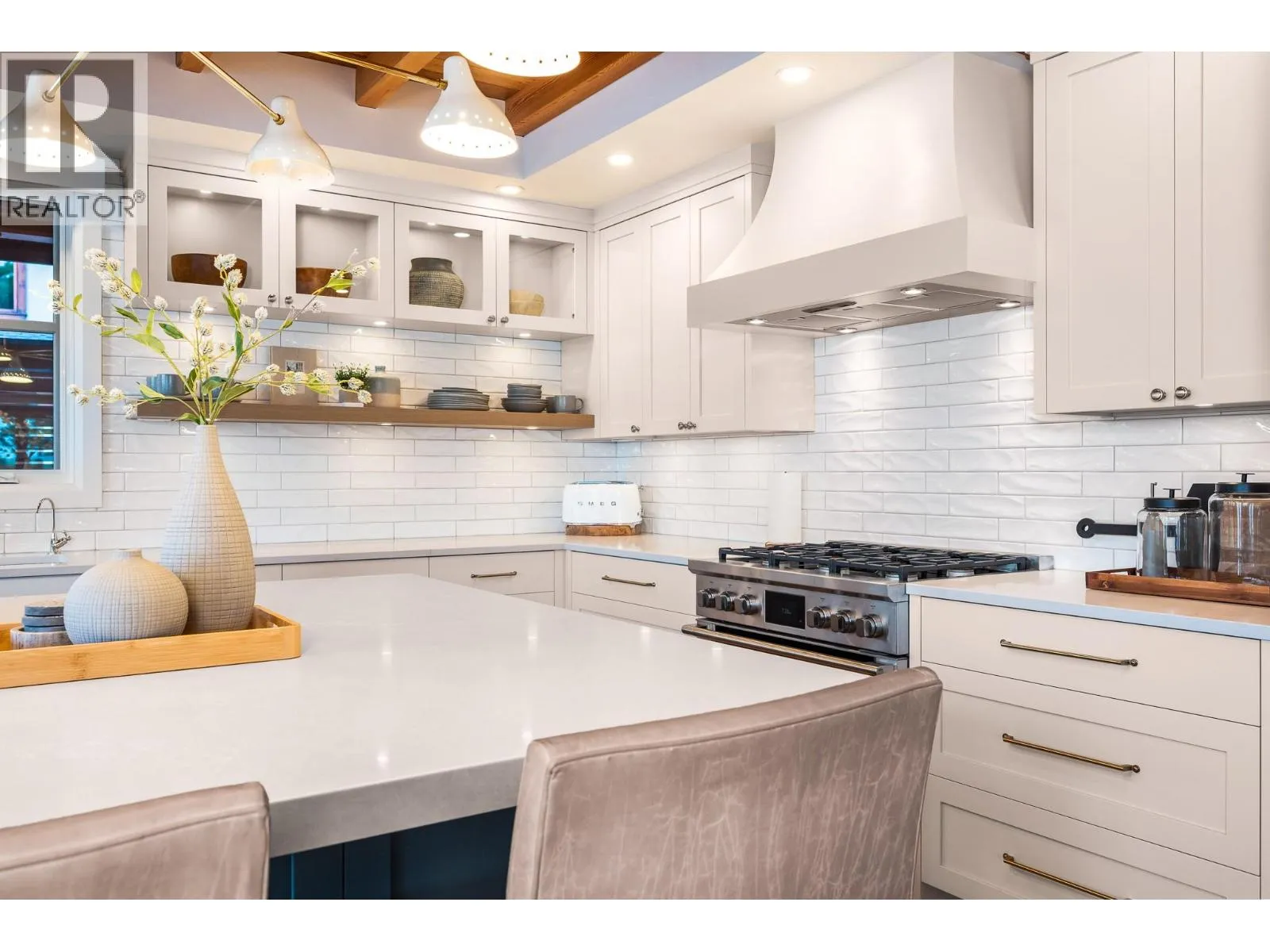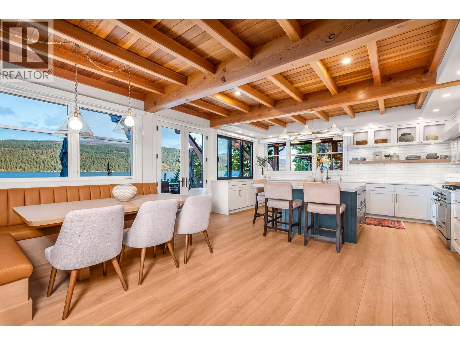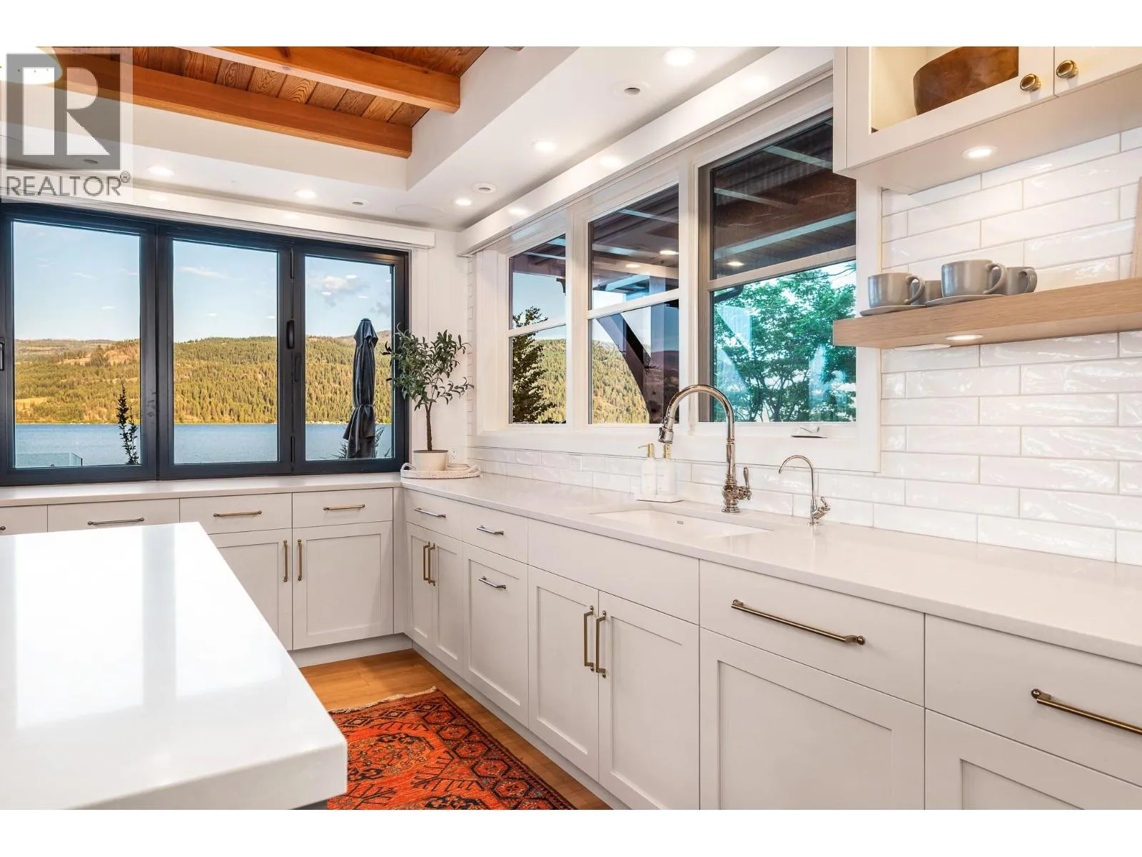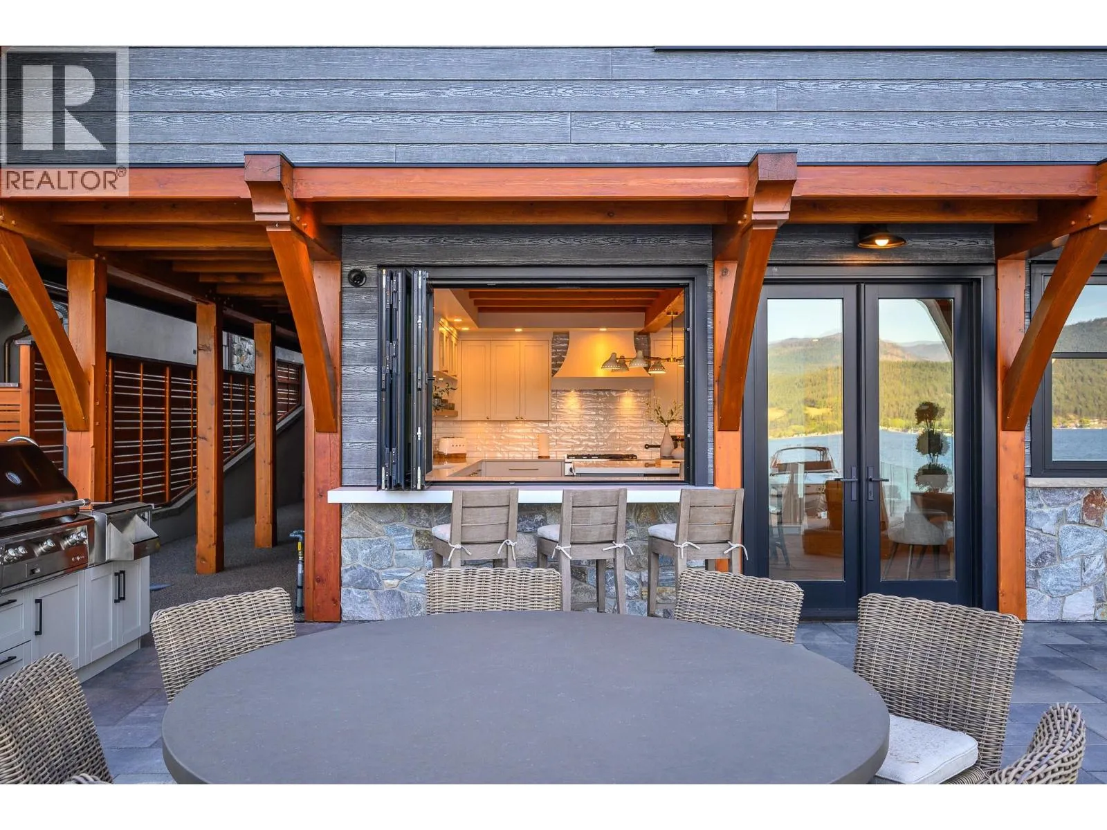 The ultimate âHampton Beachâ waterfront Cottage on Okanagan Lake! Step into the ambiance of this waterfront home, masterfully designed for elegance and comfort. Completely rebuilt in 2023, every inch of this residence is crafted for functionality and lake life enjoyment. The great room features beamed wooden ceilings, luxury vinyl flooring, quartz countertops, in-floor heating, and central cooling. The space is filled with fabulous built-ins, including a wet bar which includes a wine fridge, beverage drawer and ice maker. With 3.5 stunning bathrooms and a primary suite boasting automated blinds and a ceiling-hidden TV, luxury is woven into every detail. The home includes three additional bedrooms, one of which features custom bunk beds. The kitchen, equipped with a massive island and Nano windows that open to the patio, seamlessly connects to the many outdoor living areas, including a sunroom, fire bowl area, and summer kitchen. A new custom dock with expanded sitting areas completes this exquisite property. Nestled in an exclusive gated waterfront neighbourhood, shared by only 15 other homeowners, this residence offers privacy and luxury on the water's edge. (id:27476)
