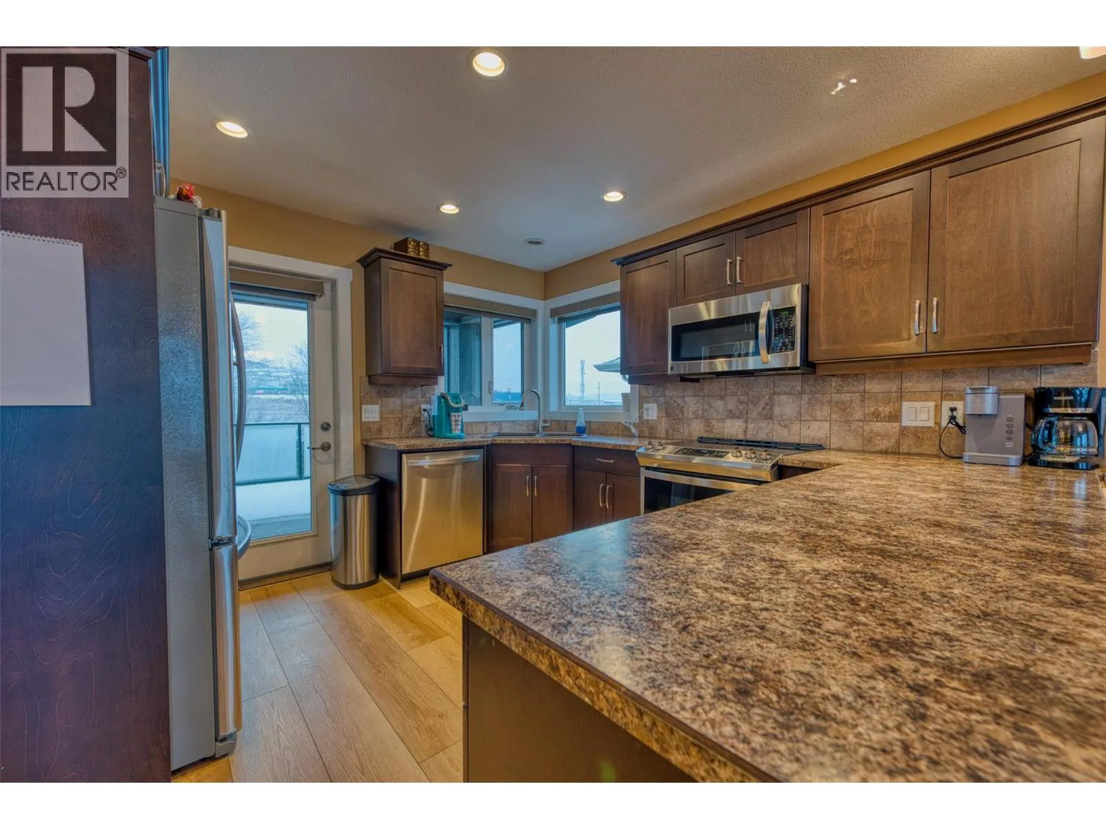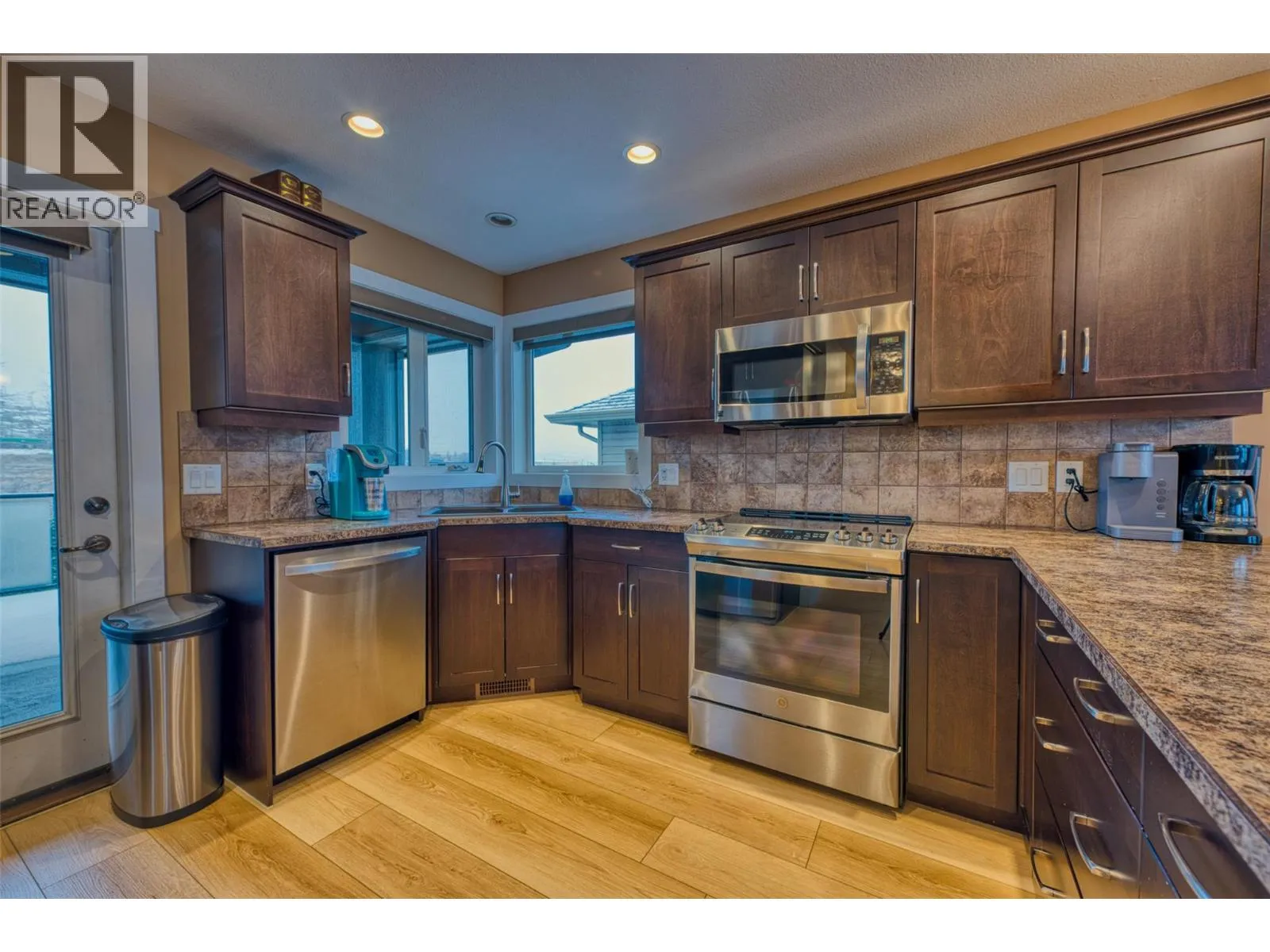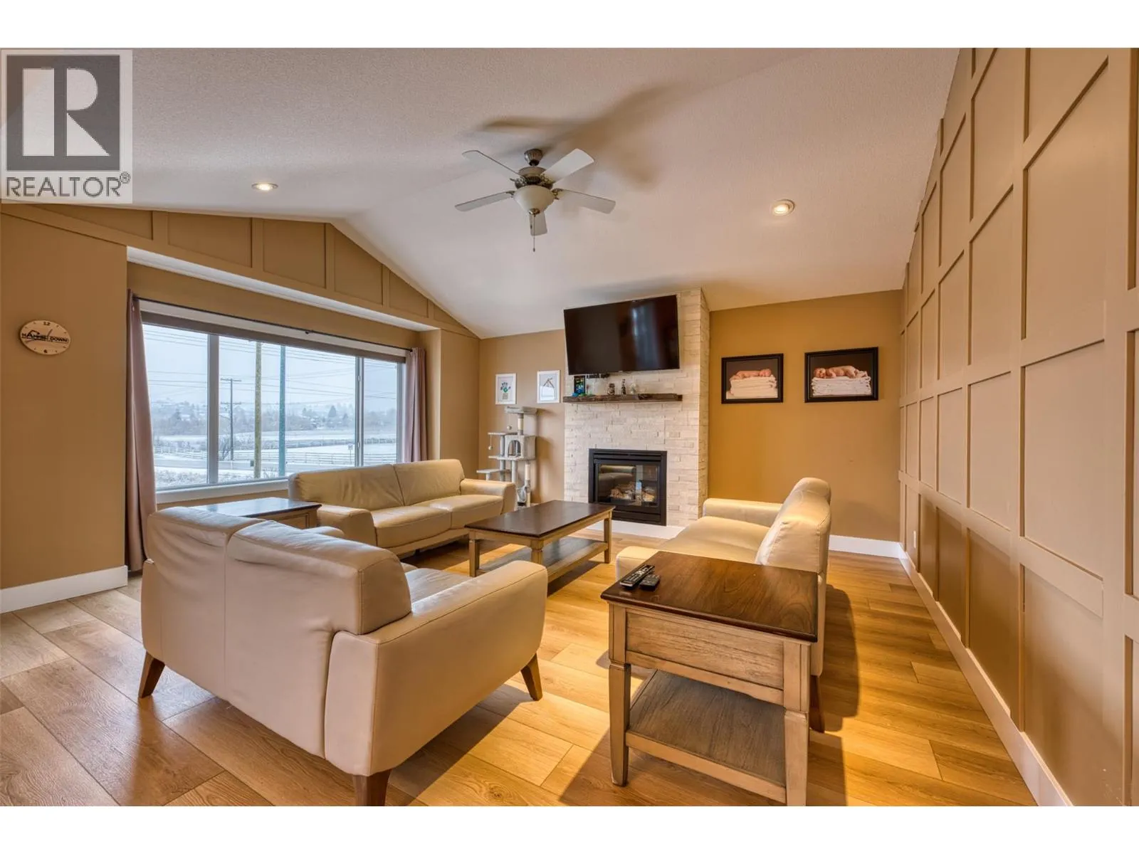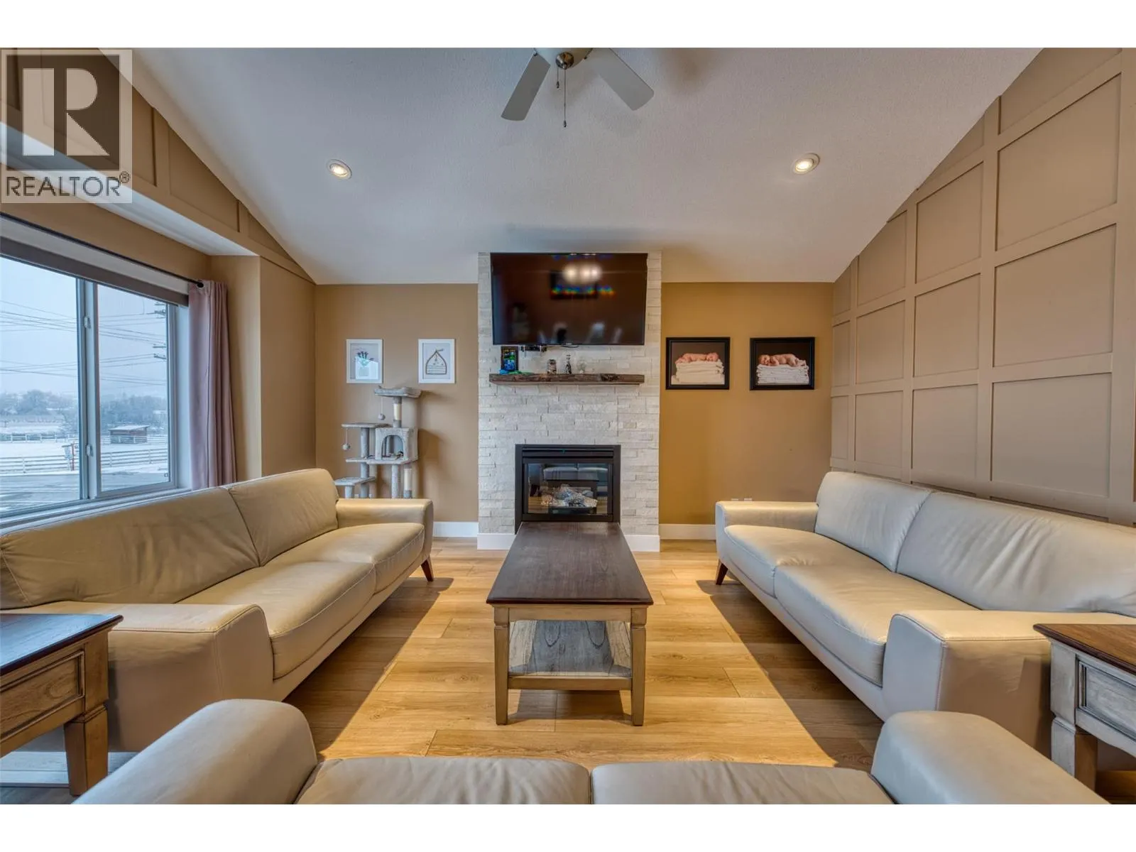 Discover the ultimate family home in the picturesque Okanagan! This exceptional home features a seamless open-concept design on the main floor with brand new vinyl flooring throughout, complete with vaulted ceilings and expansive windows that frame stunning mountain views. The kitchen is equipped with ample storage and sleek stainless steel appliances. Enjoy dining al fresco on the deck adjacent to the kitchen, or unwind on the front deck. The main level also includes a generously-sized primary bedroom with a walk-in closet and ensuite bathroom, plus two additional spacious bedrooms and another full bathroom. The lower level offers versatile options with a fourth bedroom (or office) for visitors, a half bath that can be easily converted back to full bath with a shower or tub, and a separate entrance, ideal for converting into a suite or utilizing as a large rec room or entertainment space. Step outside to a low-maintenance yard featuring an in-ground pool and synthetic lawn, perfect for children and pets with its secure fencing. Embrace the Okanagan lifestyle with this ready-to-enjoy home! (id:27476)