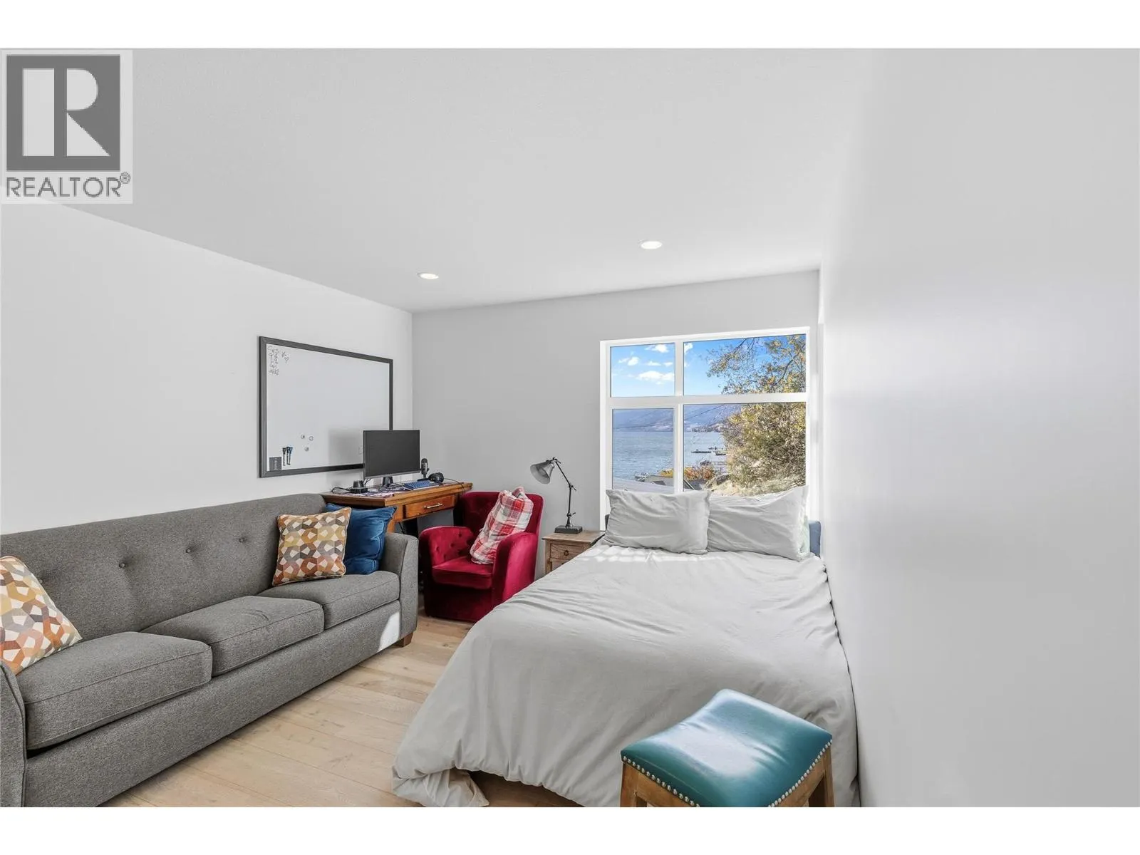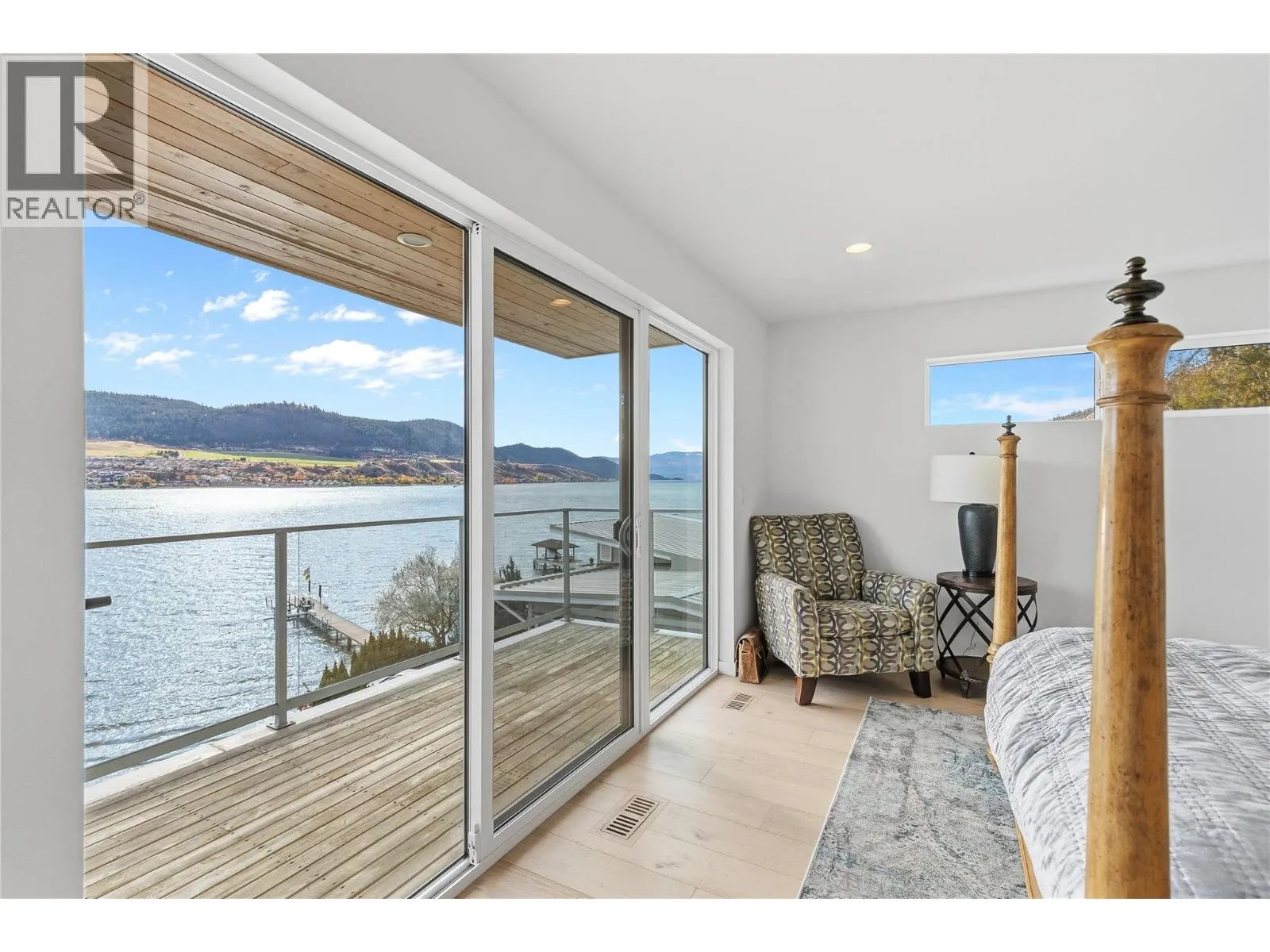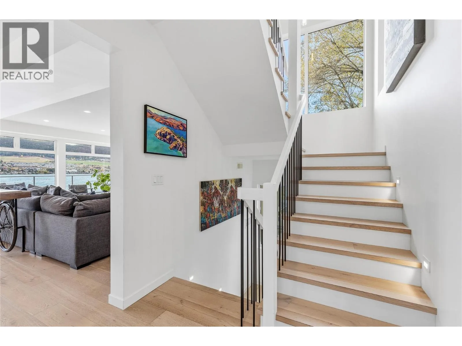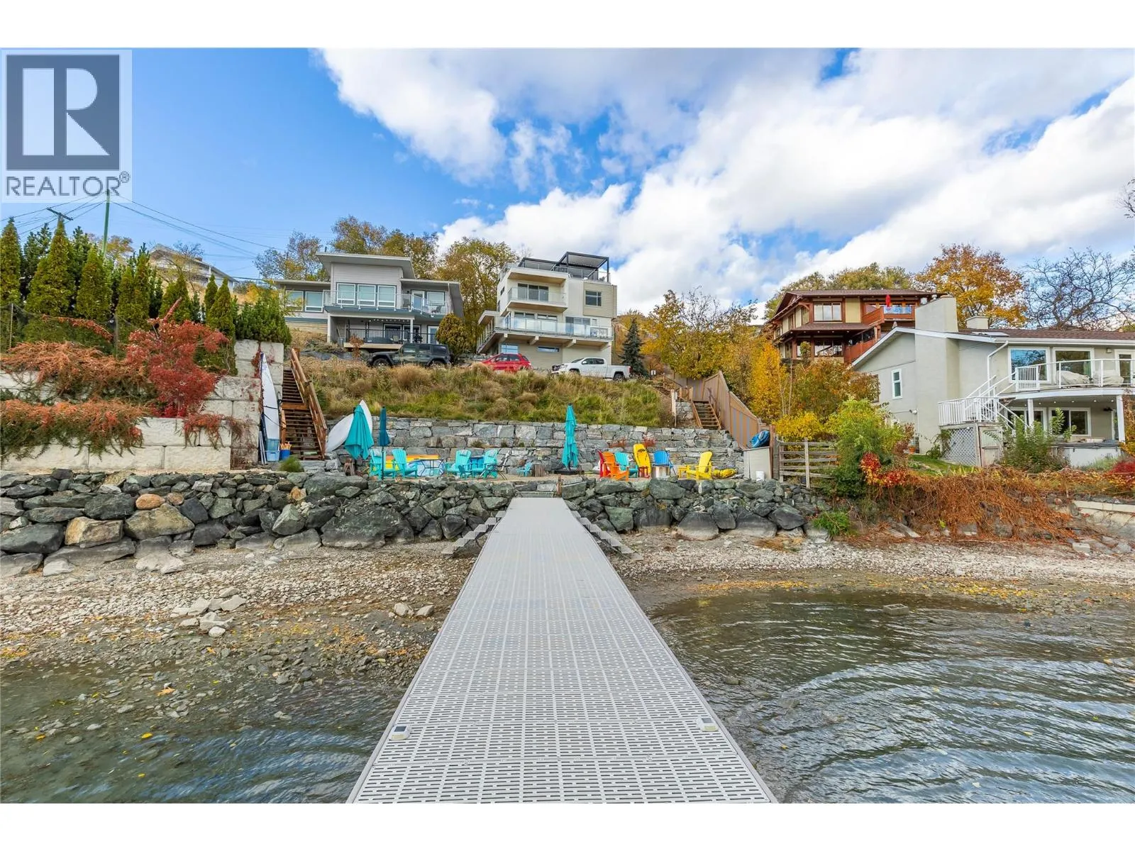 PUBLIC OPEN HOUSE, Sunday November 9, 1-2:30pm. Stunning contemporary home on Okanagan Lake! Architecturally designed by MQN and built by Richbuilt Homes, this 4 bedroom, 3.5 bath home has quality finishings from top to bottom. An elevator provides easy access to all 4 levels, including a spacious rooftop patio with an outdoor kitchen, hot tub and gorgeous views of the lake. Inside, the home is bright and open, with tall windows for an abundance of natural light and enjoyment of the views. The property features private boat lift, shared water frontage and dock with the adjacent property. Double garage. Extensive retaining systems and landscaping. (id:27476)